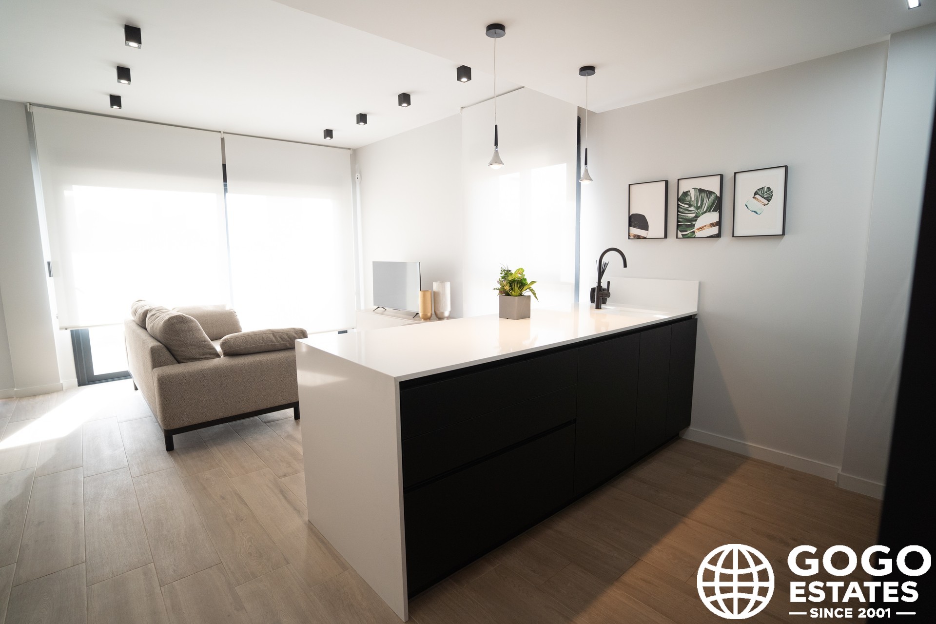 À l'intérieur, les maisons allient fonctionnalité et style avec des caractéristiques telles que des sols en grès cérame, des volets électriques et des placards intégrés. La disposition offre des espaces spacieux et lumineux, avec une séparation claire entre les zones de jour et de nuit.