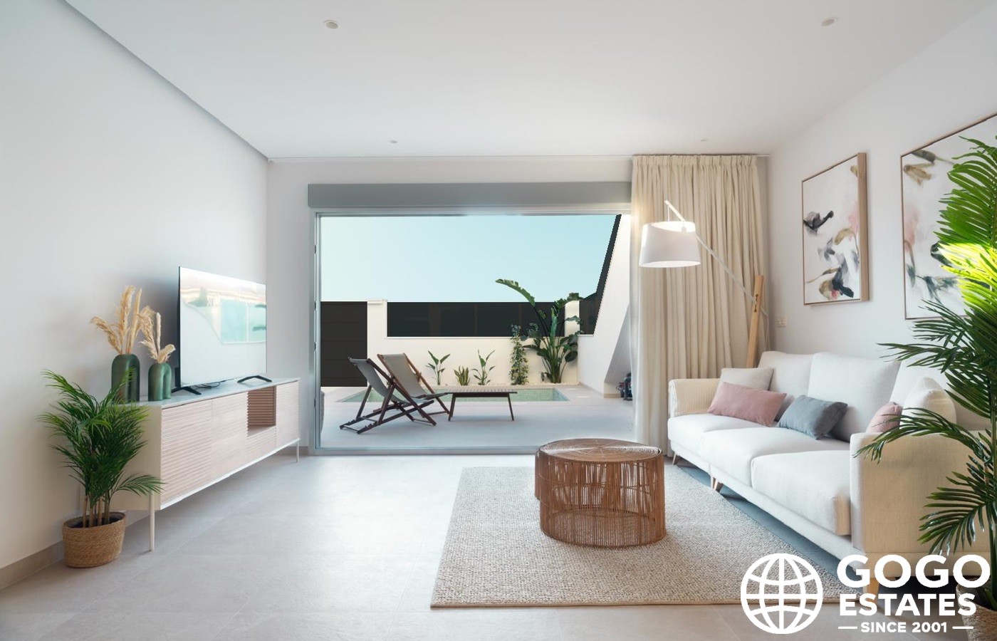 Les espaces communs comprennent des jardins paysagers, une piscine commune et une salle de sport, enrichissant l'expérience de vie. San Pedro del Pinatar est connu pour son parc naturel, ses eaux de boue thérapeutiques et son style de vie côtier, offrant un environnement serein pour les résidents.