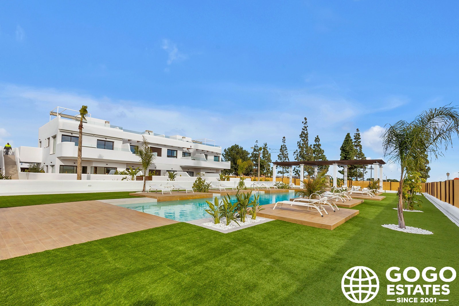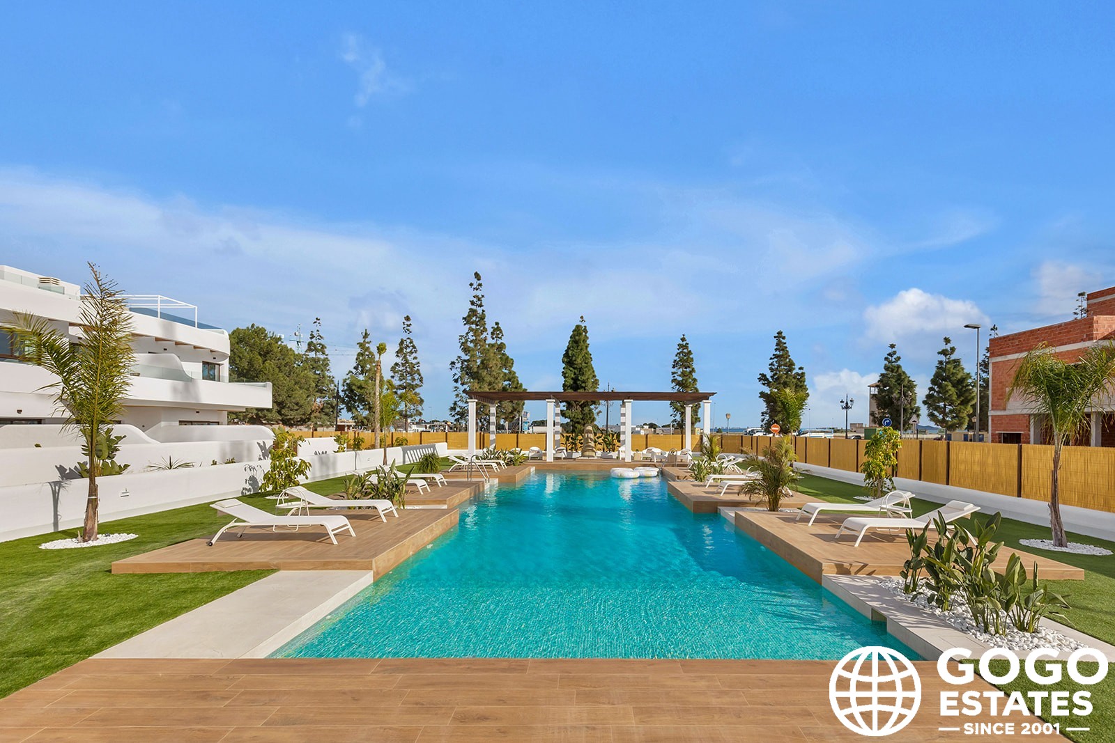 Les extérieurs de ces bungalows sont conçus pour maximiser le plaisir du climat méditerranéen. Chaque propriété dispose d'un jardin privé et d'une grande terrasse, parfaits pour se détendre ou profiter de repas en plein air. De plus, les bungalows incluent un solarium pour un espace de loisirs supplémentaire.