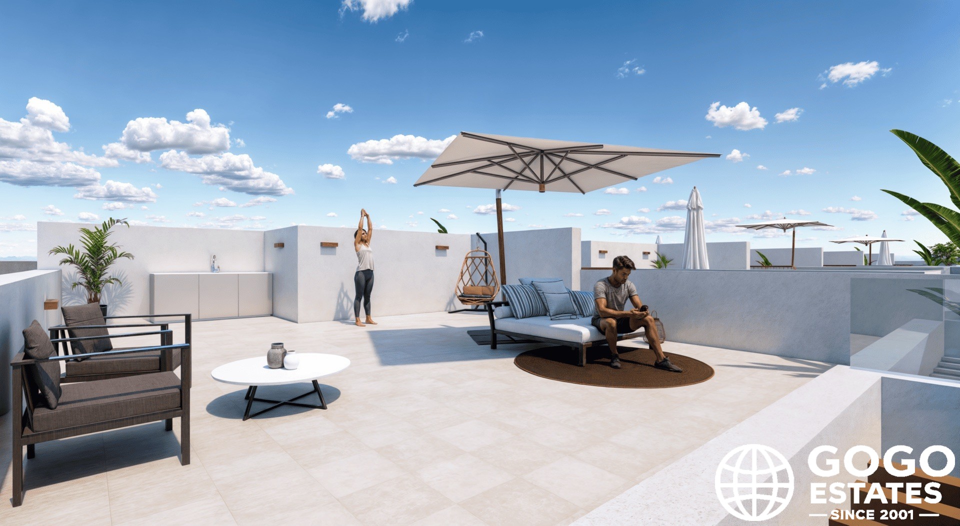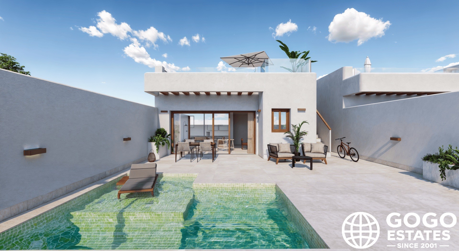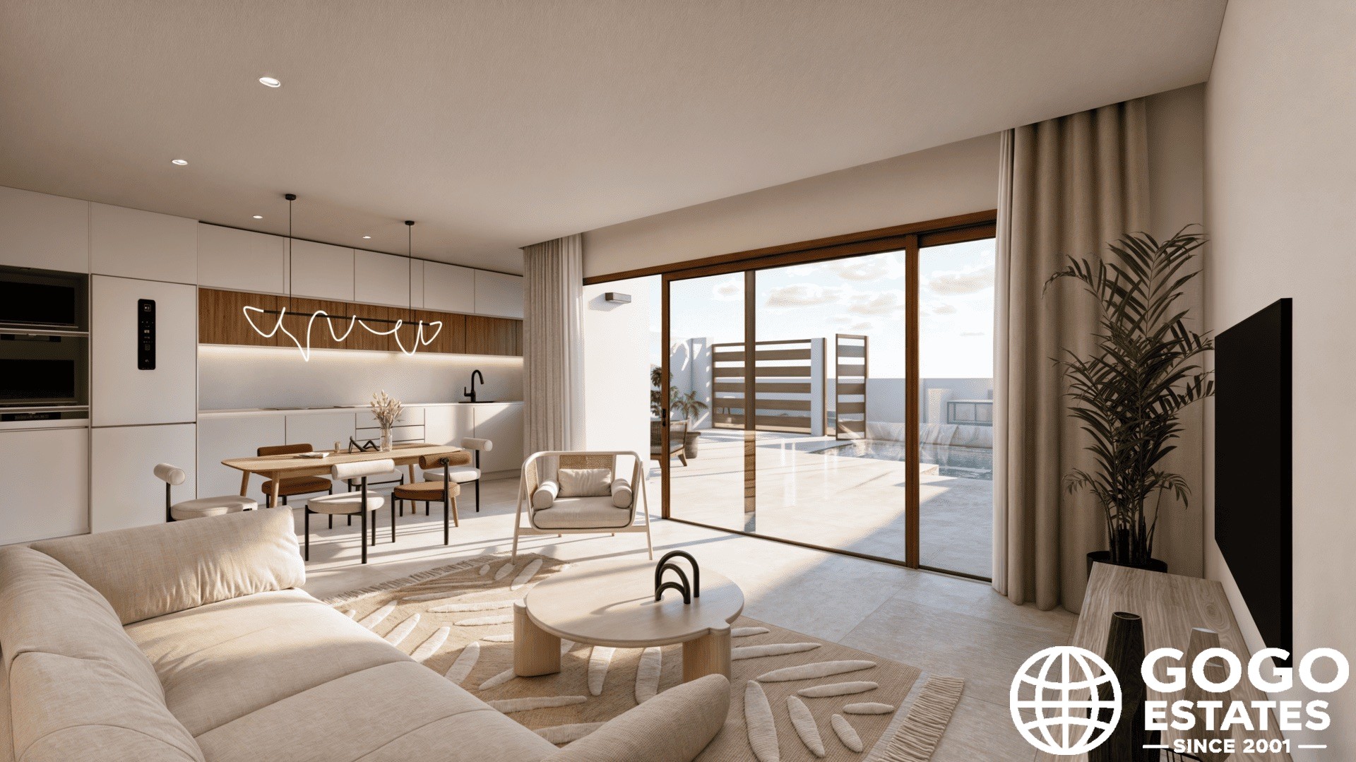 Les maisons présentent un design extérieur incluant un jardin privé, idéal pour profiter du climat méditerranéen. De plus, chaque propriété dispose d'une terrasse et d'un solarium, offrant des espaces supplémentaires pour les loisirs en plein air. L'inclusion d'une piscine privée ajoute une touche de luxe et d'exclusivité.