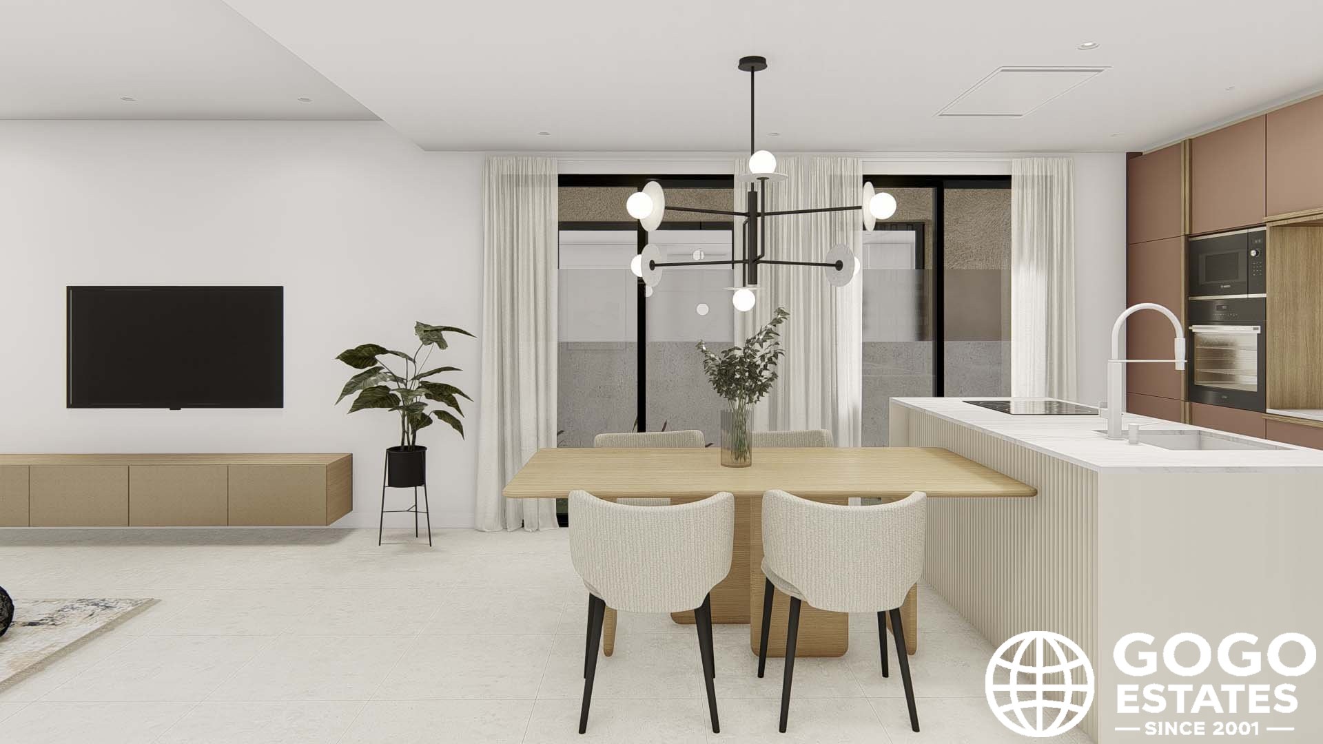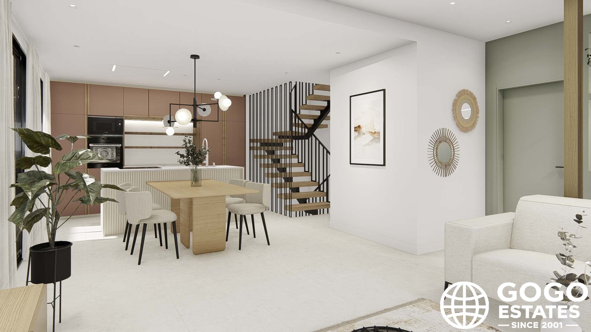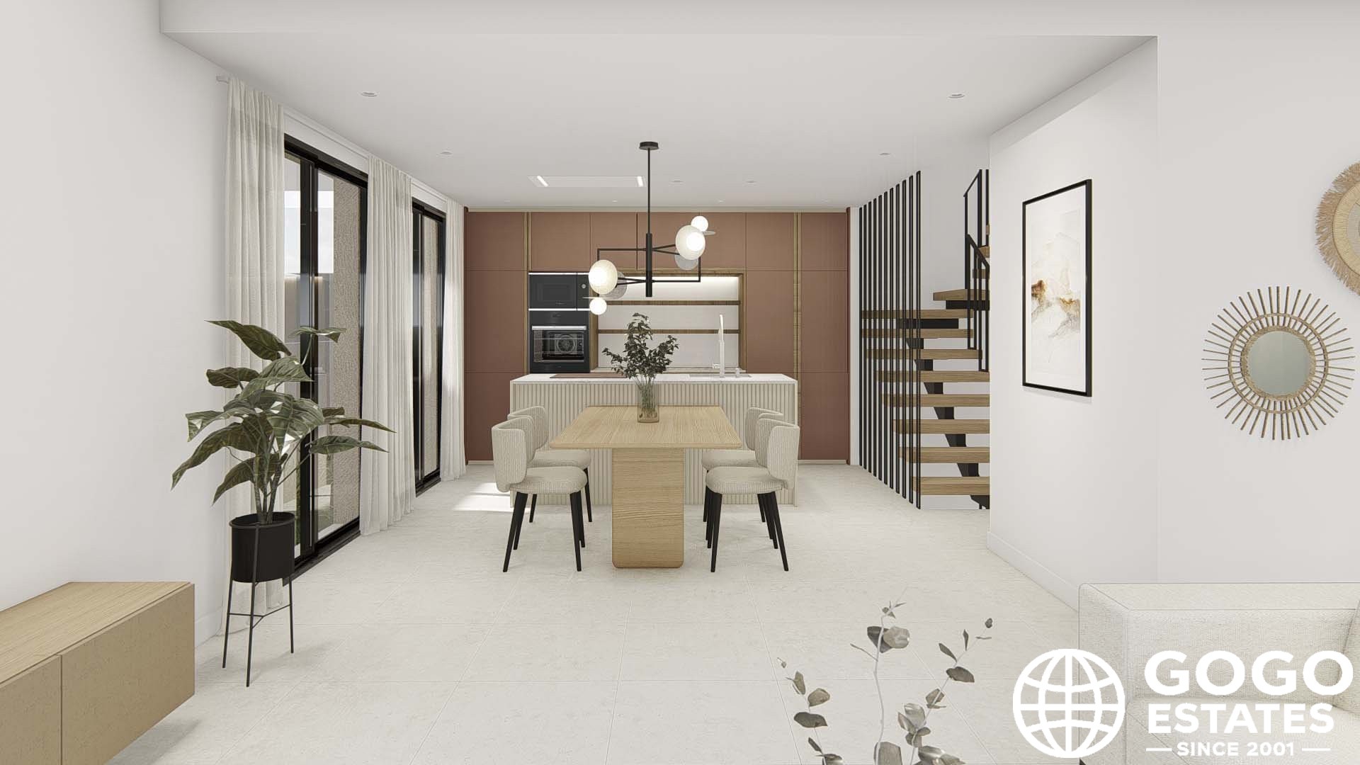 L'intérieur des maisons de ville est conçu pour offrir un confort maximal. Avec trois chambres et trois salles de bains, chaque espace est conçu pour répondre aux besoins de ses résidents. La cuisine est équipée d'appareils modernes, facilitant les tâches quotidiennes. Le système de climatisation, ainsi que la pré-installation pour un système supplémentaire, garantit un environnement agréable tout au long de l'année. La disposition comprend un garage, offrant un espace sécurisé pour le stationnement et le stockage.
