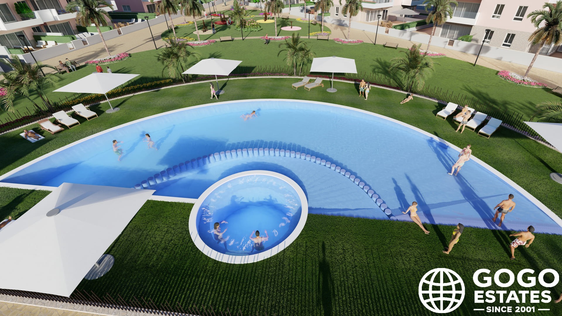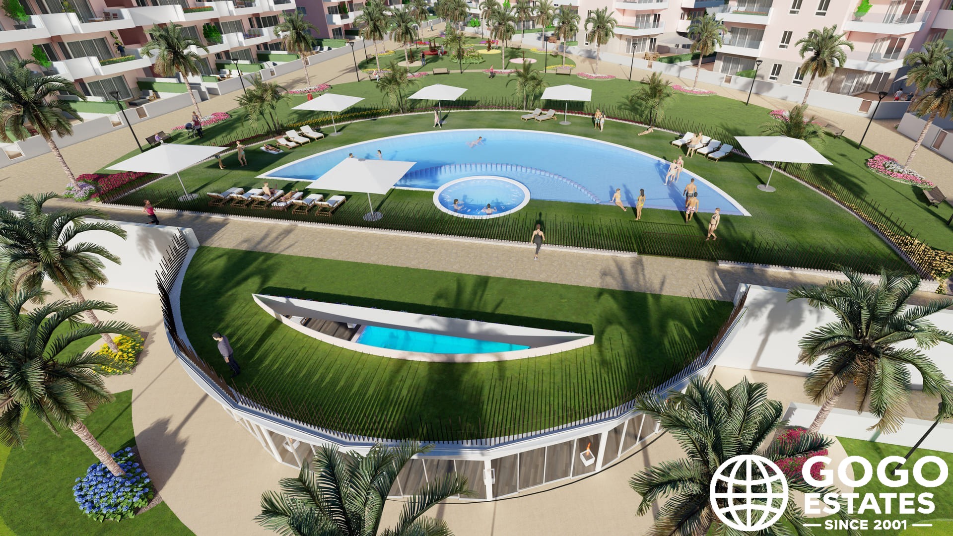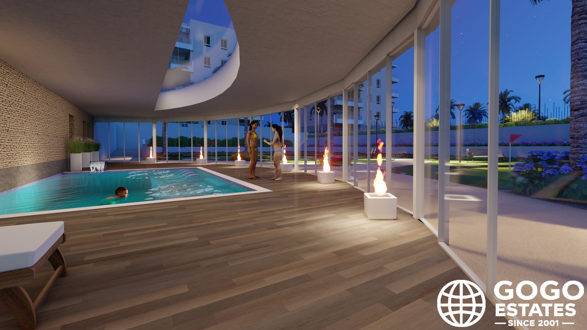 Les résidents peuvent profiter de divers espaces communs, y compris une piscine communautaire, une salle de sport et une aire de jeux pour enfants. La proximité de la mer enrichit l'expérience avec des brises rafraîchissantes et des vues pittoresques.
