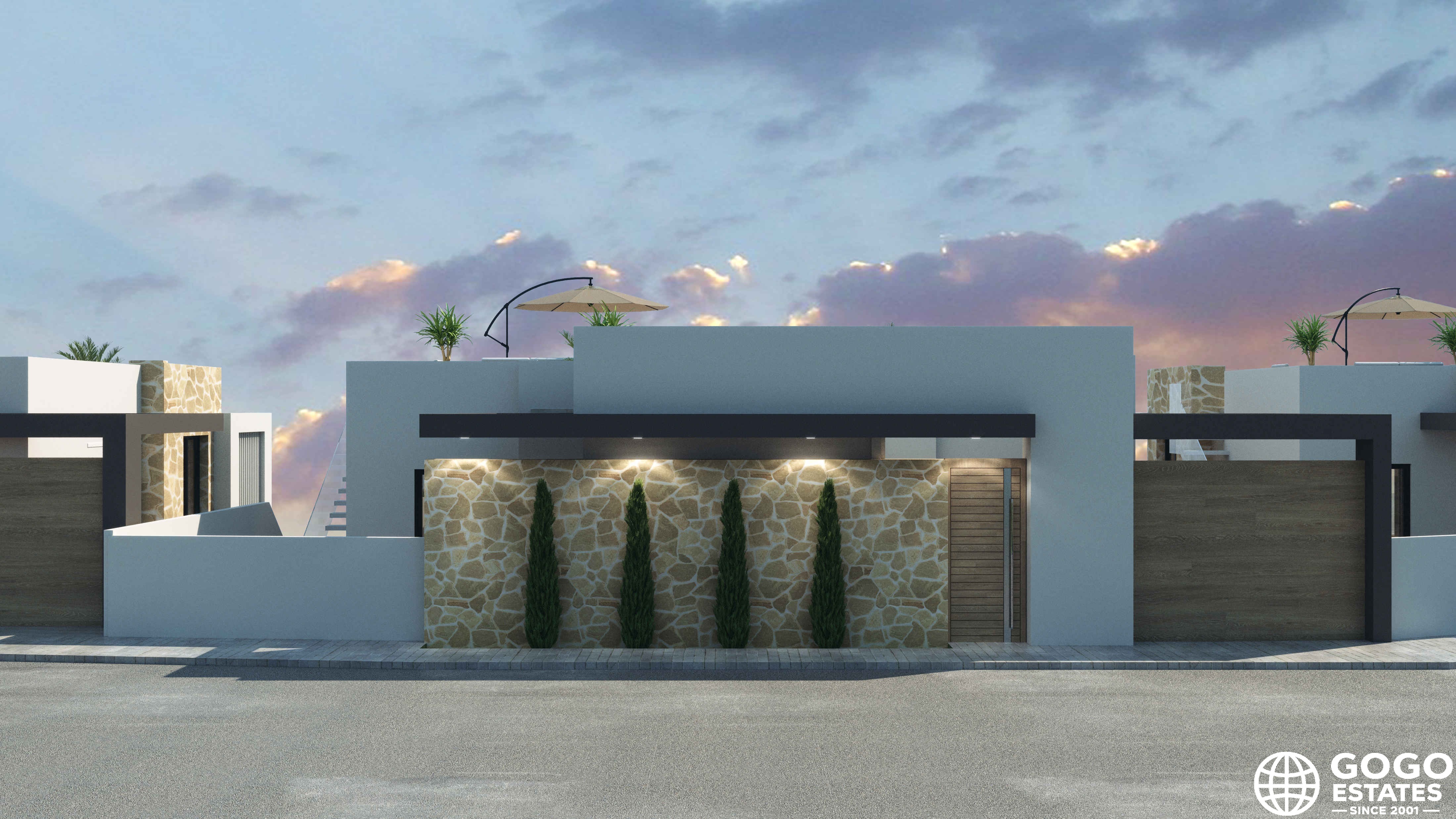À l'intérieur, la maison dispose de quatre chambres spacieuses et de trois salles de bains, offrant un espace généreux pour toute la famille. Les sols en grès cérame ajoutent une touche d'élégance, et la maison comprend des volets électriques et des placards intégrés. La pré-installation de la climatisation garantit le confort tout au long de l'année.