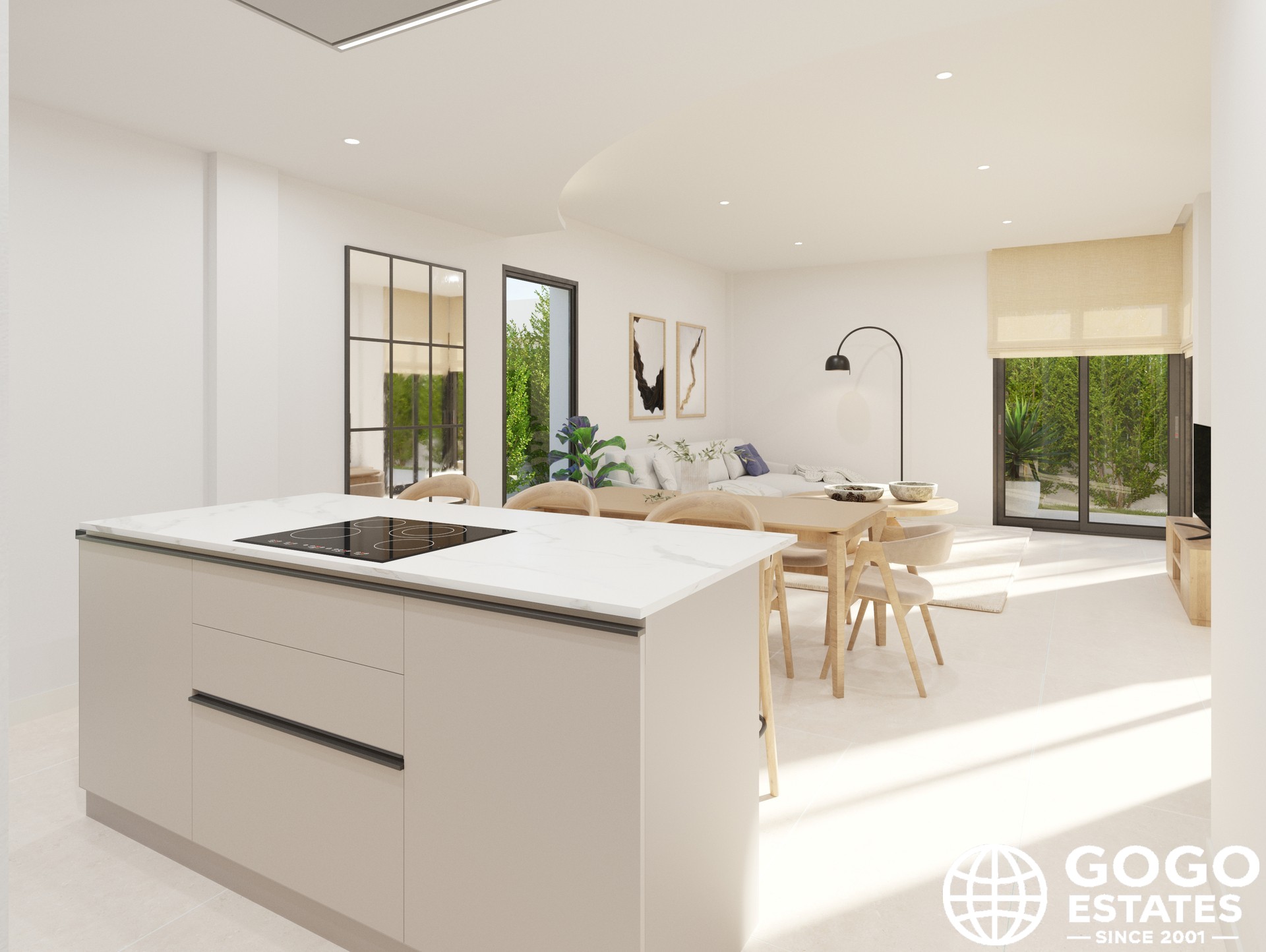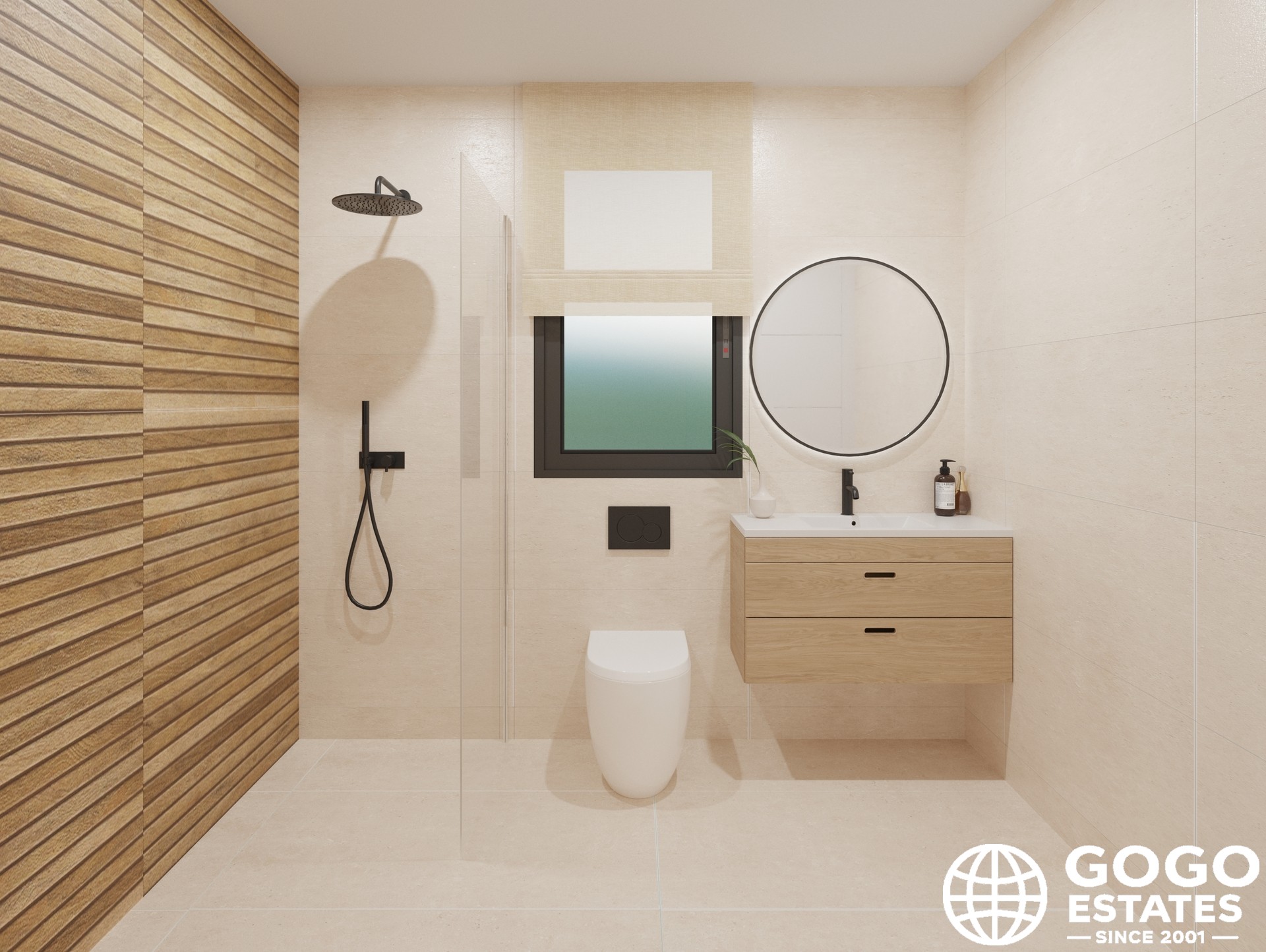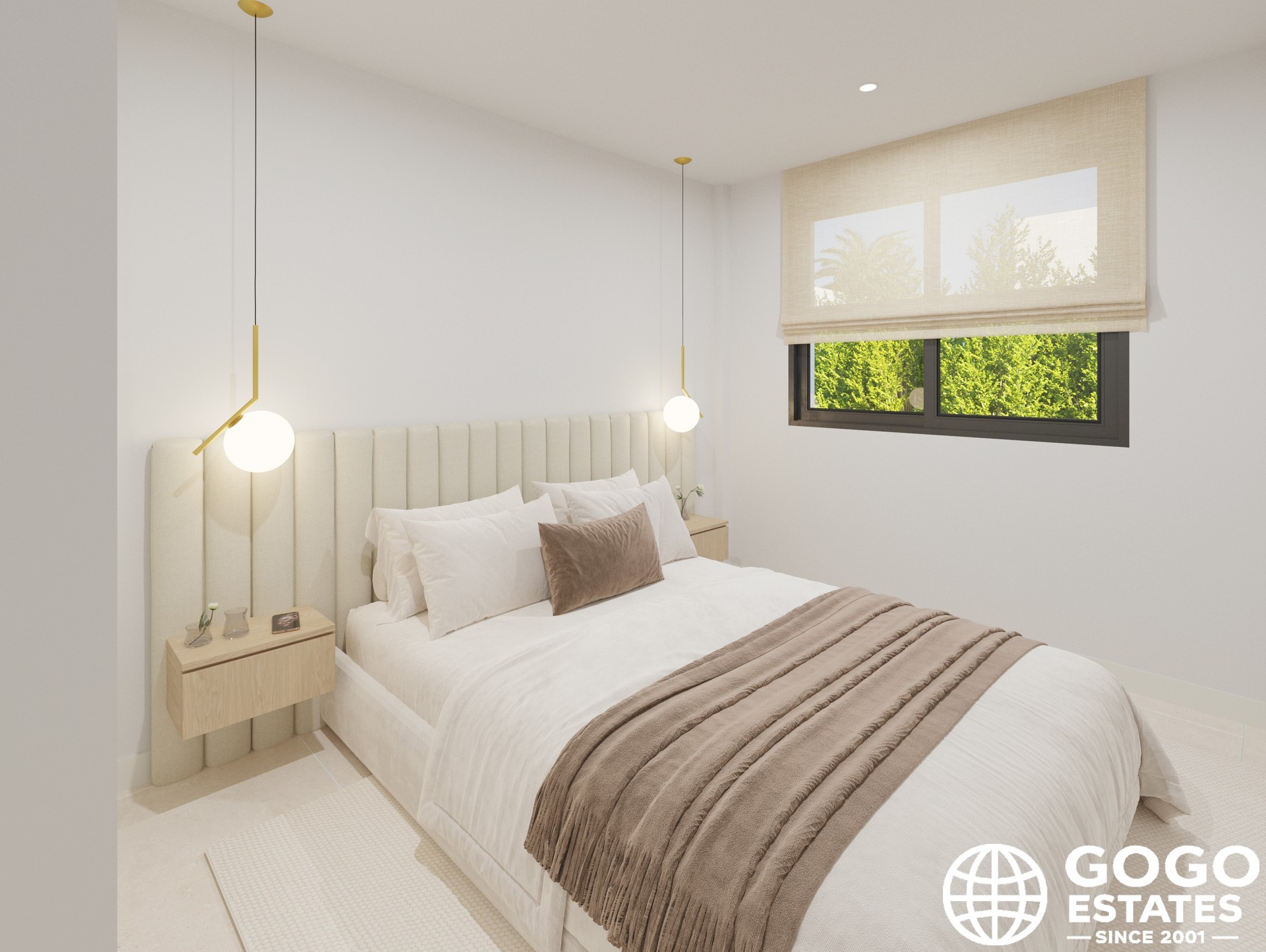 À l'intérieur, les maisons offrent trois chambres et deux salles de bains, avec des sols en carrelage en porcelaine et des volets électriques. Les placards intégrés et la climatisation préinstallée améliorent la fonctionnalité et le confort.
