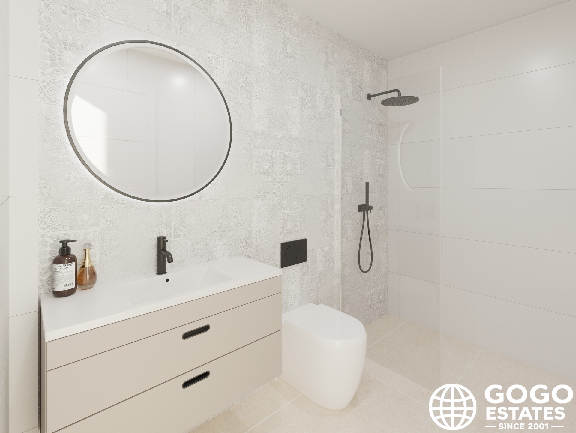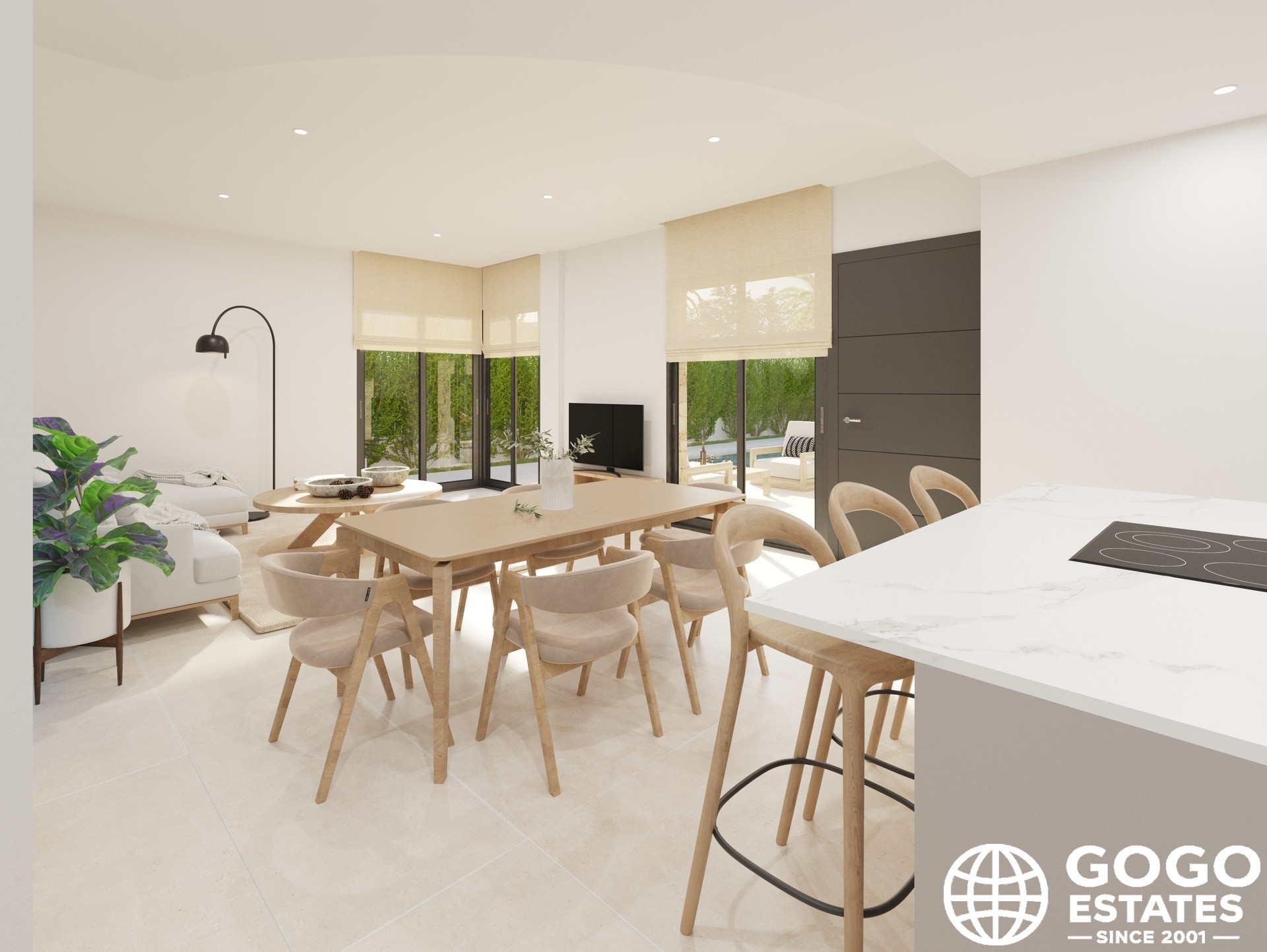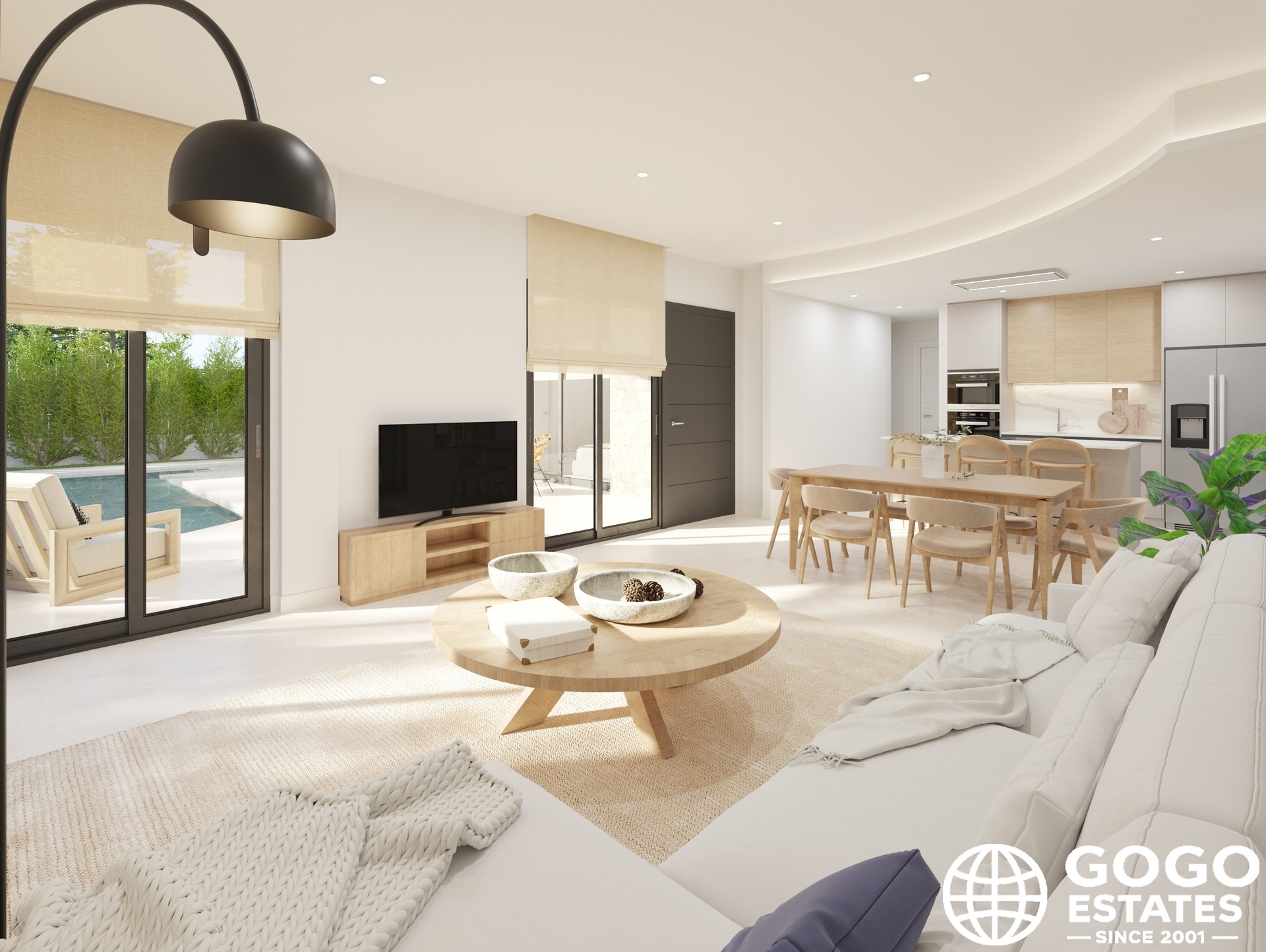 À l'intérieur, les maisons offrent trois chambres et deux salles de bains, avec des sols en carrelage en porcelaine et des volets électriques. Les placards intégrés et la climatisation préinstallée améliorent la fonctionnalité et le confort.