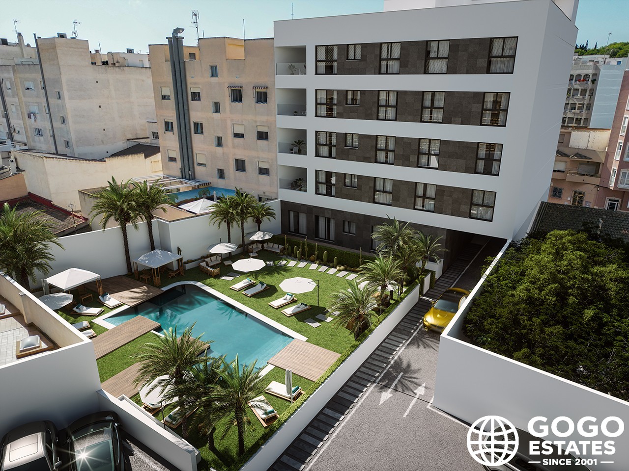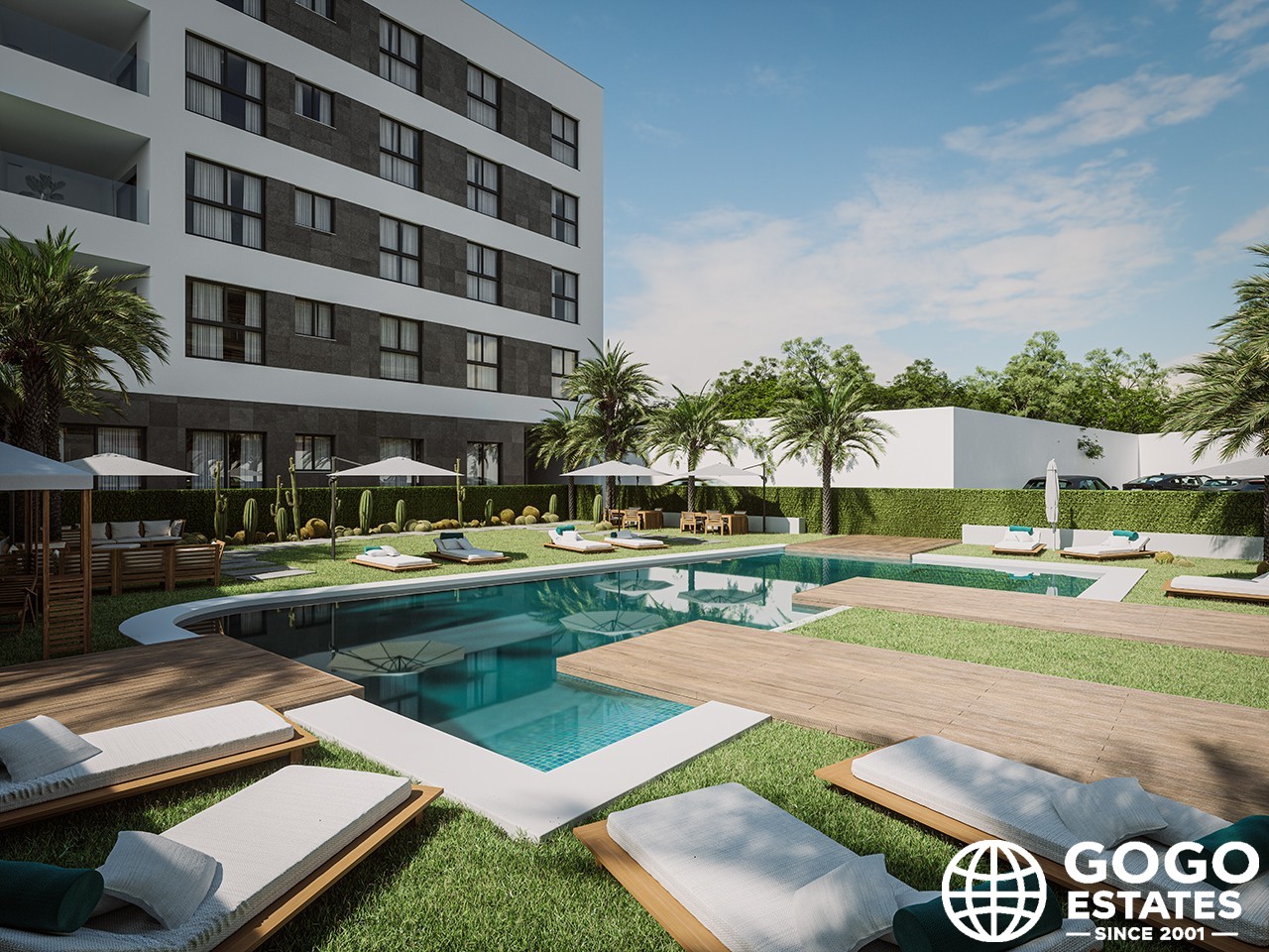 Les espaces communs du complexe améliorent l'expérience de vie avec un jardin commun, une piscine et un garage, garantissant commodité et sécurité pour les résidents.