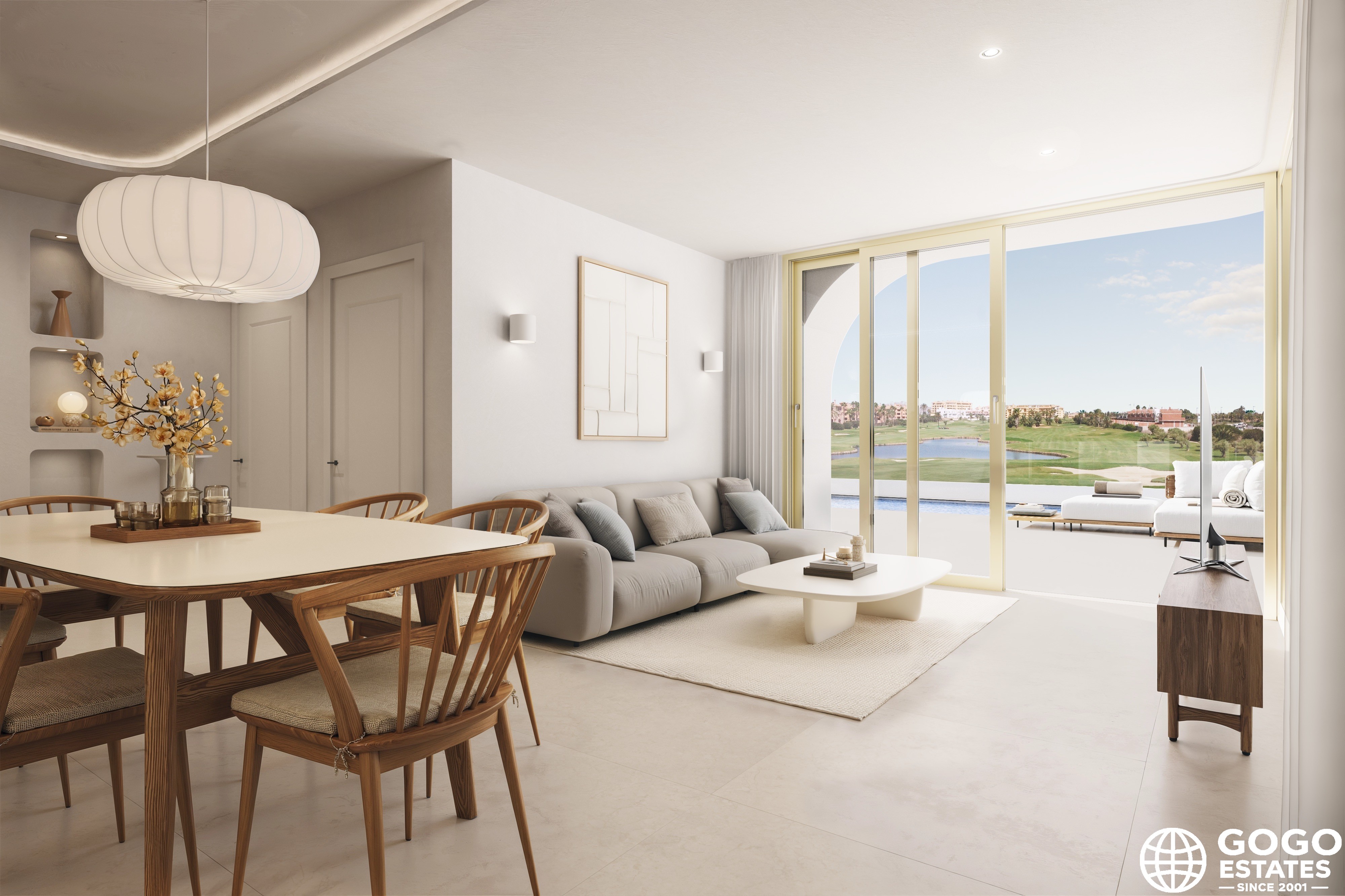 L'intérieur des villas est conçu avec une attention particulière aux détails, offrant un espace moderne et fonctionnel. Les sols en grès cérame ajoutent une touche d'élégance et sont faciles à entretenir. Les villas sont équipées de la climatisation, garantissant un environnement confortable tout au long de l'année. La disposition comprend trois chambres et deux salles de bains, offrant un espace adéquat pour les familles ou pour recevoir des invités.