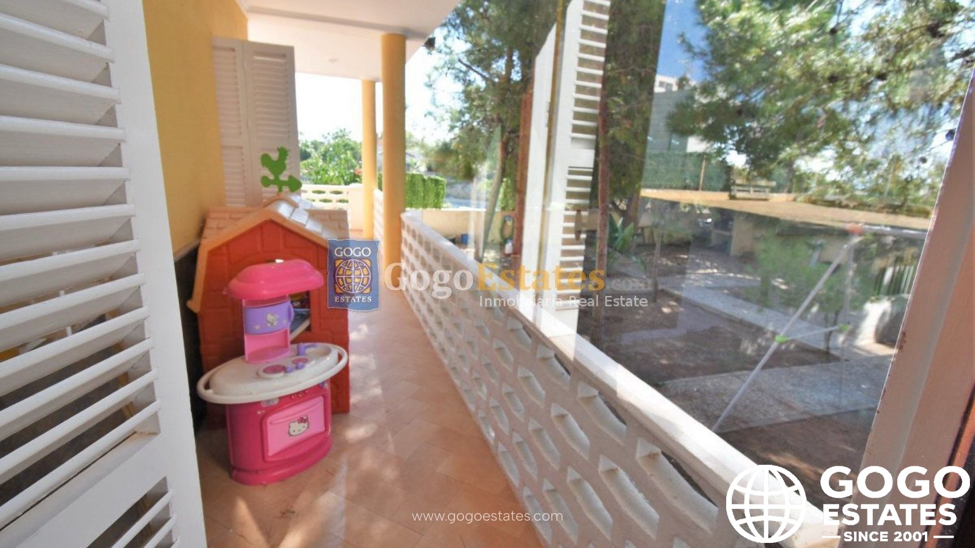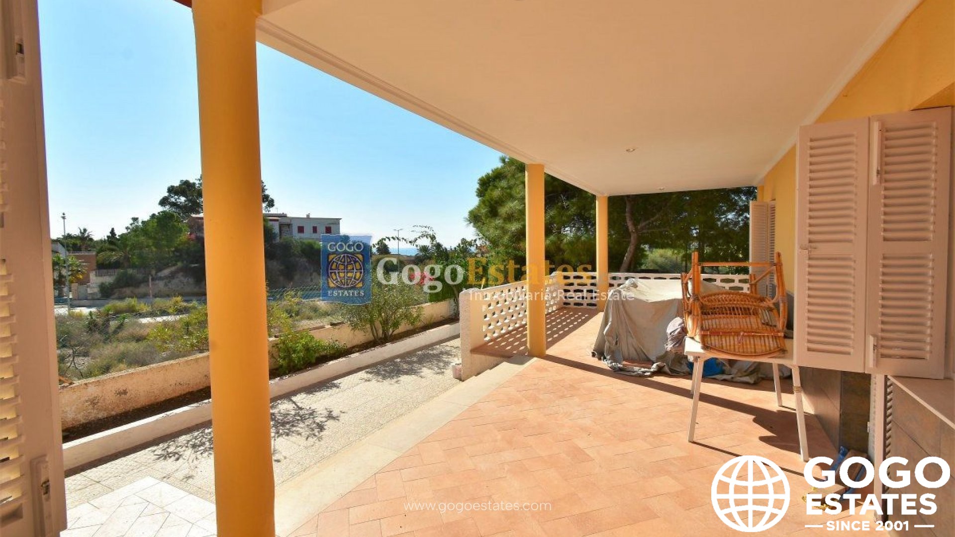 La villa dispose de quatre chambres lumineuses et de deux salles de bains, offrant amplement d'espace pour la famille et les invités. Le salon, avec une cheminée, s'ouvre sur une grande terrasse, idéale pour profiter du climat méditerranéen. La cuisine, le débarras et le garage ajoutent à la praticité de la villa.