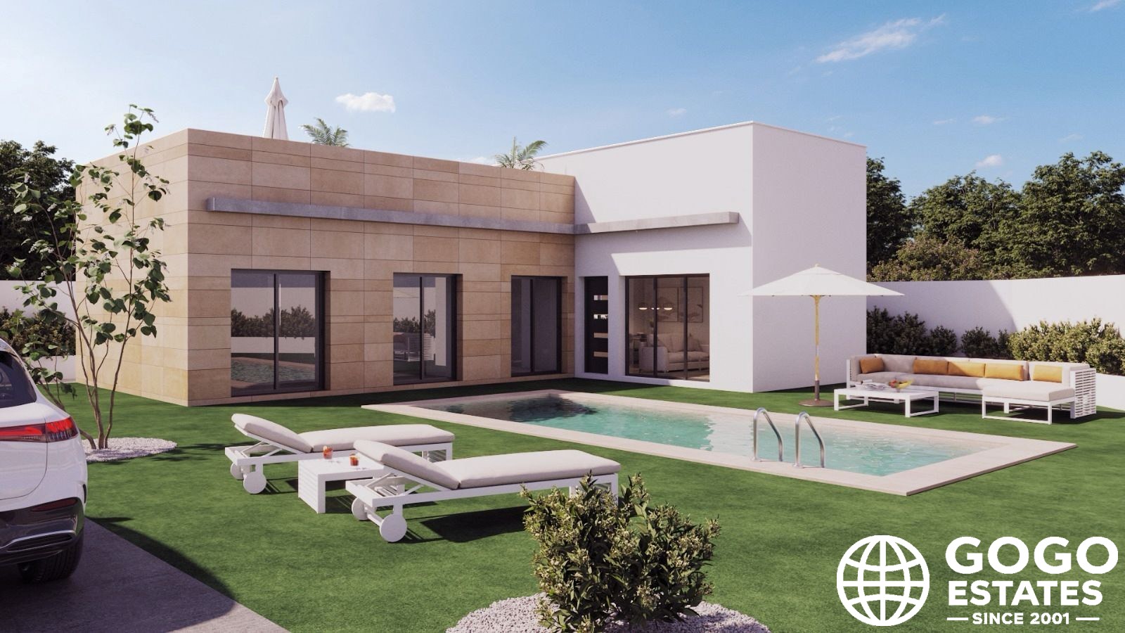 À l'intérieur, la villa est conçue pour le confort avec un revêtement de sol en carrelage et un agencement pratique. La pré-installation de la climatisation garantit un climat agréable tout au long de l'année. Les placards intégrés offrent des solutions de rangement élégantes.