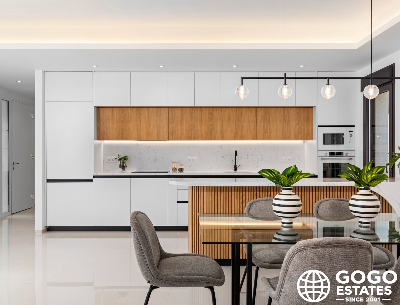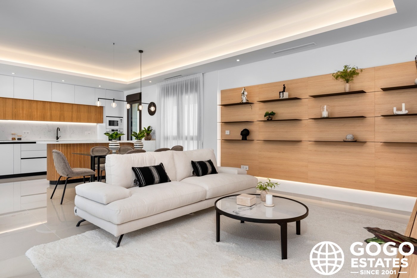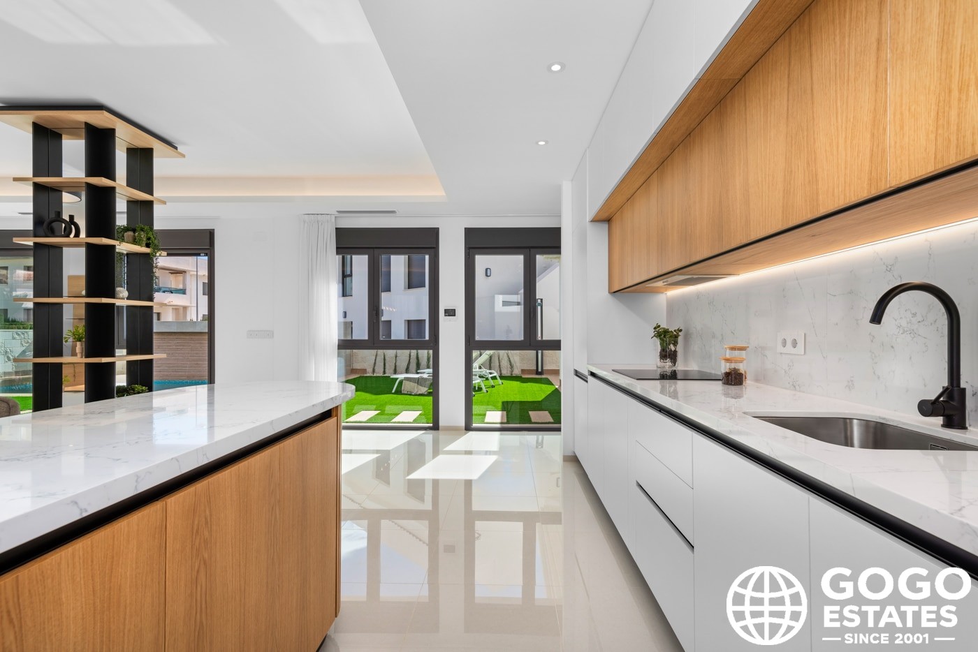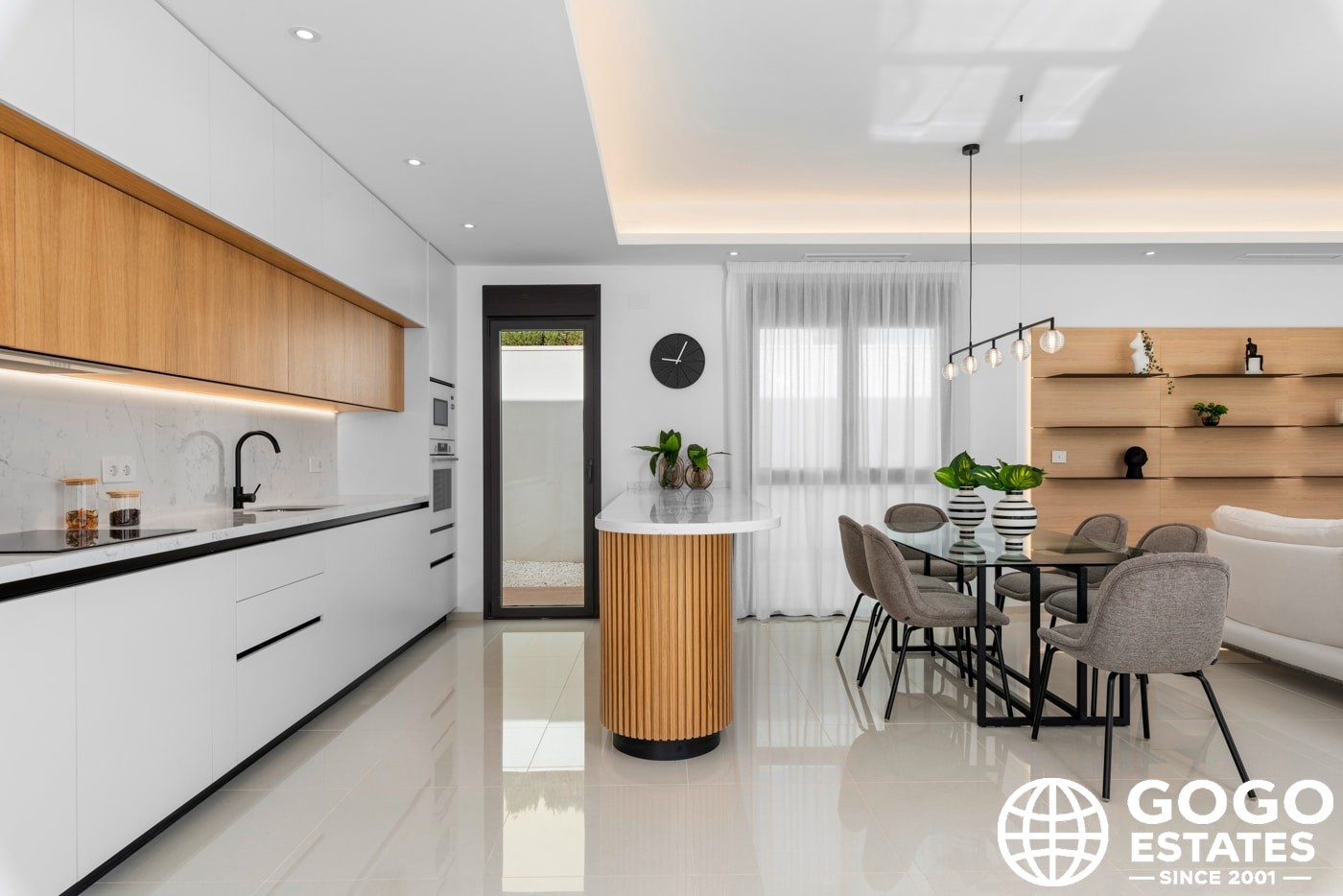 À l'intérieur, la villa offre trois chambres avec des placards intégrés, offrant un espace ample et un rangement efficace. Deux salles de bains assurent confort et intimité pour tous les résidents. Le carrelage en porcelaine ajoute de l'élégance et est facile à entretenir.