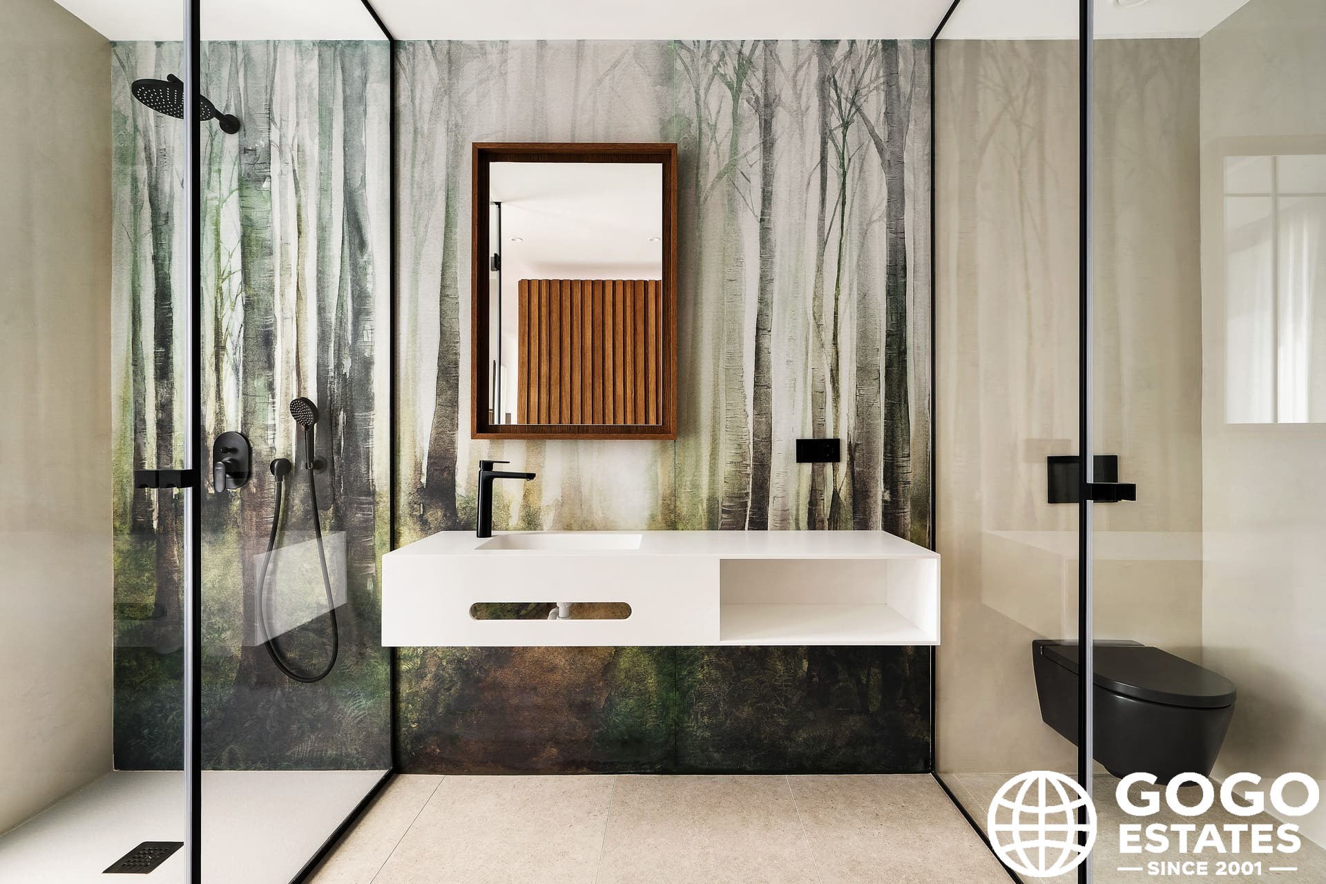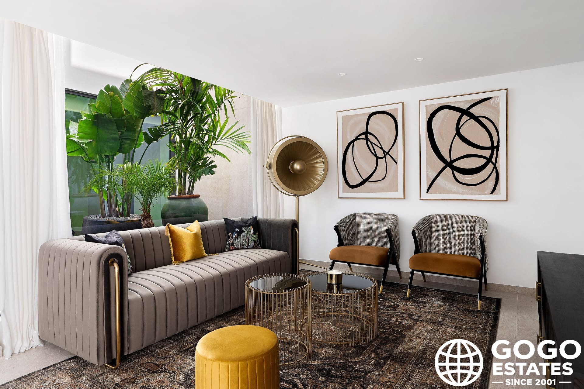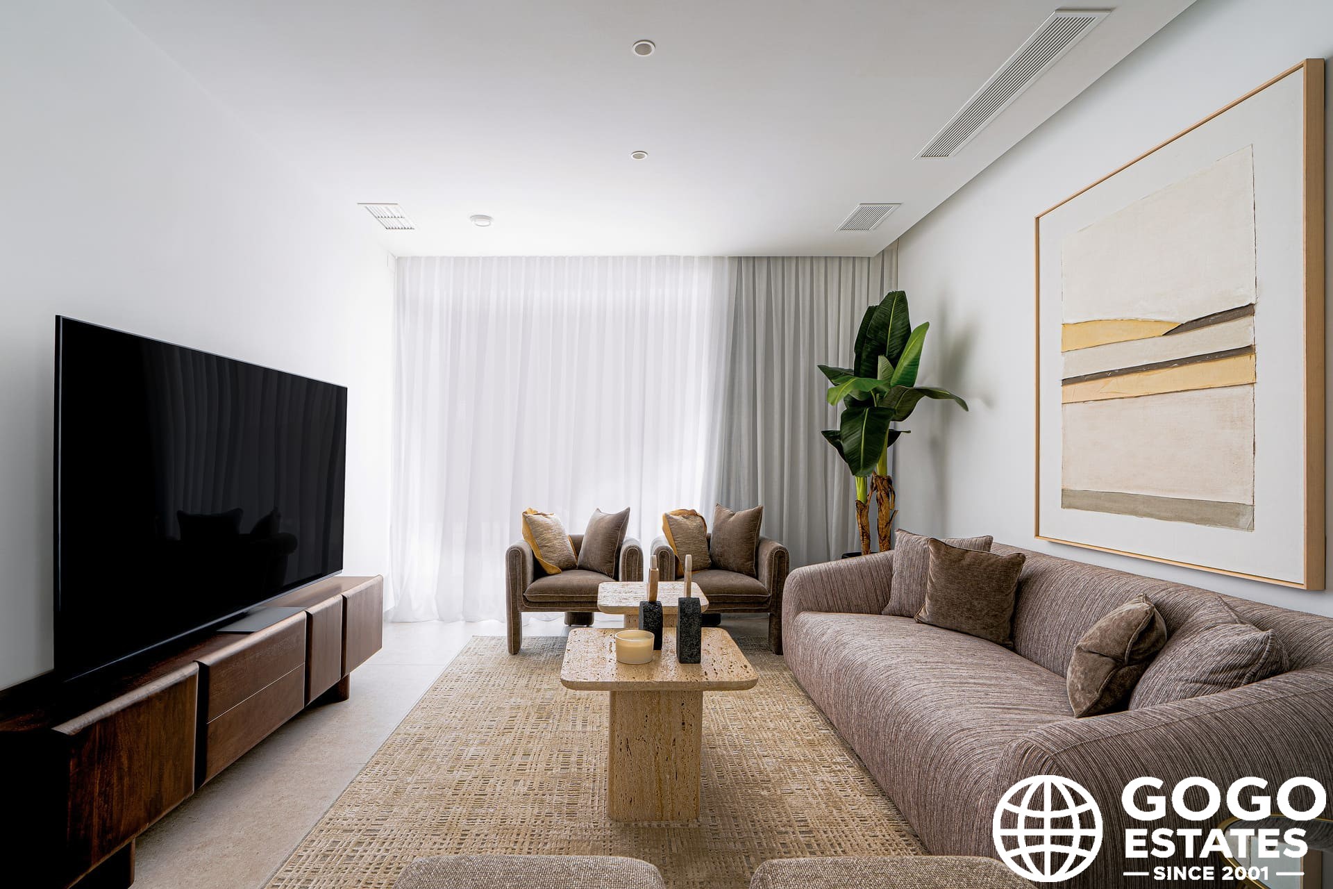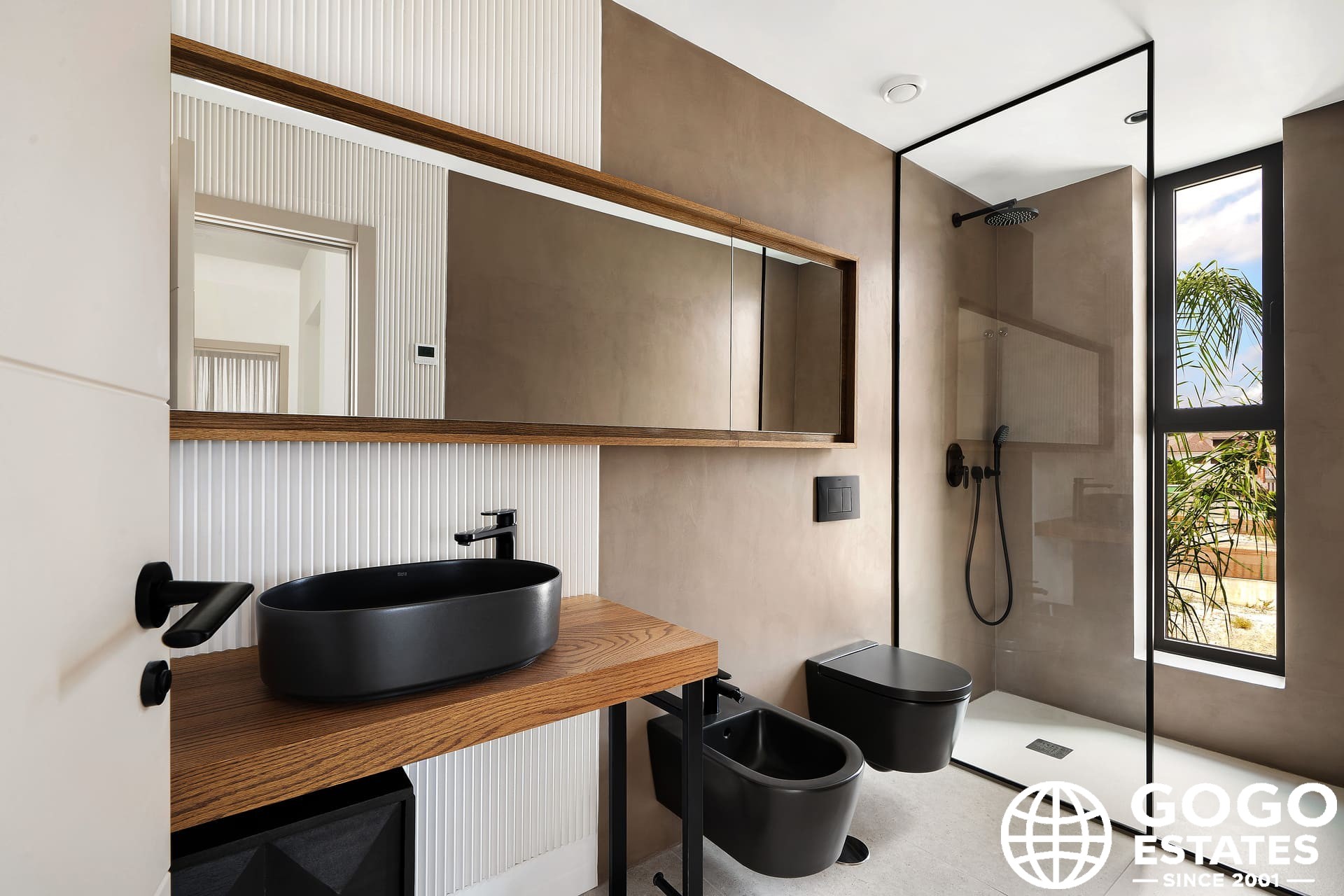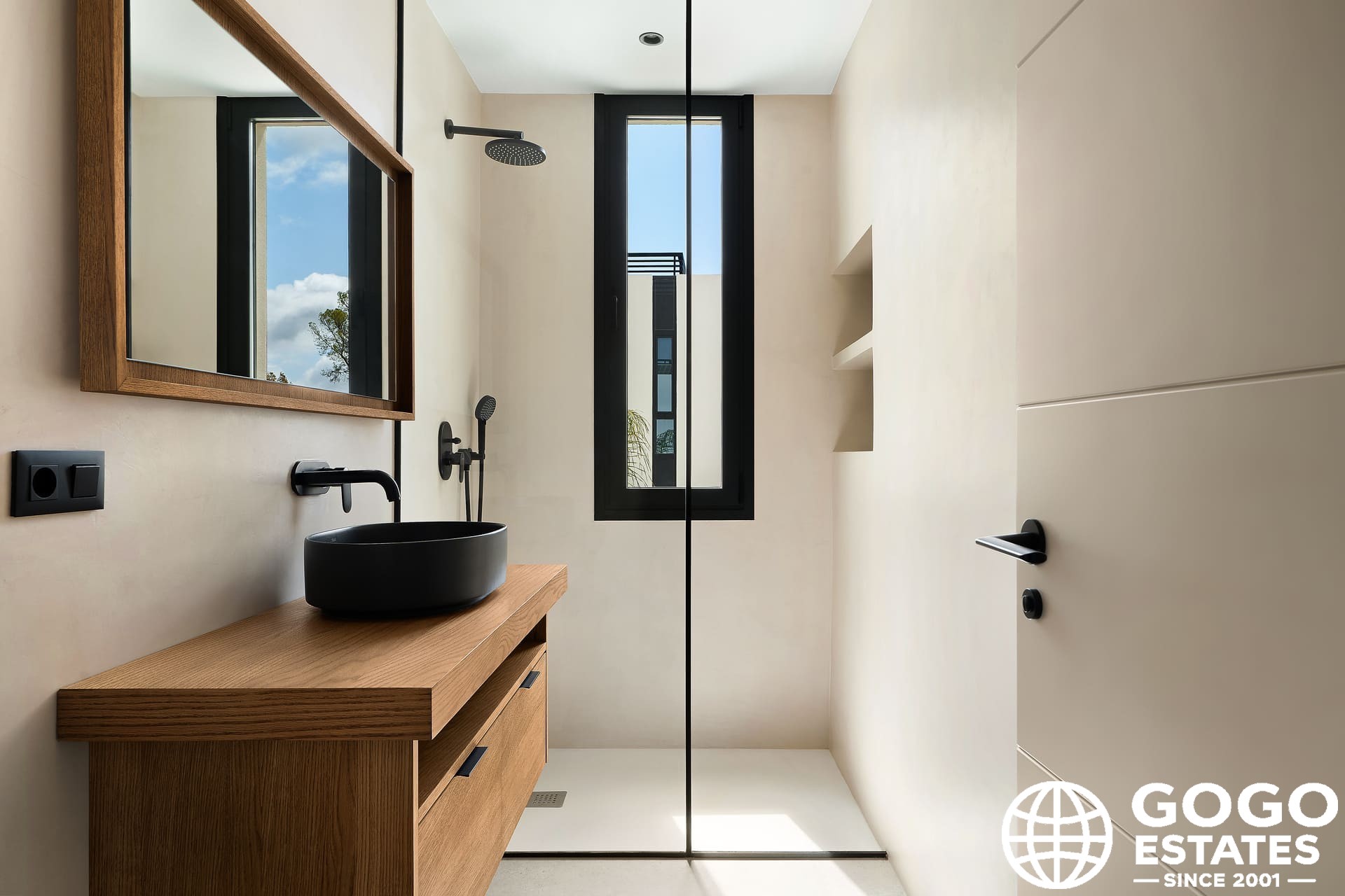 À l'intérieur, la villa est conçue avec un accent sur le confort et la modernité. Les sols en grès cérame ajoutent de l'élégance, tandis que des appareils électroménagers de haute qualité garantissent que la cuisine est prête à l'emploi. L'automatisation domestique intégrée, les volets électriques et un interphone vidéo améliorent la sécurité et la commodité.