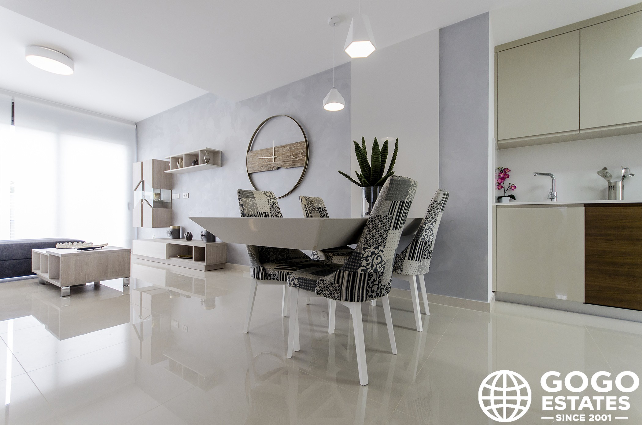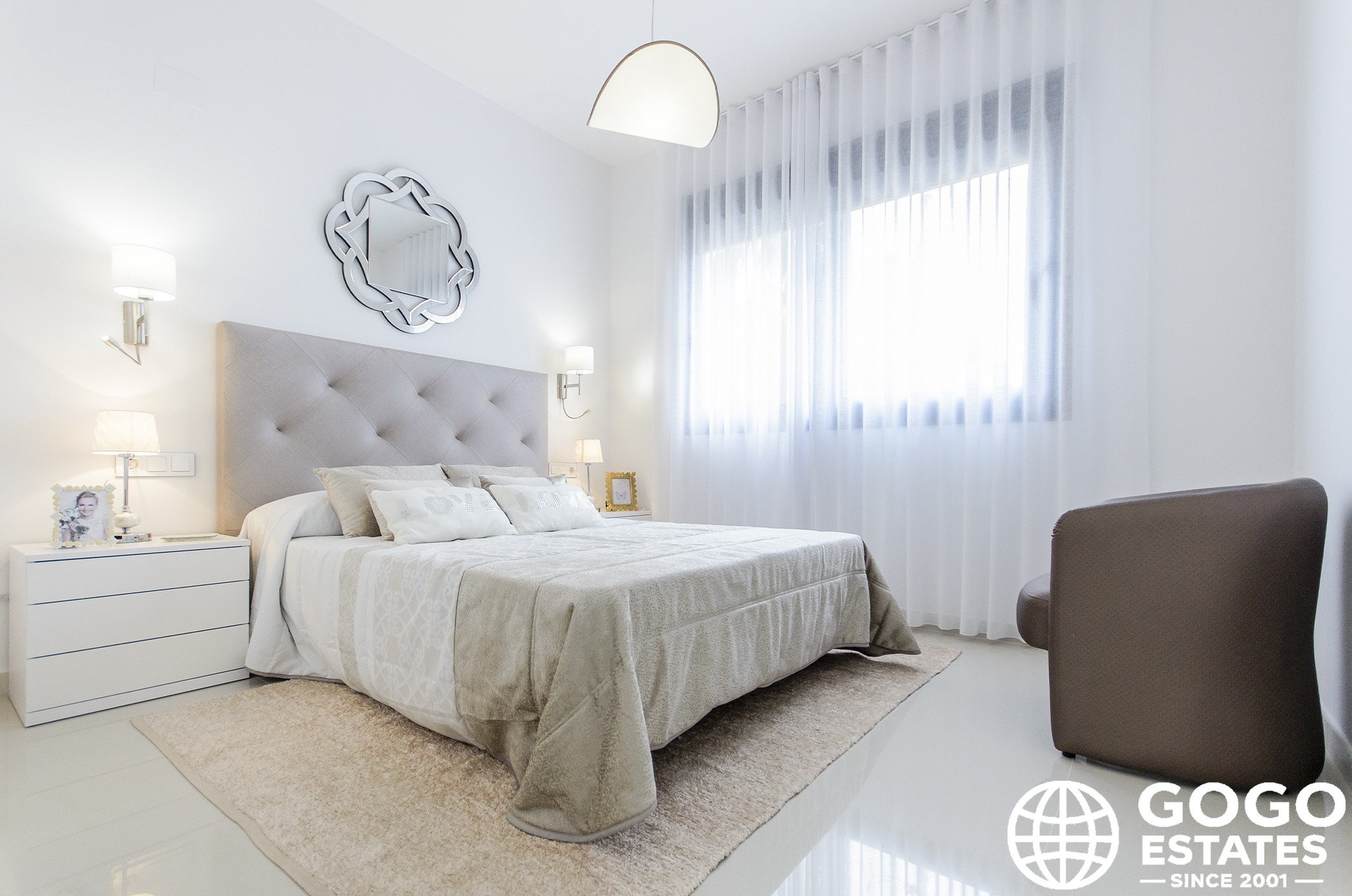 À l'intérieur, des sols en céramique et la climatisation garantissent le confort. La cuisine comprend des appareils électroménagers, et des placards intégrés offrent un espace de rangement généreux. Un interphone vidéo fournit une sécurité supplémentaire.