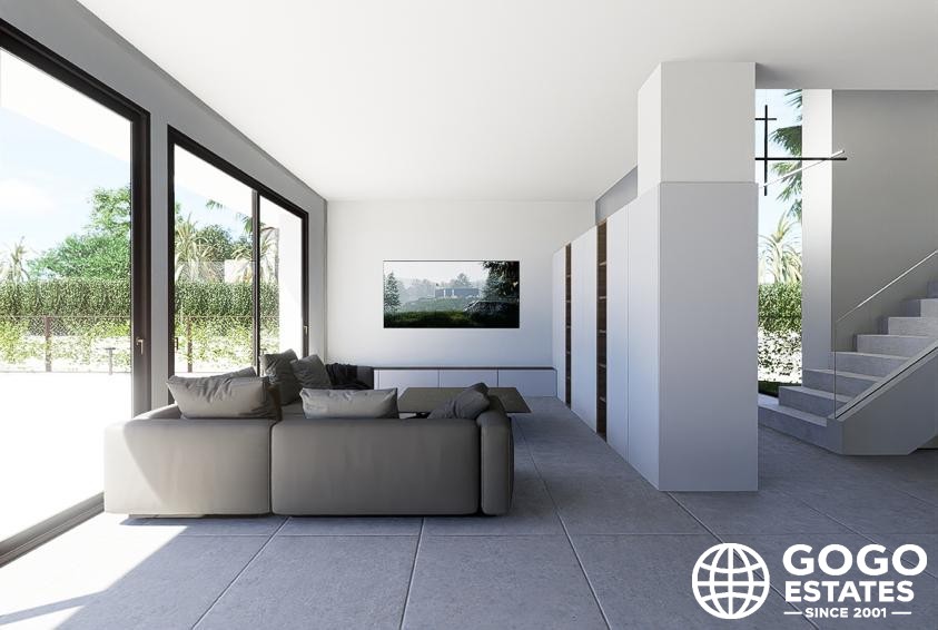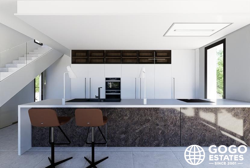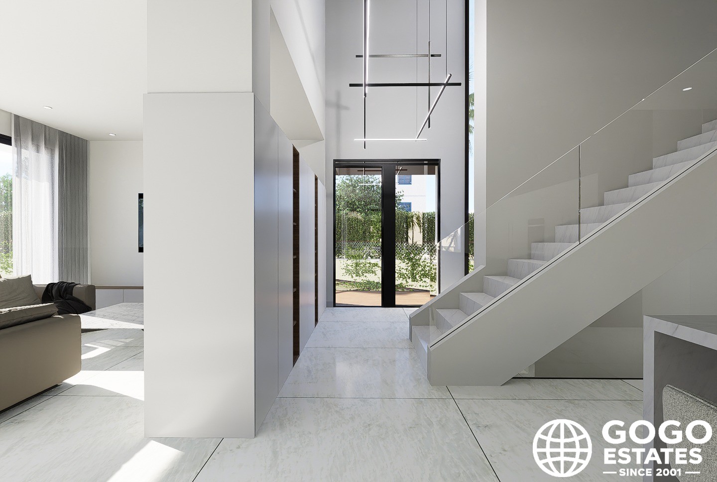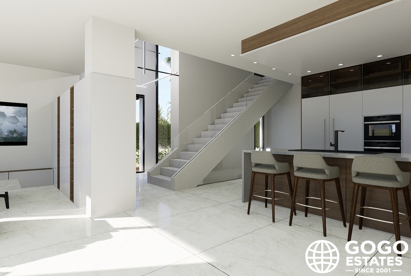L'intérieur de la villa se concentre sur le confort et la fonctionnalité. Les sols en grès cérame ajoutent de l'élégance et sont faciles à entretenir. La villa est équipée de la climatisation, garantissant un environnement agréable tout au long de l'année. Les placards intégrés dans les chambres offrent un espace de rangement ample.