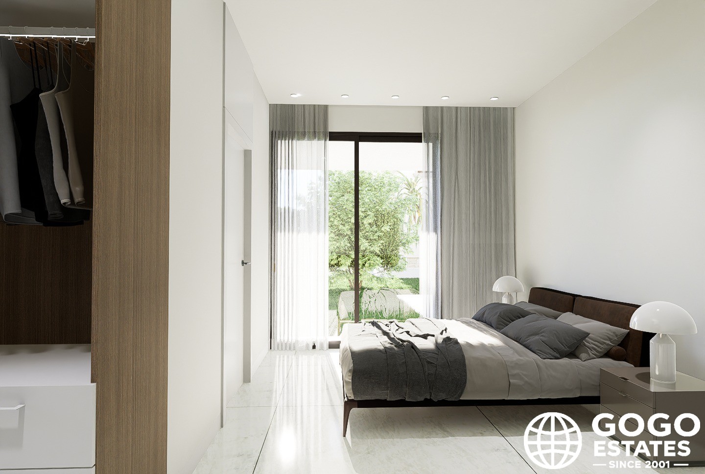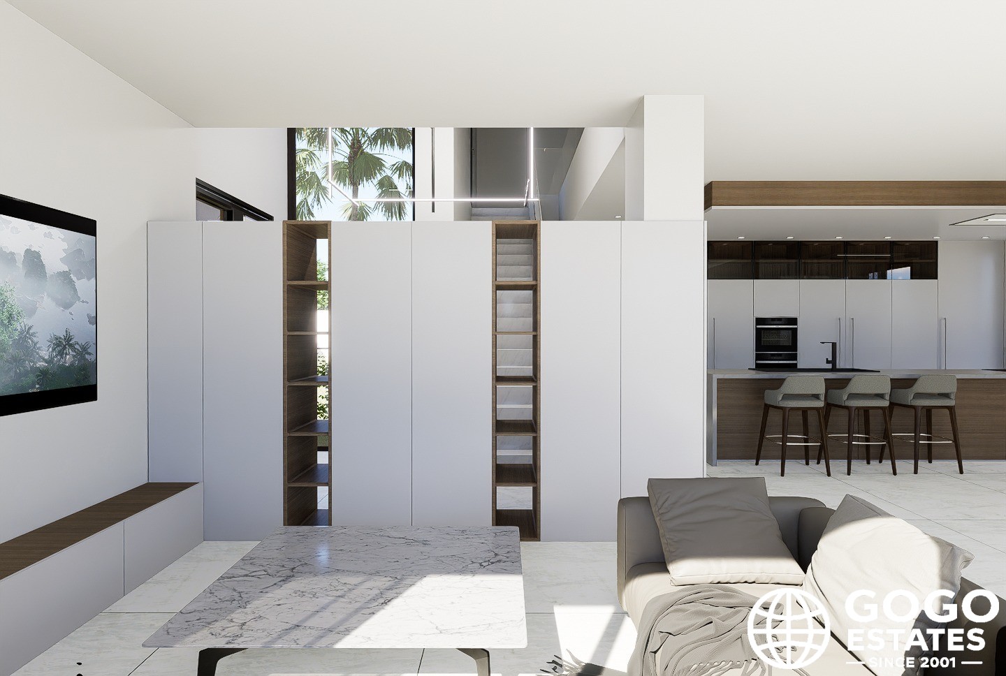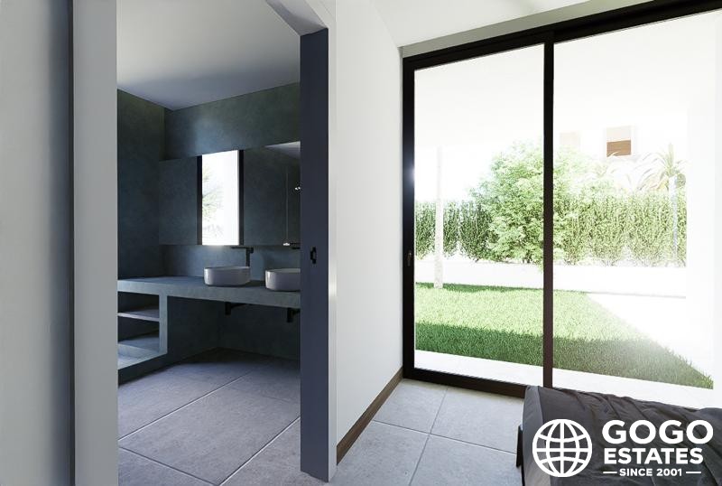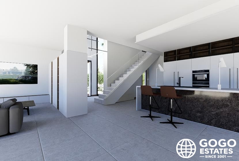 L'intérieur de la villa se concentre sur le confort et la fonctionnalité. Les sols en grès cérame ajoutent de l'élégance et sont faciles à entretenir. La villa est équipée de la climatisation, garantissant un environnement agréable tout au long de l'année. Les placards intégrés dans les chambres offrent un espace de rangement ample.