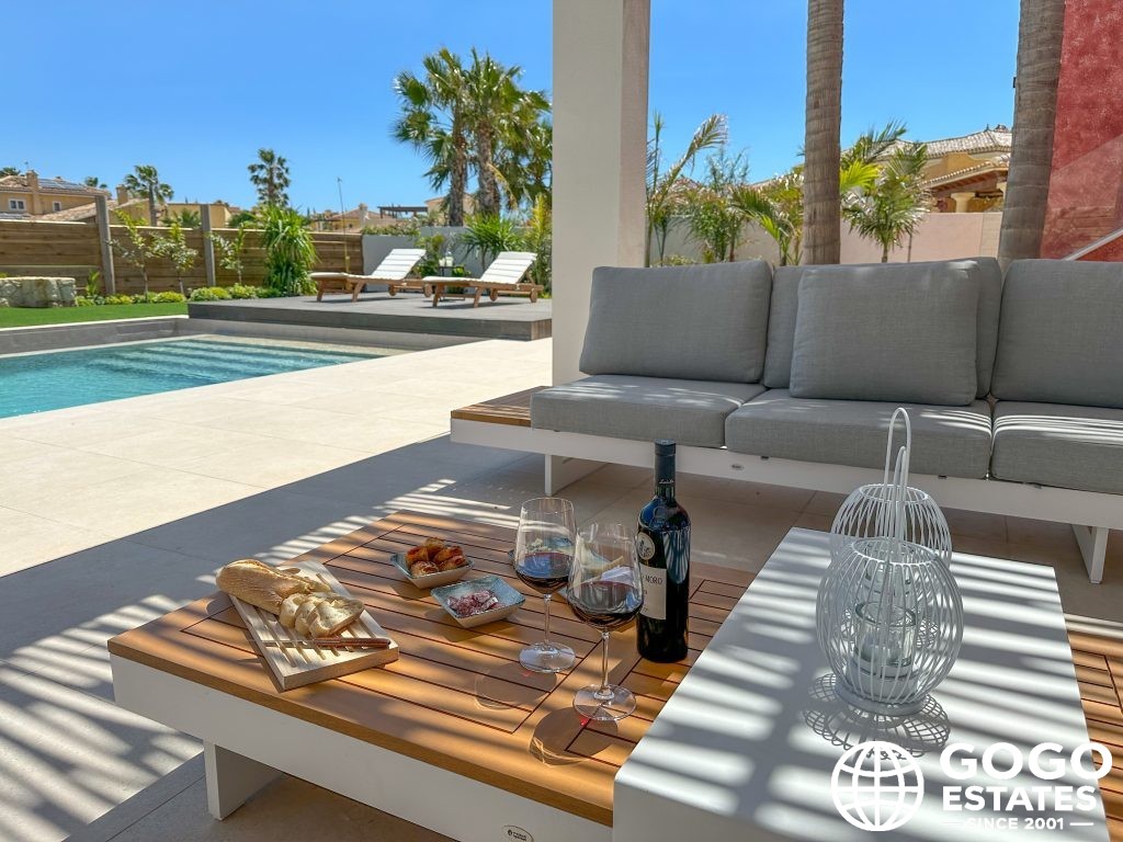 Le design extérieur de la villa est époustouflant, avec une terrasse privée, des jardins et une piscine, parfaits pour profiter du climat méditerranéen. Une pergola ajoute élégance et fonctionnalité pour les divertissements en plein air.