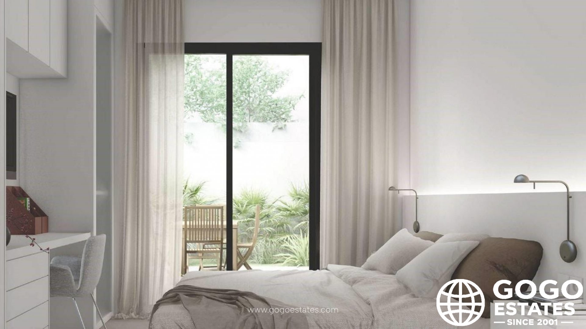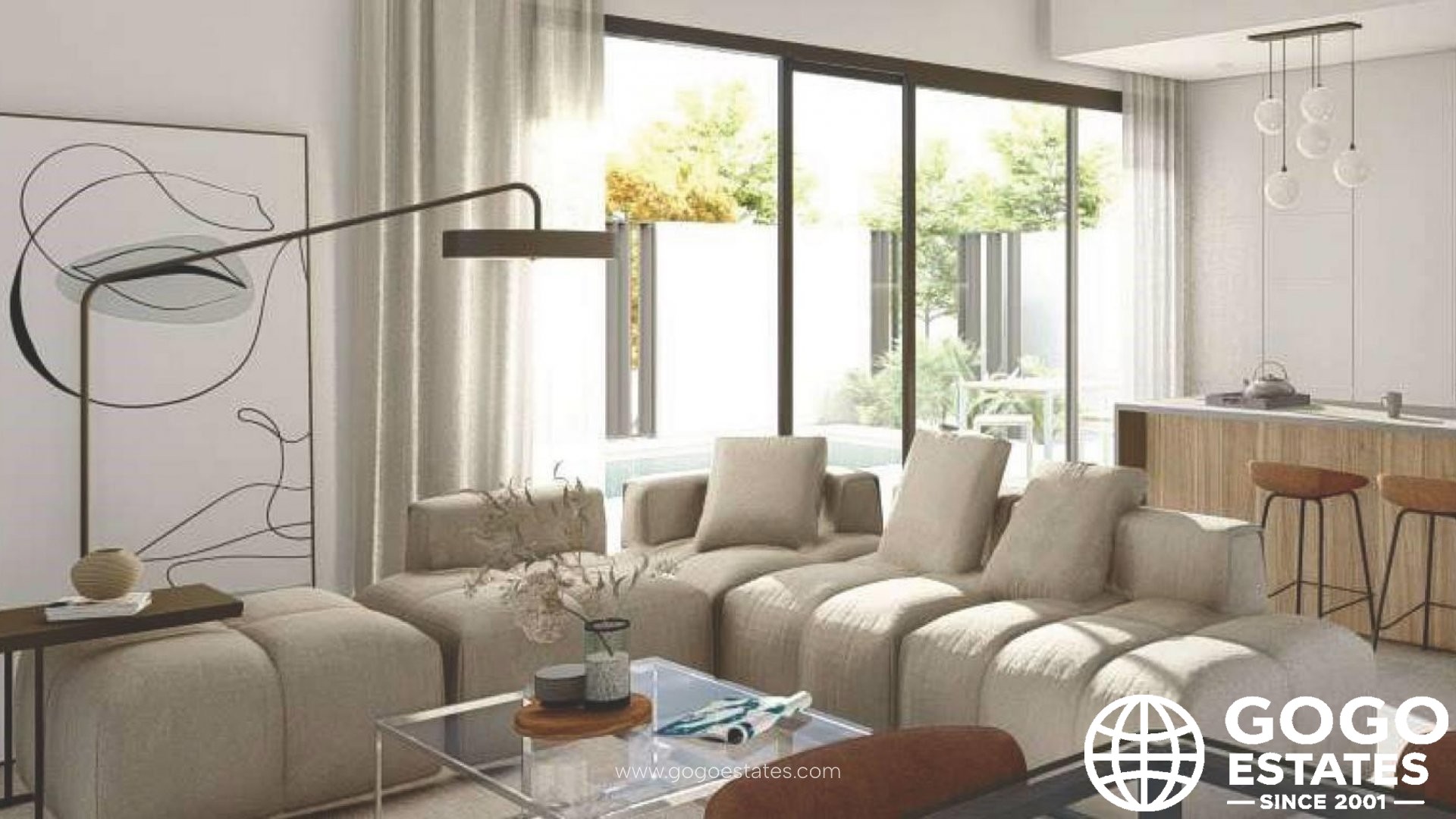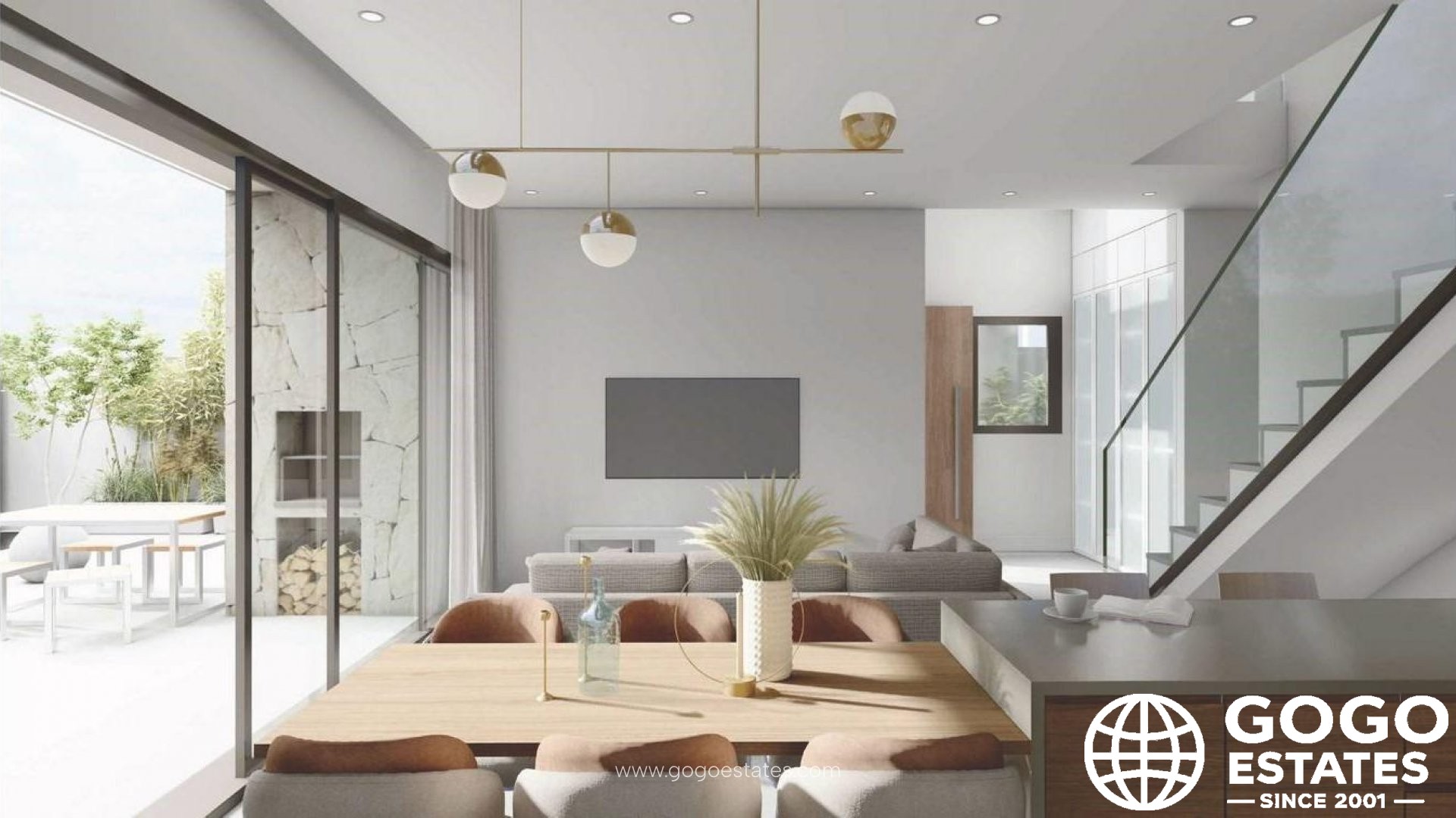 La villa dispose de terrasses spacieuses avec des parapets solides, garantissant à la fois sécurité et luminosité. La menuiserie extérieure comprend des fenêtres en aluminium laqué avec des volets motorisés dans les espaces de vie. Un système de vidéophone assure un accès sécurisé.