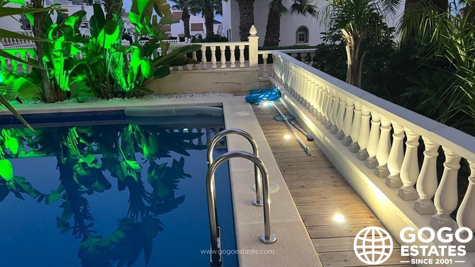 La villa dispose de trois chambres spacieuses, dont une suite principale avec des placards intégrés et un accès à la terrasse. Deux salles de bains luxueuses sont équipées de finitions de haute qualité et d'installations modernes. La piscine récemment rénovée et le jacuzzi dans le jardin offrent détente et divertissement.