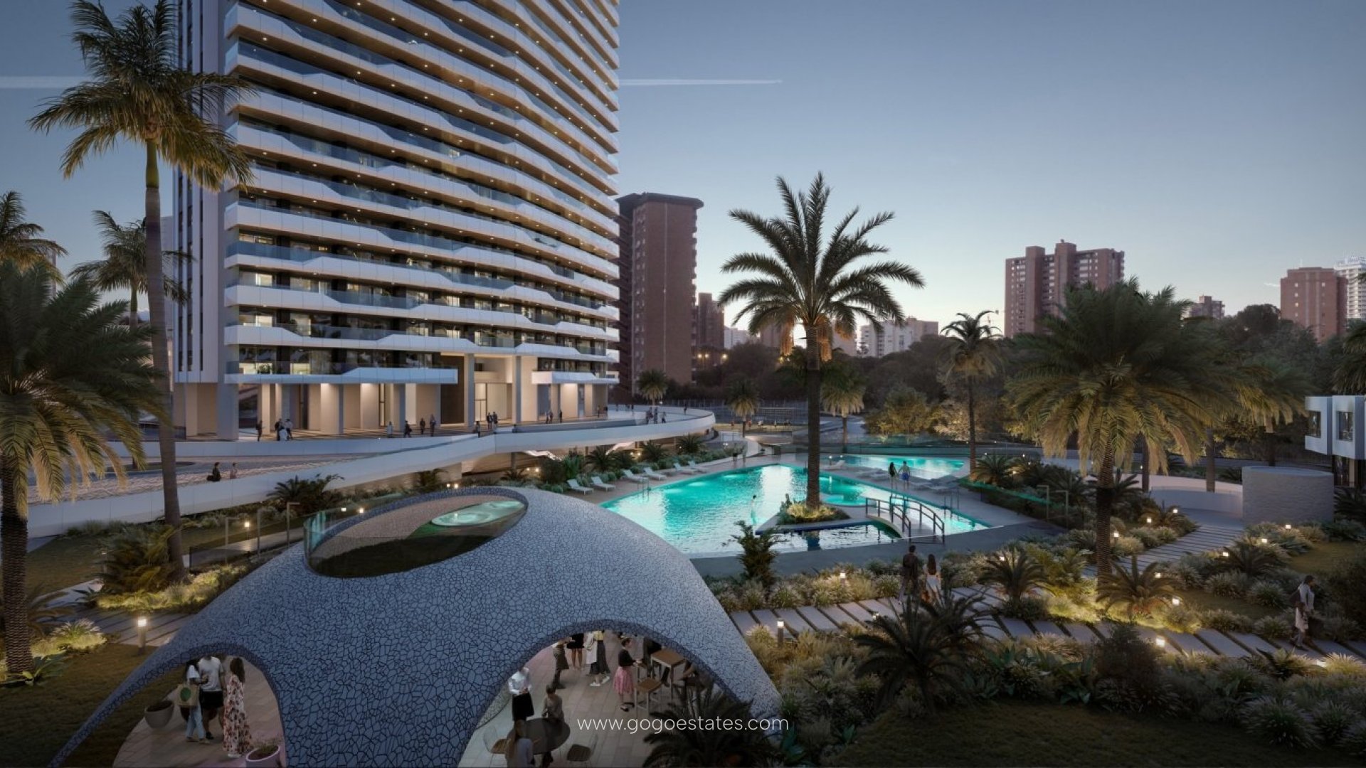 NIEUWBOUW WOONPLAATS IN PLAYA PONIENTE DE BENIDORM !!! Nieuwe residentiële zeezichten met 220 woningen met 2, 3 en 4 slaapkamers in een glazen toren met ruime terrassen met uitzicht. Apparatuur : Inrichting: Afzuigkap, Oven en touch-control inductiekookplaat, Koelkast, Vaatwasser, Wasmachine, Pre-installatie voor droger en magnetron. Douchescherm met veiligheidsglas, Spiegel, Verlichting met LED-spots Airco Aerothermie De gemeenschappelijke ruimtes zijn uitgerust met een zwembad voor volwassenen, een kinderbad, een spa, jacuzzi's, een ontspanningsruimte, een kinderspeelplaats, twee paddlebanen, een garage, enz. De kust van Alicante staat bekend om zijn milde temperaturen en meer dan 300 dagen zon per jaar. De stad Benidorm staat bekend om zijn unieke hotel-, zon- en strandinfrastructuur, gecombineerd met een grote verscheidenheid aan traditionele Spaanse, Baskische of Valenciaanse gerechten, evenals andere internationale variëteiten die zijn aangepast aan alle smaken en verlangens om te experimenteren. Het heeft verschillende golfbanen op slechts 5 minuten van Sierra Cortina, Golf Bahia, drie themaparken en verschillende winkelcentra.