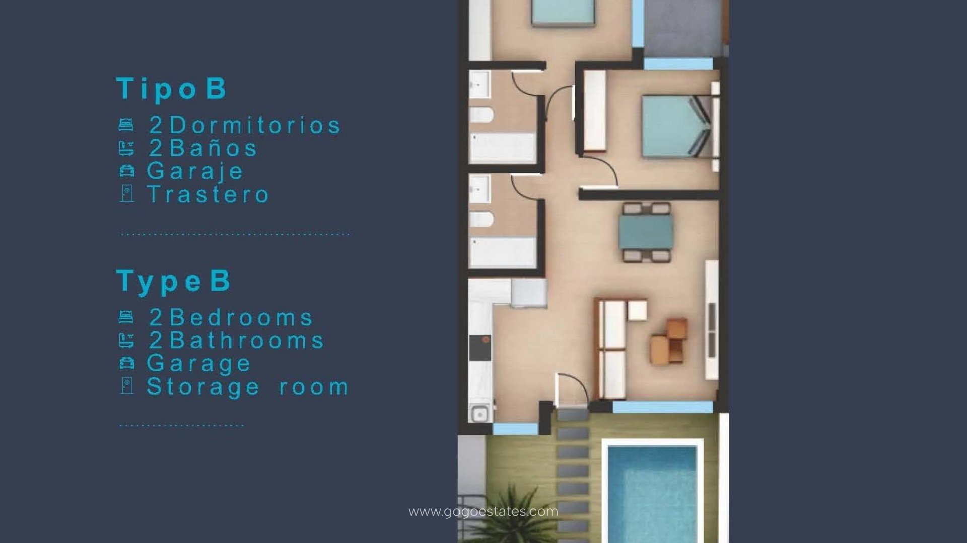 Nieuwbouwwoningen in San Pedro del Pinatar – Luxe en natuur aan zee Toplocatie vlakbij stranden en natuurreservaat Ontdek een exclusief wooncomplex met nieuwbouwbungalows in een van de meest bevoorrechte wijken van San Pedro del Pinatar, Murcia. Op slechts 1,8 km van de stranden van de Middellandse Zee en op slechts 500 meter van het beschermde regionale park Salinas y Arenales biedt dit project een unieke levensstijl, omgeven door natuur, rust en alle essentiële voorzieningen. Het complex ligt in een rustige woonwijk tegenover een groot park, op loopafstand van supermarkten, winkels, cafés, het stadscentrum en het lokale busstation, met uitstekende verbindingen naar nabijgelegen steden zoals Torrevieja en Cartagena. Modern mediterraan wonen – Bungalows met tuin of solarium Dit boetiekproject biedt bungalows met 2 en 3 slaapkamers met twee verschillende indelingen: Woningen op de begane grond met privétuin Woningen op de bovenste verdieping met ruime privésolaria Elke woning is ontworpen om comfort, natuurlijk licht en open ruimtes te maximaliseren, ideaal voor zowel permanent wonen als vakantieverblijven. Alle woningen beschikken over een eigen parkeerplaats en berging en hebben toegang tot een groot gemeenschappelijk zwembad en een volledig uitgeruste fitnessruimte. Als optionele upgrade kunnen bewoners een privézwembad toevoegen, wat de exclusiviteit en het plezier van het buitenleven nog verder vergroot. Hoogwaardige voorzieningen en maatwerkopties Deze nieuwbouwwoningen zijn gebouwd volgens de hoogste normen en bieden: Aluminium ramen met thermische onderbreking en elektrische rolluiken voor comfort en energie-efficiëntie Vloerverwarming in de badkamers voor warmte het hele jaar door Voorbereiding voor airconditioning in het hele huis Moderne keukens met hoogwaardige afwerking en mogelijkheden om kleuren en materialen te personaliseren Ruime, lichte interieurs met functionele indelingen en optimale oriëntatie Een stad die meer te bieden heeft San Pedro del Pinatar is een parel aan de kust van de Costa Cálida, genesteld tussen de Mar Menor en de Middellandse Zee. Het staat bekend om zijn unieke zoutvlaktes, zandstranden en traditionele visserserfgoed. De omgeving biedt ook: Therapeutische modderbaden aan de kust van de Mar Menor Gezinsvriendelijke stranden met kalm, ondiep water Natuurlijke wandelpaden voor vogelspotten en buitenactiviteiten Levendige lokale markten, culturele evenementen en uitstekende restaurants Nabijheid van luchthavens: internationale luchthaven Murcia op 35 km en luchthaven Alicante op 75 km Golfbanen binnen 10 tot 15 km, waaronder Lo Romero Golf en Roda Golf Resort Winkelcentra zoals Dos Mares op slechts 3 km afstand Verzeker vandaag nog uw mediterrane droom Deze nieuwbouwwoningen bieden de perfecte mix van modern design, een uitzonderlijke locatie en hoogwaardige afwerking. Of u nu op zoek bent naar een permanente woning, een vakantiehuis of een investeringsmogelijkheid, dit is uw kans om te genieten van de mediterrane levensstijl in San Pedro del Pinatar. Neem nu contact met ons op voor meer informatie of om een bezichtiging te regelen.