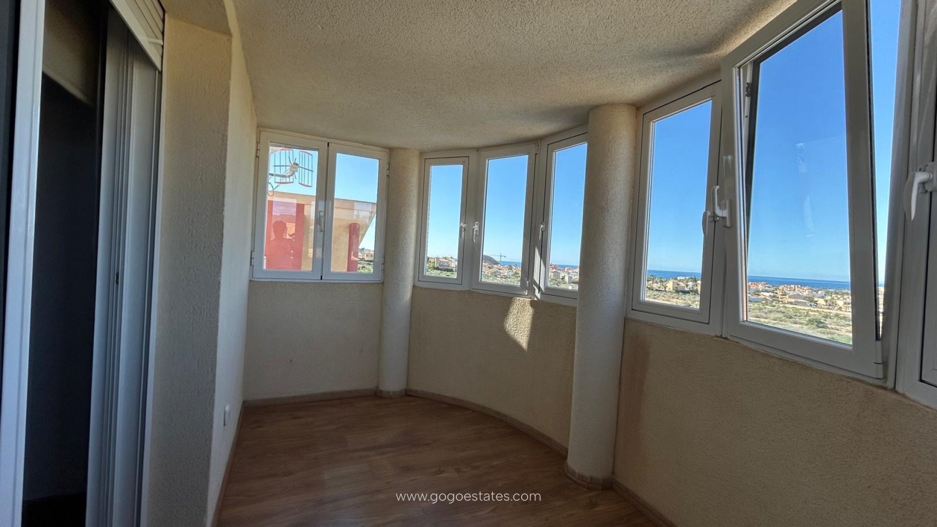 - Hoofdslaapkamer op de eerste verdieping: tweepersoonsbed, airconditioning, inbouwkasten en toegang tot een glazen terras met uitzicht.