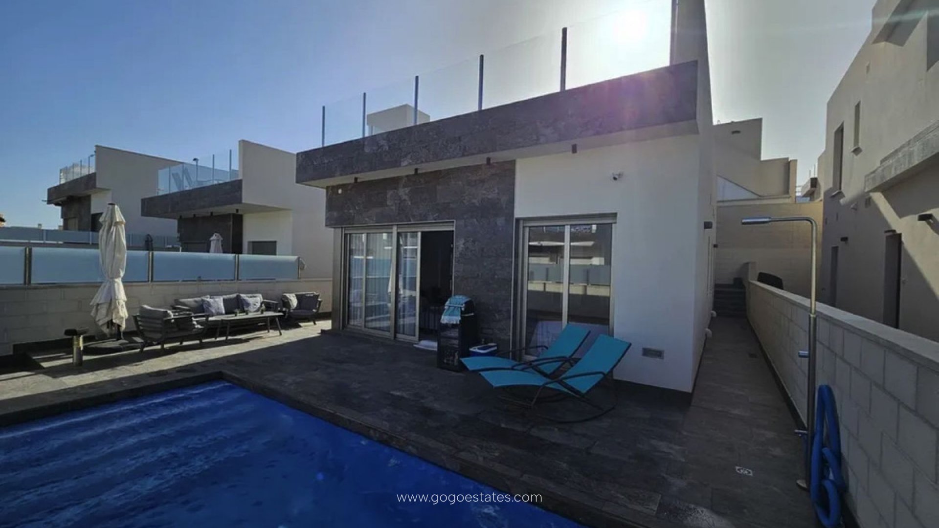 Met trots presenteren wij u deze absoluut prachtig nieuw gebouwde vrijstaande villa gelegen in Residential Pink Paradise, in Villamartin, op slechts enkele minuten van het bekende Villamartin Plaza en de grote verscheidenheid aan internationale restaurants, supermarkten en bars. De woning bestaat uit 3 ruime slaapkamers met inbouwkasten, 2 badkamers, woon-/eetkamer en een volledig ingerichte open keuken met bijkeuken. De villa heeft terrassen, een privézwembad en een groot dakterras met adembenemend uitzicht op het roze zoutmeer en het dennenbos. Villamartin ligt in het binnenland van de stranden van Dehesa de Campoamor, Cabo Roig, La Zenia, Playa Flamenca en Punta Prima, hoewel het nog steeds deel uitmaakt van het gebied Orihuela Costa. Er zijn een aantal commerciële centra, waarvan de grootste de Villamartin Plaza is, waar je een enorm aanbod aan gerechten en entertainment voor het hele gezin vindt. Het zit vol Spaanse charme met zijn keramische tegels, ijzeren balkons en lampen en is een zeer populaire eetbestemming. Daarbij komt nog de gerenommeerde 18-holes golfbaan van Villamartin.