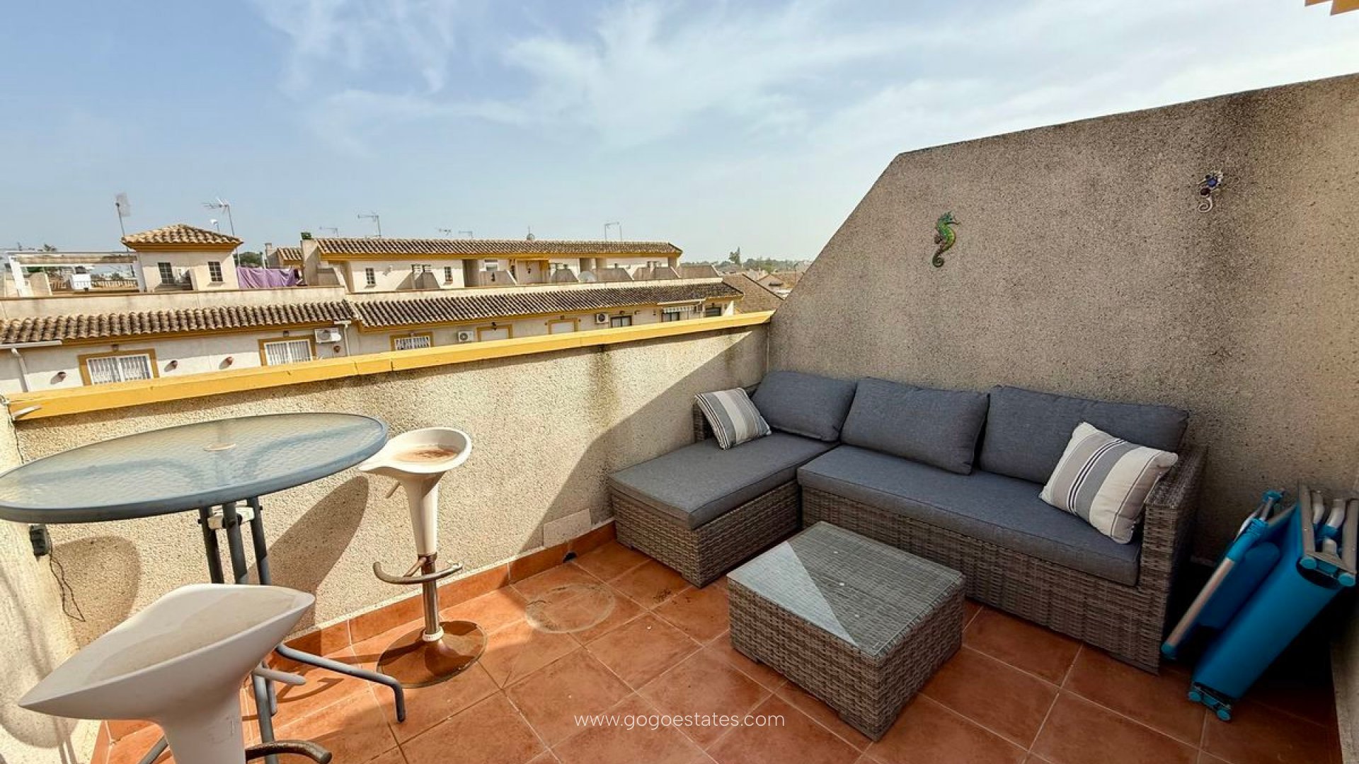 Charmante halfvrijstaande woning met twee slaapkamers in Daya Nueva, Costa Blanca Zuid Ontdek deze prachtige halfvrijstaande woning met twee slaapkamers en twee badkamers, perfect gelegen in het rustige stadje Daya Nueva aan de Costa Blanca Zuid. Gebouwd in 2004, biedt deze goed onderhouden woning comfortabel wonen met ruime buitenruimtes en gemakkelijke toegang tot lokale voorzieningen. Belangrijkste kenmerken: Twee slaapkamers, twee badkamers - Slaapkamers bevinden zich op de bovenverdieping, met een handige badkamer beneden. Aparte keuken - Functioneel en goed uitgerust voor al uw culinaire behoeften. Oostgerichte oriëntatie - Geniet van de ochtendzon op het grote terras aan de voorzijde. Privé buitenruimtes - Inclusief een solarium dakterras en een privé terras aan de achterzijde, perfect om te ontspannen of gasten te ontvangen. Gemeenschappelijk zwembad - Op korte loopafstand voor een verfrissende duik op warme dagen. Loopafstand naar voorzieningen - Winkels, restaurants en diensten op slechts een steenworp afstand. Parkeren op eigen terrein - Veilig en gemakkelijk parkeren bij de accommodatie. Lage gemeenschapskosten - Slechts € 110 per jaar voor fantastische gemeenschappelijke voorzieningen. Perceeloppervlakte: 70m² | Oppervlakte: 82m² – Goed geproportioneerde woonoppervlakte. Deze gedeeltelijk gemeubileerde woning is ideaal voor permanente bewoning, een vakantiehuis of een investeringspand op een gewilde locatie. Mis deze fantastische kans niet en neem vandaag nog contact met ons op om een bezichtiging te regelen! Neem nu contact op voor meer informatie! Daya Nueva is een klein dorp met 1.761 inwoners, gelegen ten zuidoosten van de provincie Alicante, in het district Vega Baja del Segura, op een hoogte van 9 m boven de zeespiegel. Het beslaat een oppervlakte van 7,2 km2 en ligt op 44 km afstand van Alicante en 196 km van Valencia. Het biedt vele voorzieningen, waardoor u zich er meteen thuis zult voelen. De nabijgelegen dorpen zijn onder andere Daya Vieja, Almoradí en San Fulgencio. Slechts 40 minuten rijden van de luchthaven van Alicante en 15 minuten rijden van de prachtige stranden van Guardmar del Segura.