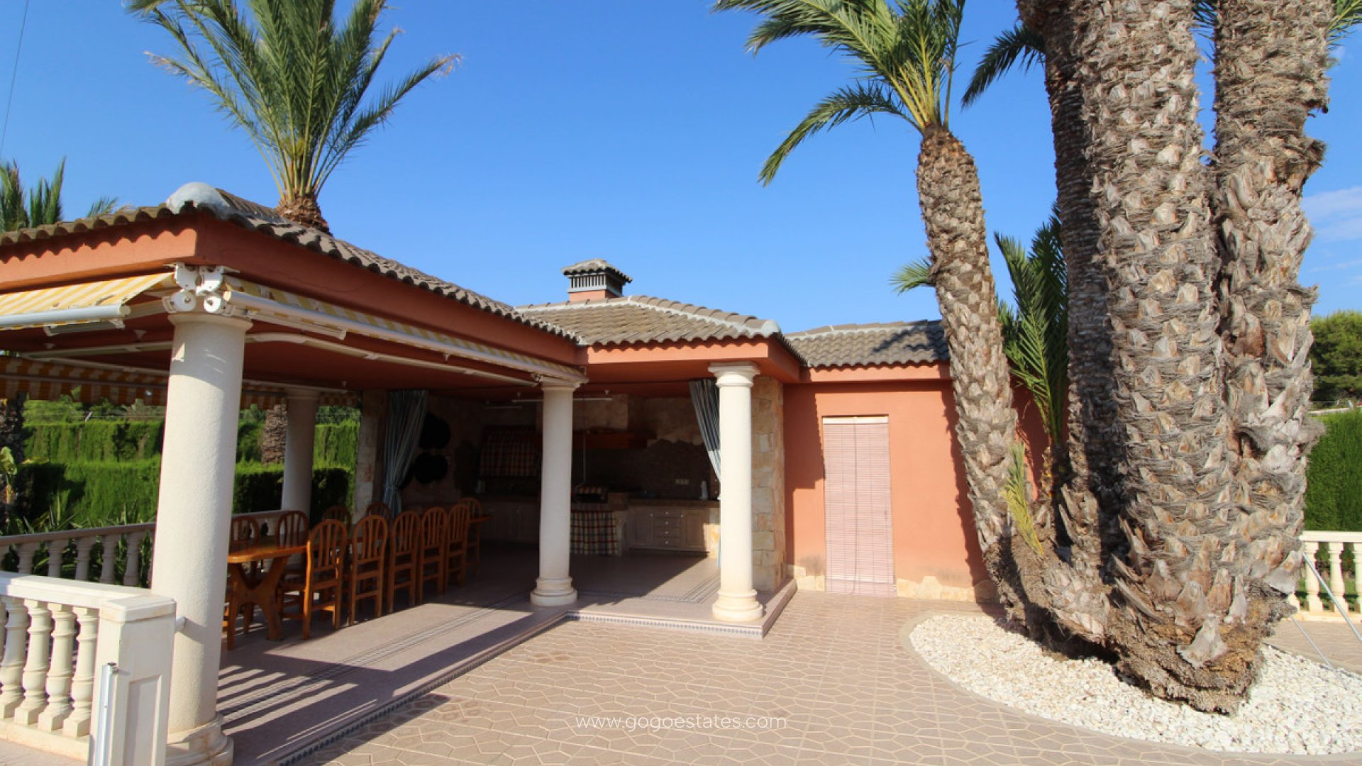 Deze woning is een fantastische villa, omgeven door benijdenswaardige tuinen met mediterrane planten en romantische hoekjes van meer dan 7.500 vierkante meter in een groene en natuurlijke oase die u de grote rust biedt die maar weinig andere plaatsen kunnen bereiken. Het perceel is volledig aangelegd met weelderige palmbomen van grote bijzonderheid, met een prachtig natuurlijk gazon, een vijver met natuurlijk water dat de temperatuur en vochtigheid van de omgeving in evenwicht brengt en fruitbomen. Het valt op door het ontwerp van de constructie, de kwaliteit van de materialen en de elegantie van de afwerking, evenals door de privacy en rust die het huis omringt. De uitrusting van de woning is zeer compleet met een imposante en statige woning met een prachtig zwembad, een grote onafhankelijke barbecue met een kleedkamer met badkamer en douche. Het huis van 780 m2 heeft twee verdiepingen die verbonden zijn door een interne trap en beschikt ook over een kelder. Op de begane grond vinden we een prachtige veranda, ideaal voor ontbijt, een elegante eetkamer met een prachtig uitzicht op de tuin, een woonkamer met bibliotheek, een kamer die als woonkamer wordt gebruikt, 3 slaapkamers, 2 keukens, waarvan één met een zeer ruime eetkamer met open haard en een wasruimte. Op de eerste verdieping vinden we een woonkamer en een groot terras met uitzicht op het zwembad en de tuin, nog een woonkamer met eetkamer, 3 slaapkamers, waarvan één toegang heeft tot een groot terras om van de zonsondergang te genieten, 2 badkamers, een keuken en een wasruimte. En tot slot, in de kelder, is er een grote ruimte die zowel als opslagruimte als garage kan worden gebruikt. Het pand beschikt over hoogwaardige commerciële, recreatieve en sportieve voorzieningen in de omgeving, evenals de verbinding met belangrijke verkeersaders naar de belangrijkste steden over de weg en met de luchthaven Alicante-Elche.