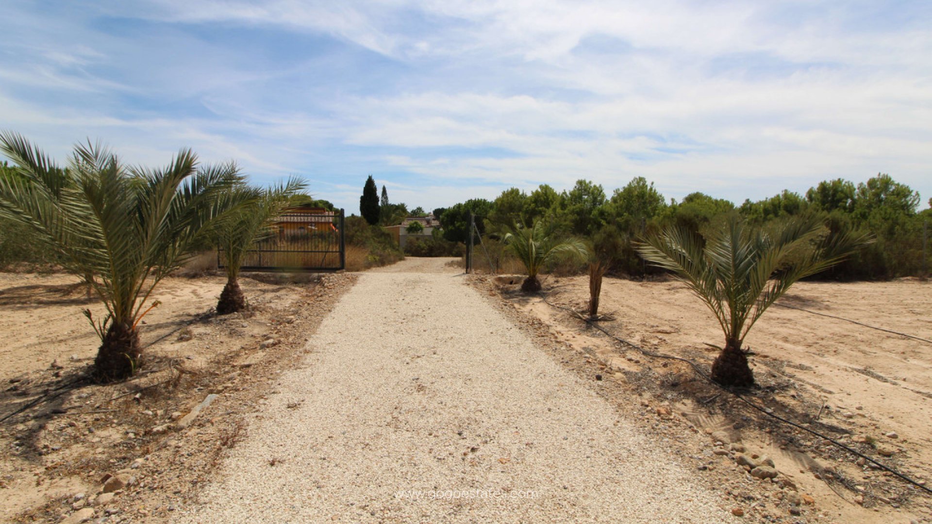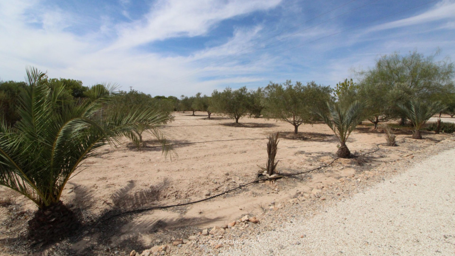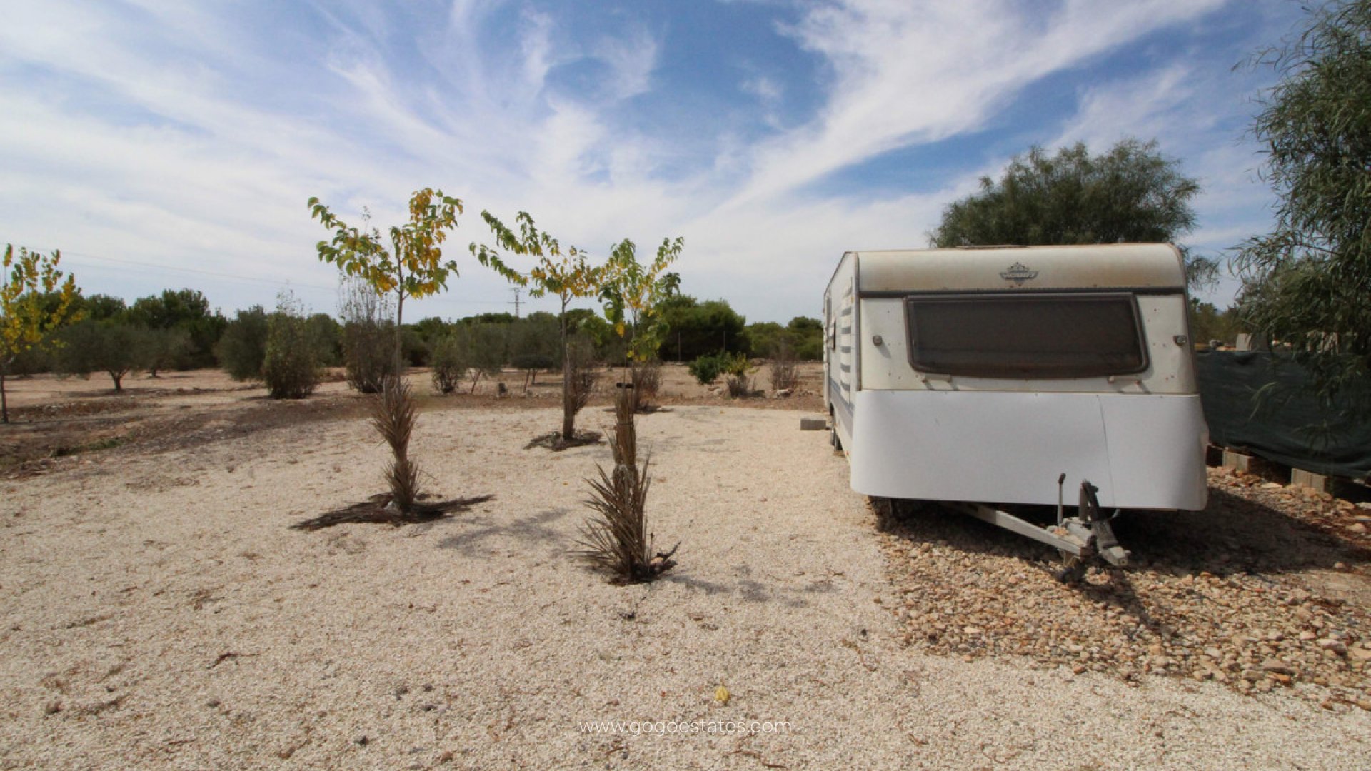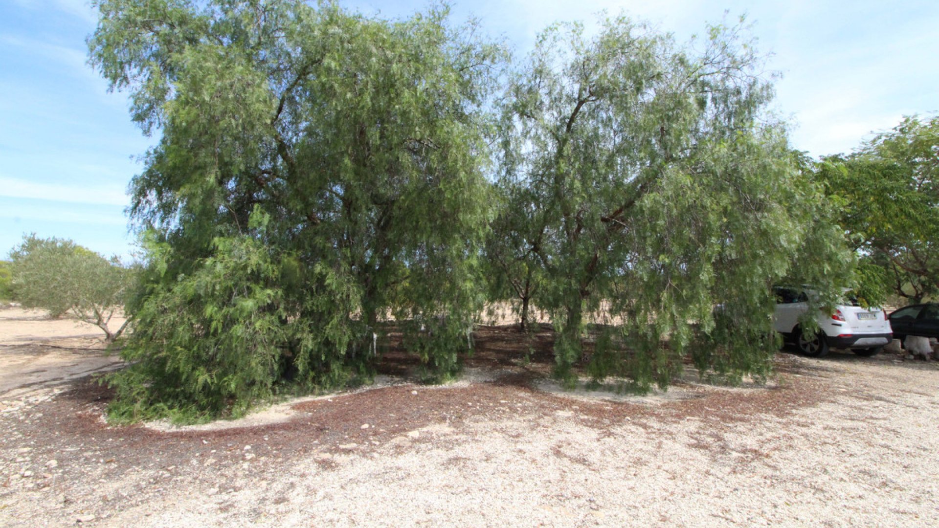 Dit is een kans om een groot perceel grond van 8300 m² met een caravan te kopen, op 10 minuten rijden van het strand of de luchthaven van Alicante. Het terrein is beplant met bomen en mag niet worden gebruikt voor de bouw van een stenen huis, maar een houten constructie of stacaravan is wel toegestaan. Het terrein is omheind en heeft een hek rondom het hele perceel.