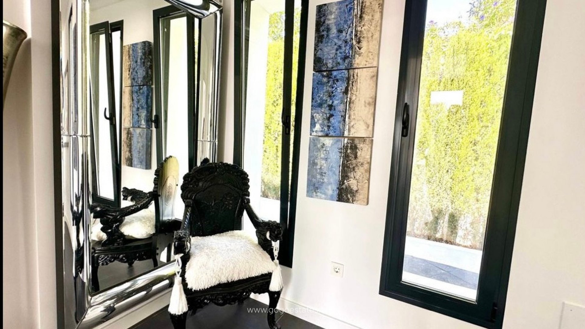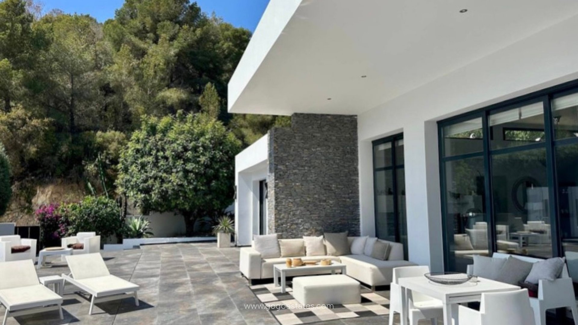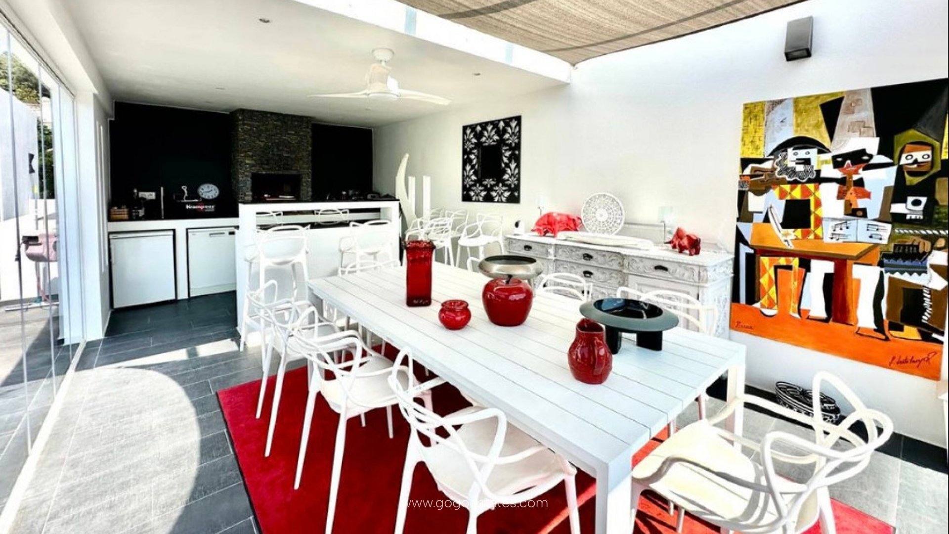 Spectaculair uitzicht op zee en de vallei – Moderne villa in een rustige, groene omgeving. Gelegen in een rustige, groene omgeving met een weids uitzicht op de zee en de omliggende valleien, combineert deze uitzonderlijke villa, gebouwd in 2018, moderne elegantie met moeiteloze functionaliteit. Met strakke architectonische lijnen, royale volumes en hoge plafonds biedt de woning zowel schoonheid als functionaliteit. De villa baadt in natuurlijk licht en is ontworpen om vanuit elke kamer een adembenemend uitzicht te bieden. De villa is gelijkvloers voor optimaal woongemak. De ruime leefruimte loopt naadloos over in de buitenlucht, waar brede terrassen, een prachtig zwembad en een uitstekend ingerichte zomerkeuken het hele jaar door uitnodigen tot genieten. De volledig uitgeruste zomerkeuken – compleet met panoramisch uitzicht op zee – kan volledig worden afgesloten voor comfort tijdens koelere avonden, waardoor een ideale ruimte ontstaat om gasten te ontvangen in elk seizoen. De indeling omvat een elegante hal met gastentoilet, een ruime open woonkamer met een lounge, eetkamer, bar en een volledig uitgeruste designkeuken, allemaal met toegang tot de terrassen, en een luxe master suite met eigen badkamer en inloopkast. Tevens zijn er twee gastenkamers, elk met een eigen badkamer met douche en toilet, en een vierde slaapkamer met een eigen badkamer, met eigen toegang en directe toegang tot de tuin, ideaal voor gasten of personeel. De prachtig aangelegde tuin toont volgroeide mediterrane flora, waaronder majestueuze palmen, bloeiende bougainvillea's en eeuwenoude olijfbomen. Elk detail is zorgvuldig samengesteld om een serene en harmonieuze buitenoase te creëren. Extra voorzieningen zijn onder andere vloerverwarming en airconditioning, elektrische rolluiken, voldoende parkeergelegenheid op het terrein en een garage/berging, ideaal voor fietsen en motoren (niet geschikt voor auto's). Dit zeldzame pareltje biedt verfijnd wonen aan de kust met volledige privacy en comfort, ideaal als hoofdverblijfplaats, luxe vakantiewoning of exclusieve verhuur.