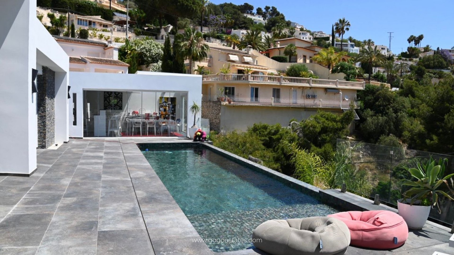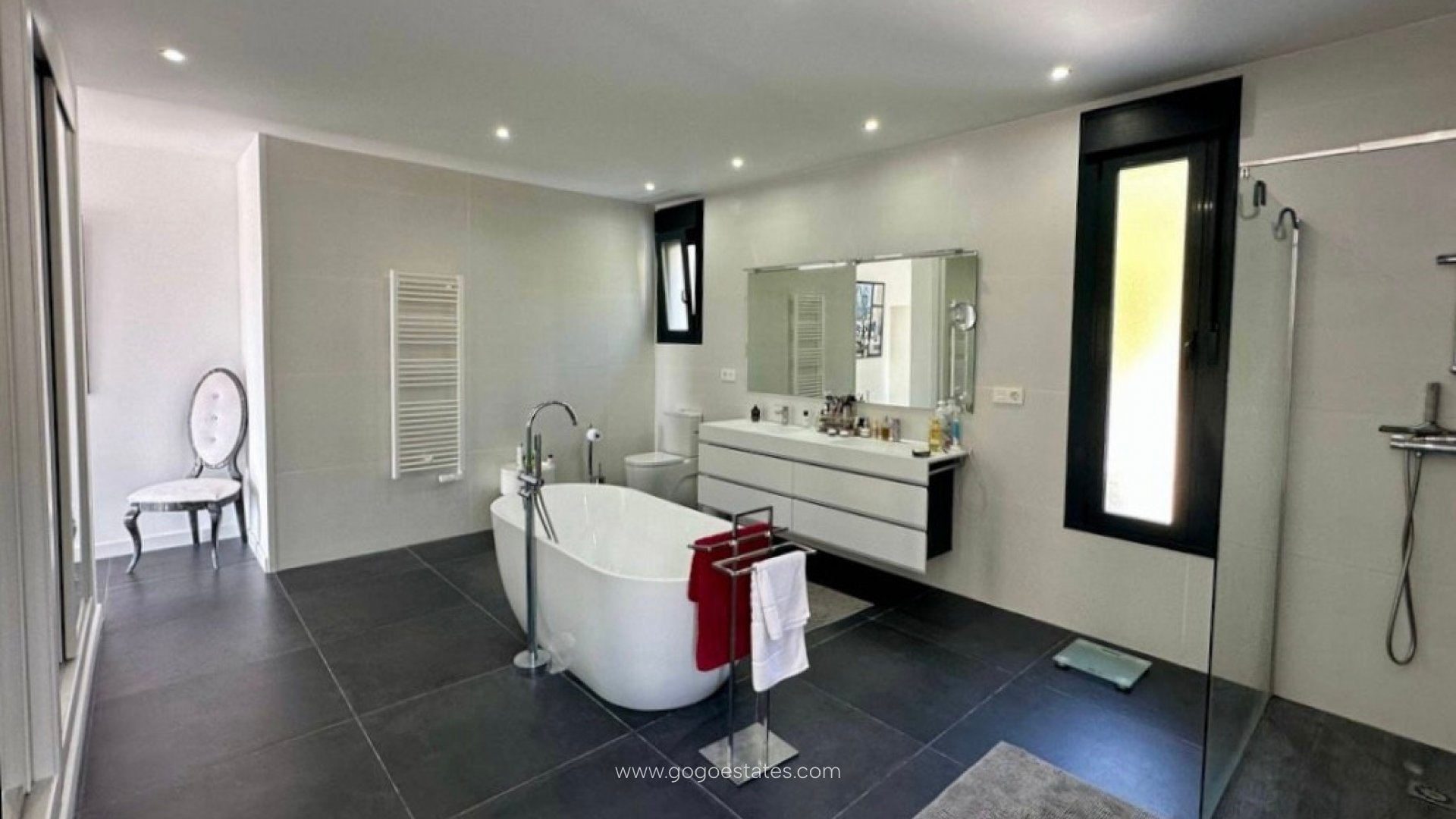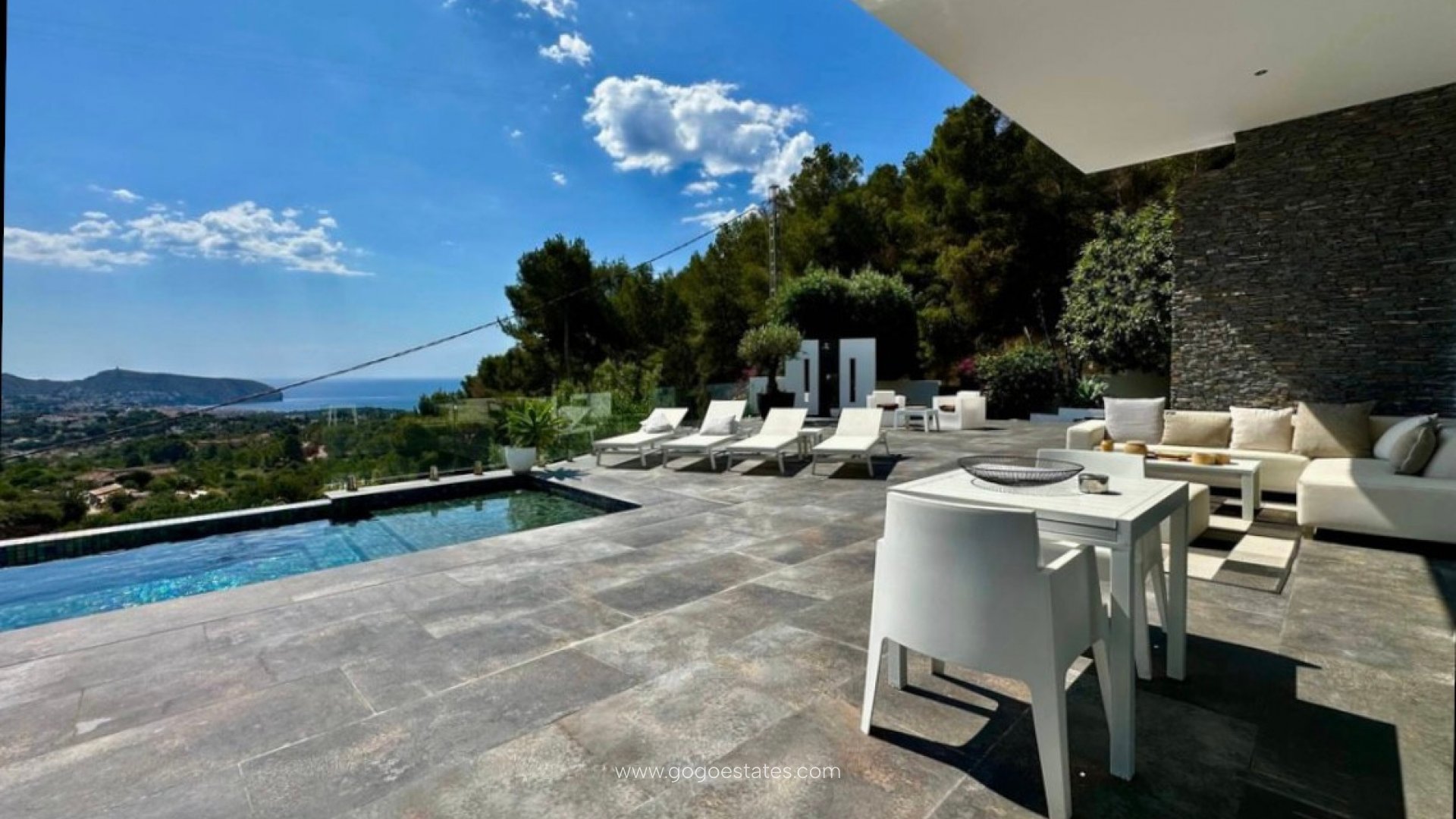 Spectaculair uitzicht op zee en de vallei – Moderne villa in een rustige, groene omgeving. Gelegen in een rustige, groene omgeving met een weids uitzicht op de zee en de omliggende valleien, combineert deze uitzonderlijke villa, gebouwd in 2018, moderne elegantie met moeiteloze functionaliteit. Met strakke architectonische lijnen, royale volumes en hoge plafonds biedt de woning zowel schoonheid als functionaliteit. De villa baadt in natuurlijk licht en is ontworpen om vanuit elke kamer een adembenemend uitzicht te bieden. De villa is gelijkvloers voor optimaal woongemak. De ruime leefruimte loopt naadloos over in de buitenlucht, waar brede terrassen, een prachtig zwembad en een uitstekend ingerichte zomerkeuken het hele jaar door uitnodigen tot genieten. De volledig uitgeruste zomerkeuken – compleet met panoramisch uitzicht op zee – kan volledig worden afgesloten voor comfort tijdens koelere avonden, waardoor een ideale ruimte ontstaat om gasten te ontvangen in elk seizoen. De indeling omvat een elegante hal met gastentoilet, een ruime open woonkamer met een lounge, eetkamer, bar en een volledig uitgeruste designkeuken, allemaal met toegang tot de terrassen, en een luxe master suite met eigen badkamer en inloopkast. Tevens zijn er twee gastenkamers, elk met een eigen badkamer met douche en toilet, en een vierde slaapkamer met een eigen badkamer, met eigen toegang en directe toegang tot de tuin, ideaal voor gasten of personeel. De prachtig aangelegde tuin toont volgroeide mediterrane flora, waaronder majestueuze palmen, bloeiende bougainvillea's en eeuwenoude olijfbomen. Elk detail is zorgvuldig samengesteld om een serene en harmonieuze buitenoase te creëren. Extra voorzieningen zijn onder andere vloerverwarming en airconditioning, elektrische rolluiken, voldoende parkeergelegenheid op het terrein en een garage/berging, ideaal voor fietsen en motoren (niet geschikt voor auto's). Dit zeldzame pareltje biedt verfijnd wonen aan de kust met volledige privacy en comfort, ideaal als hoofdverblijfplaats, luxe vakantiewoning of exclusieve verhuur.