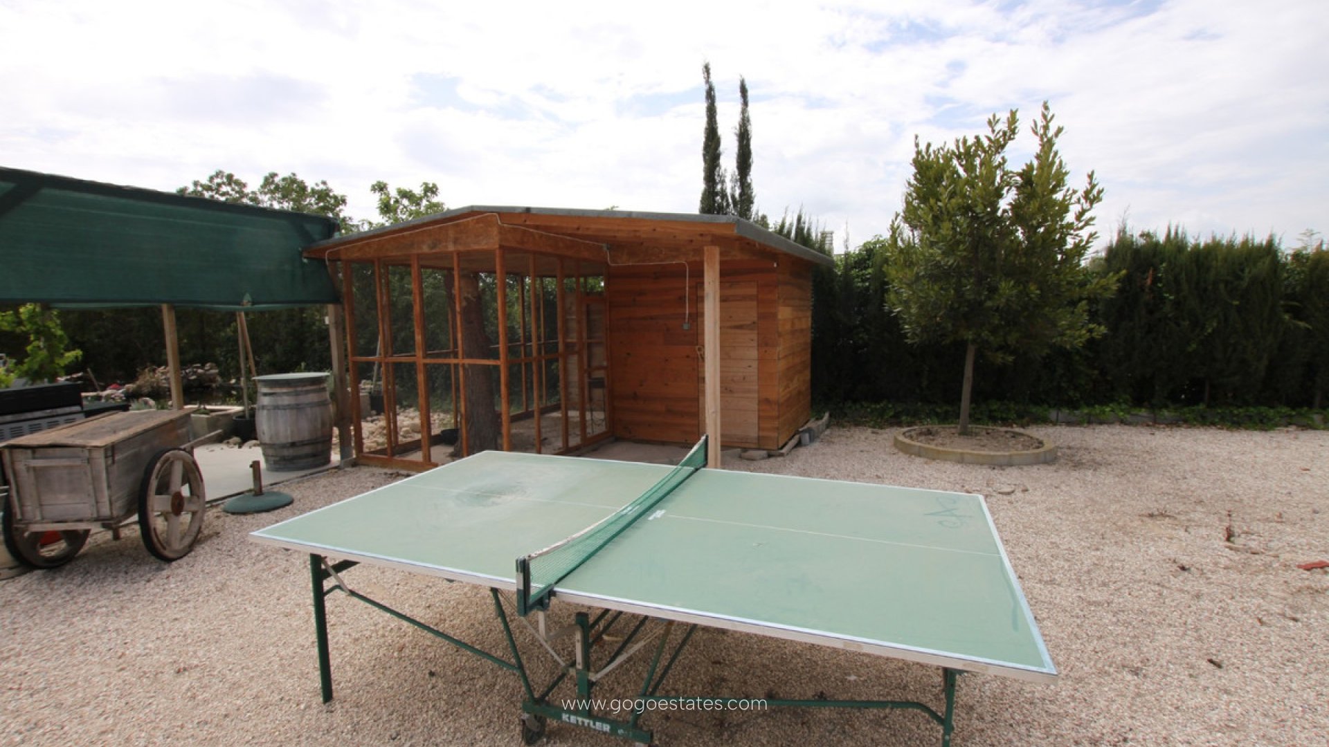 Paardenboerderij net buiten Crevillente. De woning is 190 m2 en bestaat uit 5 slaapkamers, 3 badkamers (waarvan 2 ensuite), grote woonkamer met eethoek en een open keuken. Aan de buitenkant zijn er ca. 300 m2 terrassen met een zwembad van 5x10 meter, een buitenkeuken met grill en pizza-oven, een visvijver, 2 pergola's van 6x3 meter, diverse zitjes en een grote boomgaard. De gehele woning is de afgelopen 5 jaar volledig gerenoveerd met watergedragen vloerverwarming door de gehele woning, nieuwe isolerende ramen, nieuwe airco in alle kamers, nieuw witgoed en de gehele woning is extra geïsoleerd. Een perceel van ca. 3100 m2. Op het perceel bevindt zich een manege met stallen voor 3 paarden, een manege van 18x30 meter en een zadelkamer/berging. Goede paardrijmogelijkheden direct grenzend aan de boerderij. Er bestaat ook de mogelijkheid om grond direct grenzend aan de boerderij te kopen. Er zijn vergunningen beschikbaar voor 5 paarden.