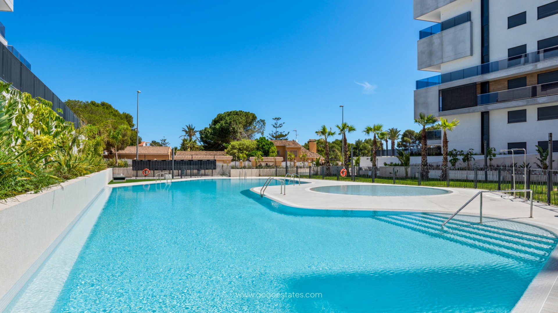 Instapklaar appartement met 3 slaapkamers en 2 badkamers in Residencial Seagardens Geniet van het spectaculaire terras van dit moderne nieuwbouwappartement in Campoamor (Orihuela Costa). Met 3 slaapkamers en 2 badkamers is dit huis de droom van iedereen die wil wonen in het mediterrane paradijs, in een privé urbanisatie vlakbij zee en met oog voor detail. De kamers zijn voorzien van inbouwkasten. Voor een hogere efficiëntie in de woning is een moderne installatie van warme en koude airconditioning voorzien via kanalen met aanvoer- en retourroosters in de woonkamer en slaapkamers. De temperatuurregeling vindt plaats via een thermostaat in de woonkamer. Het warmwatersysteem wordt gegenereerd door een innovatief aerothermisch systeem, dat het gebruik van fossiele energie minimaliseert en u aanzienlijke besparingen op uw energierekening oplevert. Het appartement beschikt over een parkeerplaats op verdieping -1 en een optionele berging voor € 15.000. Locatie Residencial Seagardens is gelegen in het hoogste deel van Campoamor, vlakbij het strand van La Glea en de jachthaven. Bewoners van Seagardens kunnen genieten van grote terrassen, uitzicht op zee en de natuur en prachtige siertuinen. Gemeenschappelijke ruimtes U kunt genieten van een verwarmd binnenzwembad, een sportveld voor buitenactiviteiten, een fitnessruimte, een kinderspeelplaats en een groot buitenzwembad met een kleiner zwembad voor kinderen. Omdat we weten dat u graag fietstochten in de omgeving maakt, hebben we een ruimte gereserveerd om uw fietsen te stallen. En om u op elk moment van de dag en in alle veiligheid en vrijheid producten te kunnen bezorgen en ontvangen, hebben we bij de hoofdingang van het complex ook elektronische lockers voor meerdere gebruikers geplaatst. Tot slot kunt u ook gebruikmaken van een gourmetruimte naast het zwembad en een ontspanningsruimte op het dak, ideaal om te genieten van zomeravonden en samen te komen met vrienden en familie.