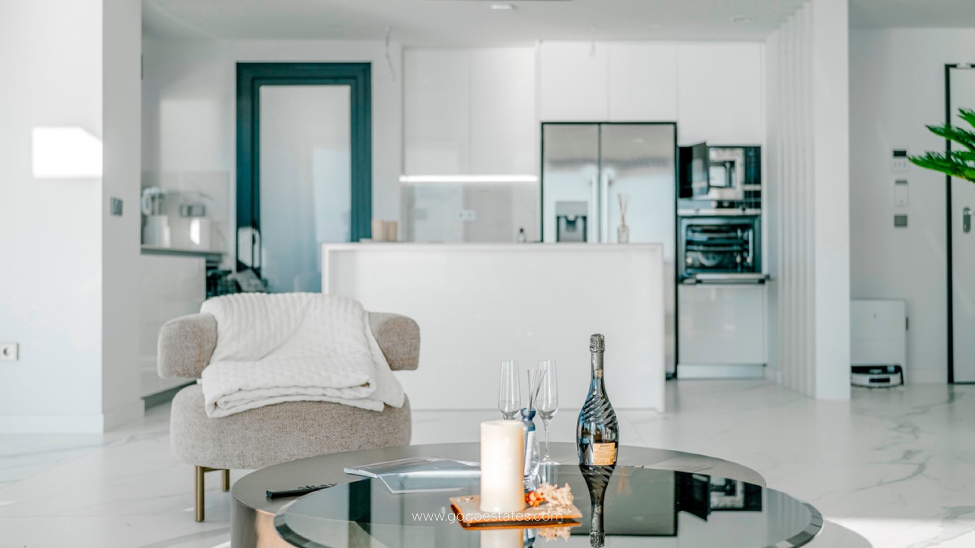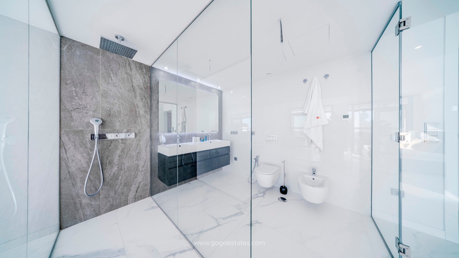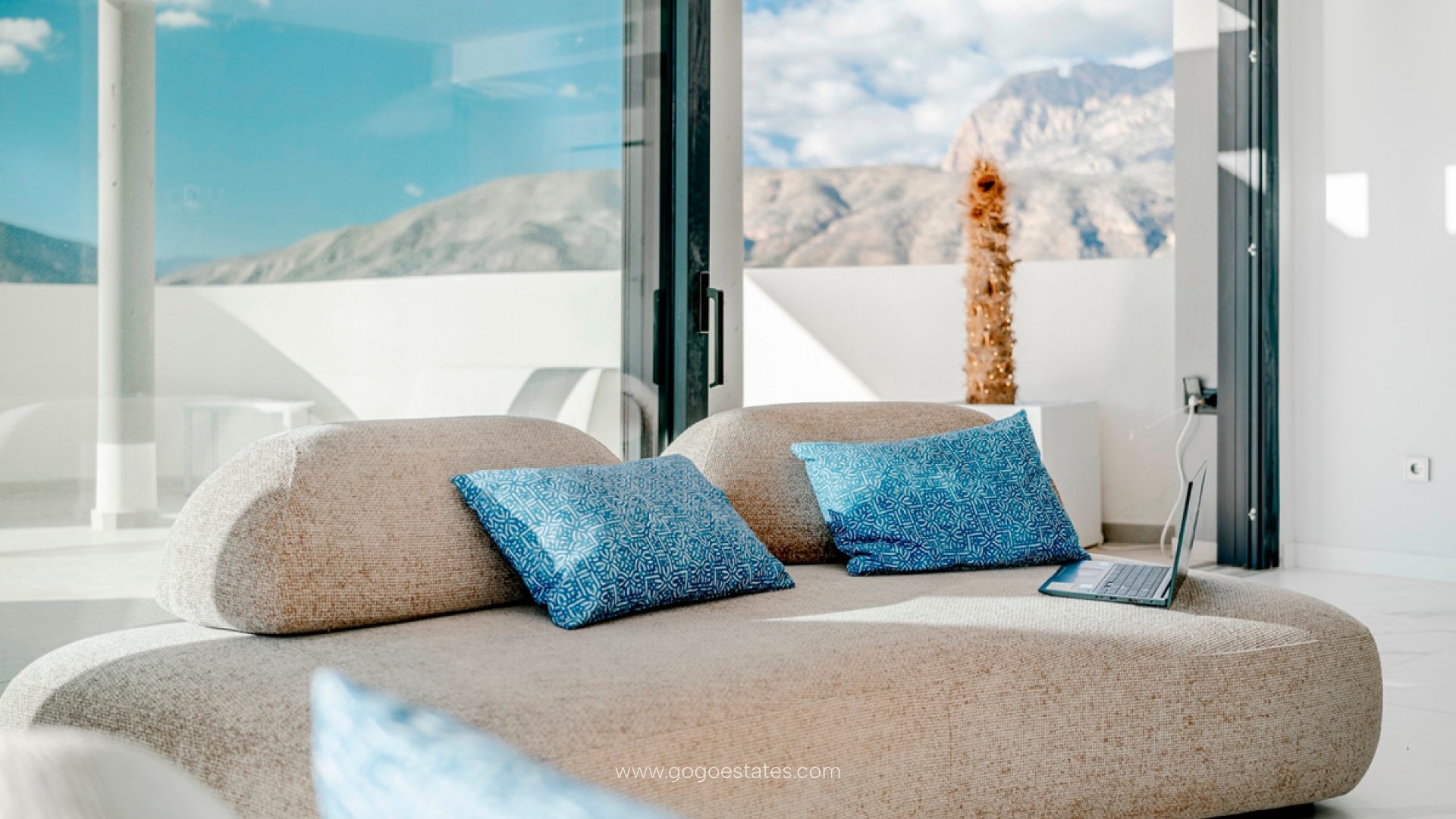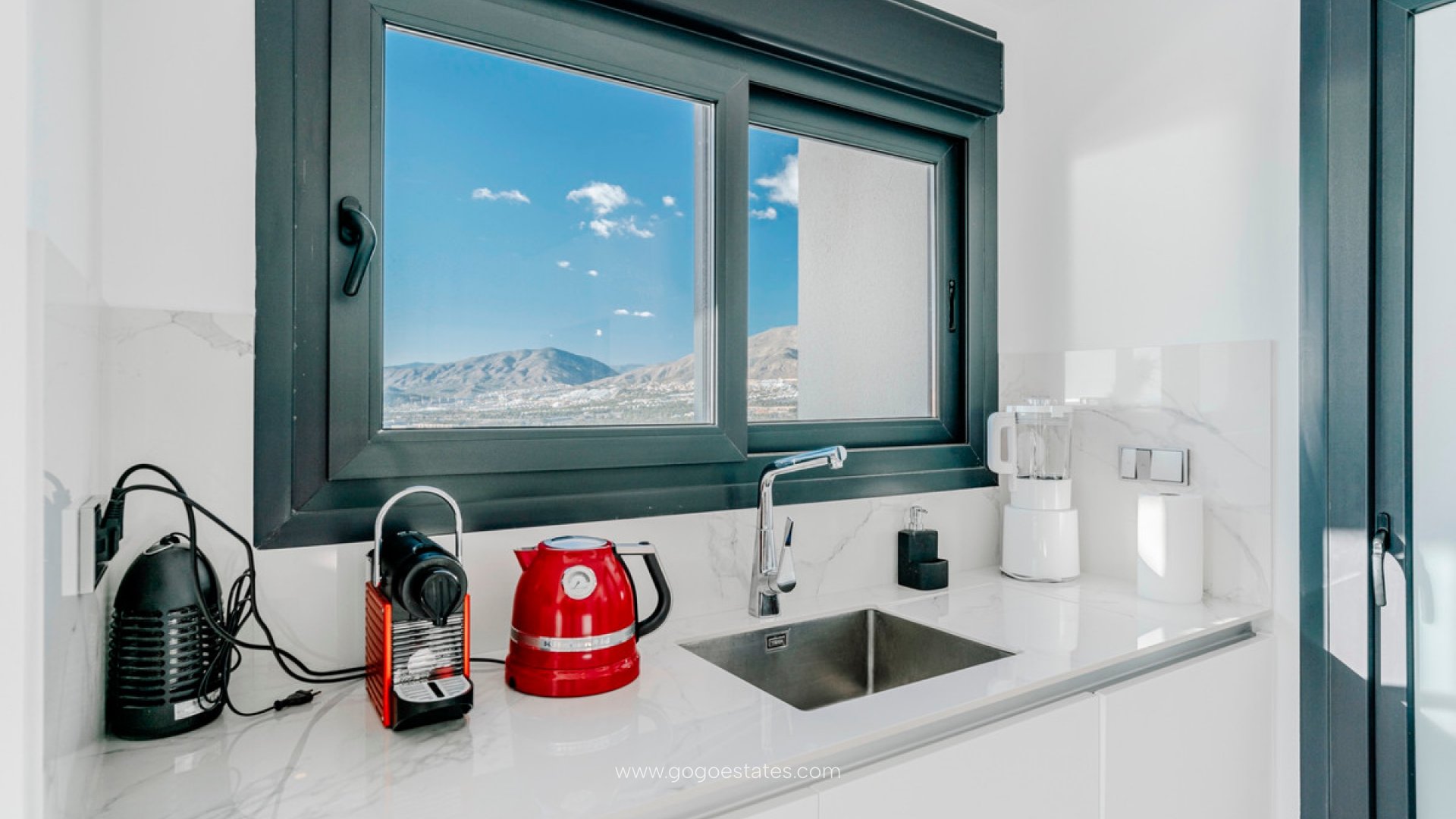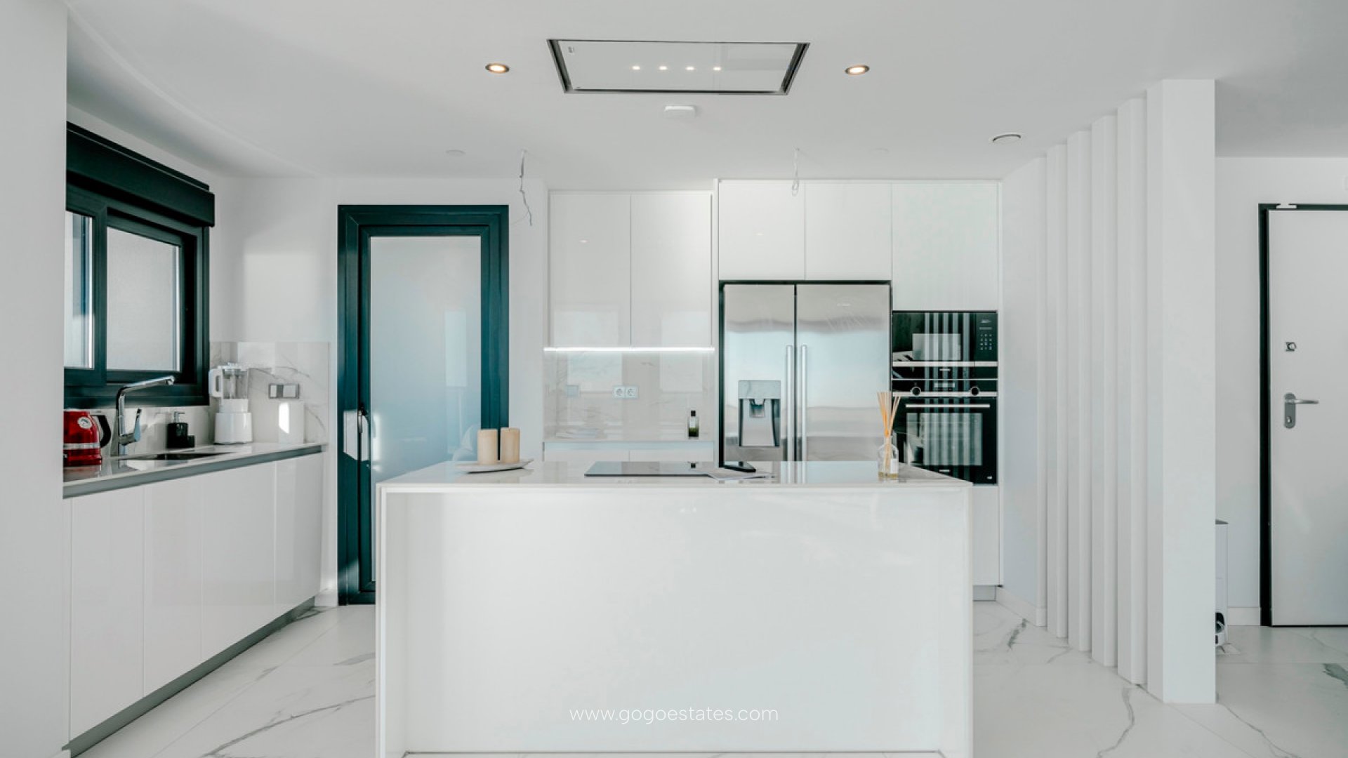 Gelegen in het prestigieuze Residential Sunset Cliffs, biedt dit prachtige appartement op de 29e verdieping een ongeëvenaarde kustlevensstijl met frontaal zeezicht op de Middellandse Zee en het Poniente-strand. Ontworpen voor zowel comfort als verfijning, combineert deze woning moeiteloos moderne elegantie met adembenemende omgevingen. De ruime woonkamer baadt in natuurlijk licht en beschikt over een open keuken met hoogwaardige Samsung smart-apparatuur en exclusieve Porcelanosa afwerkingen. Dankzij het naadloze ontwerp en de premium materialen is deze ruimte perfect voor zowel dagelijks gebruik als entertainment. De hoofdsuite is een privé toevluchtsoord met een inloopkast, een spa-achtige en-suite badkamer en een rustige sfeer. Een tweede slaapkamer biedt veelzijdigheid en kan eenvoudig worden omgevormd tot een derde slaapkamer indien gewenst. Geautomatiseerde klimaatbeheersing en luxe afwerkingen zorgen door het hele huis voor een uitzonderlijk comfortniveau. Een opvallend kenmerk van deze woning is het ruime privéterras, waar een privé jacuzzi uitnodigt om te ontspannen terwijl u geniet van het ononderbroken frontale zeezicht. Deze buitenruimte biedt de perfecte setting om te relaxen en te genieten van het prachtige kustlandschap. Als onderdeel van het exclusieve Sunset Cliffs residentiële complex hebben bewoners toegang tot verwarmde zwembaden, een panoramische fitnessruimte, sportvelden, een bioscoop en faciliteiten voor kinderen, wat een resort-achtige ervaring biedt. De ontwikkeling biedt ook directe toegang tot het strand en ligt op slechts enkele minuten van het historische centrum van Benidorm, wat luxe en gemak combineert. De woning beschikt over twee bergingen en ondergrondse parkeergelegenheid, wat praktische voordelen toevoegt aan de vele premium voorzieningen. Een zeldzame kans om luxe, comfort en spectaculaire zeezichten te ervaren op een van de meest gewilde locaties van Benidorm.