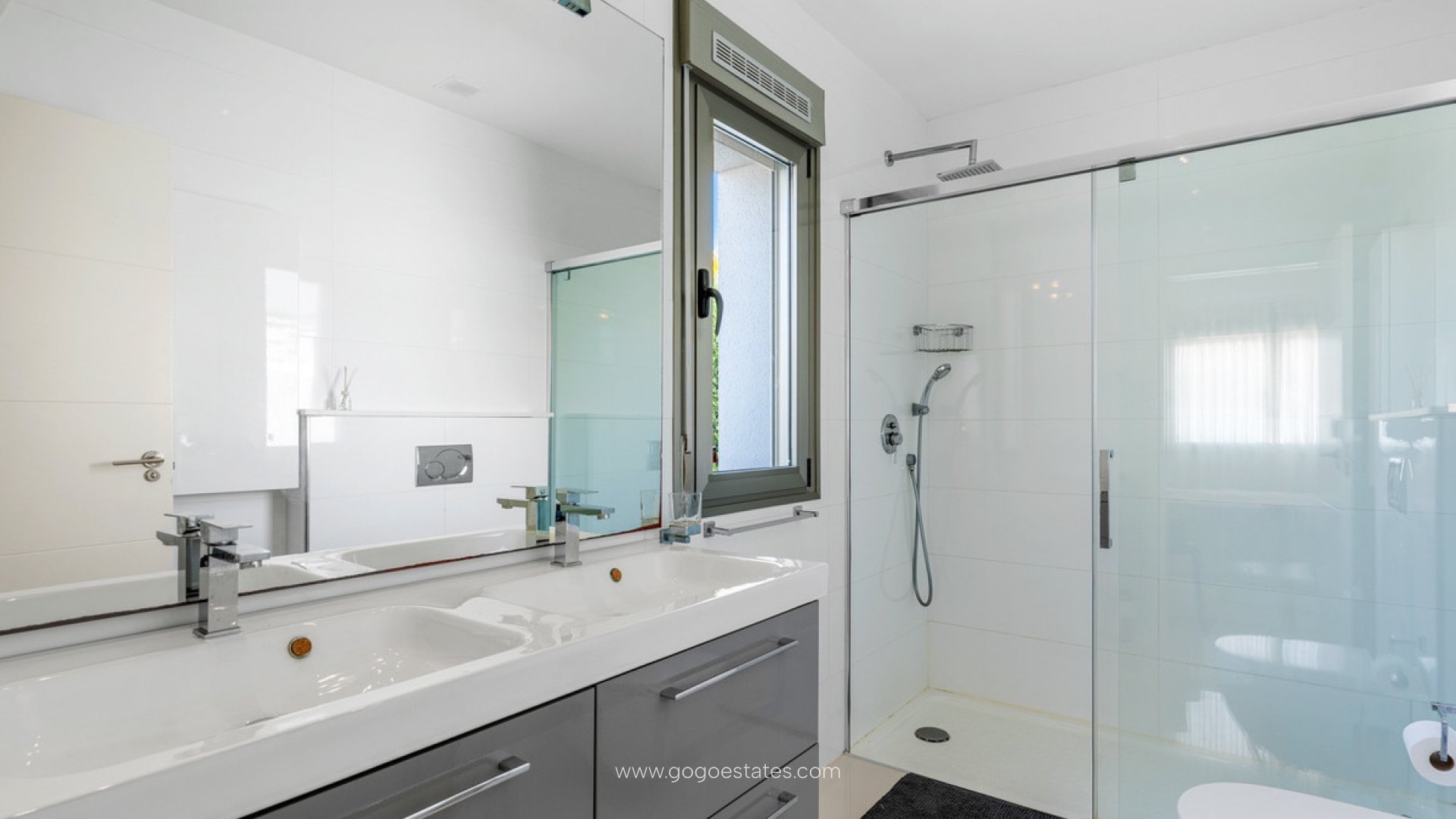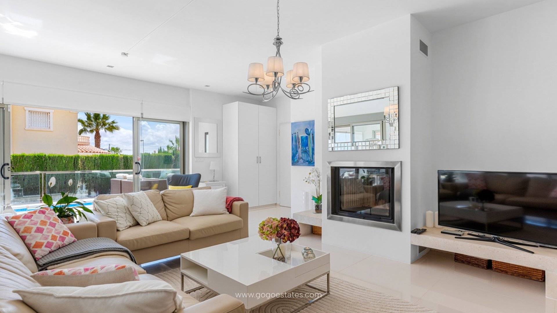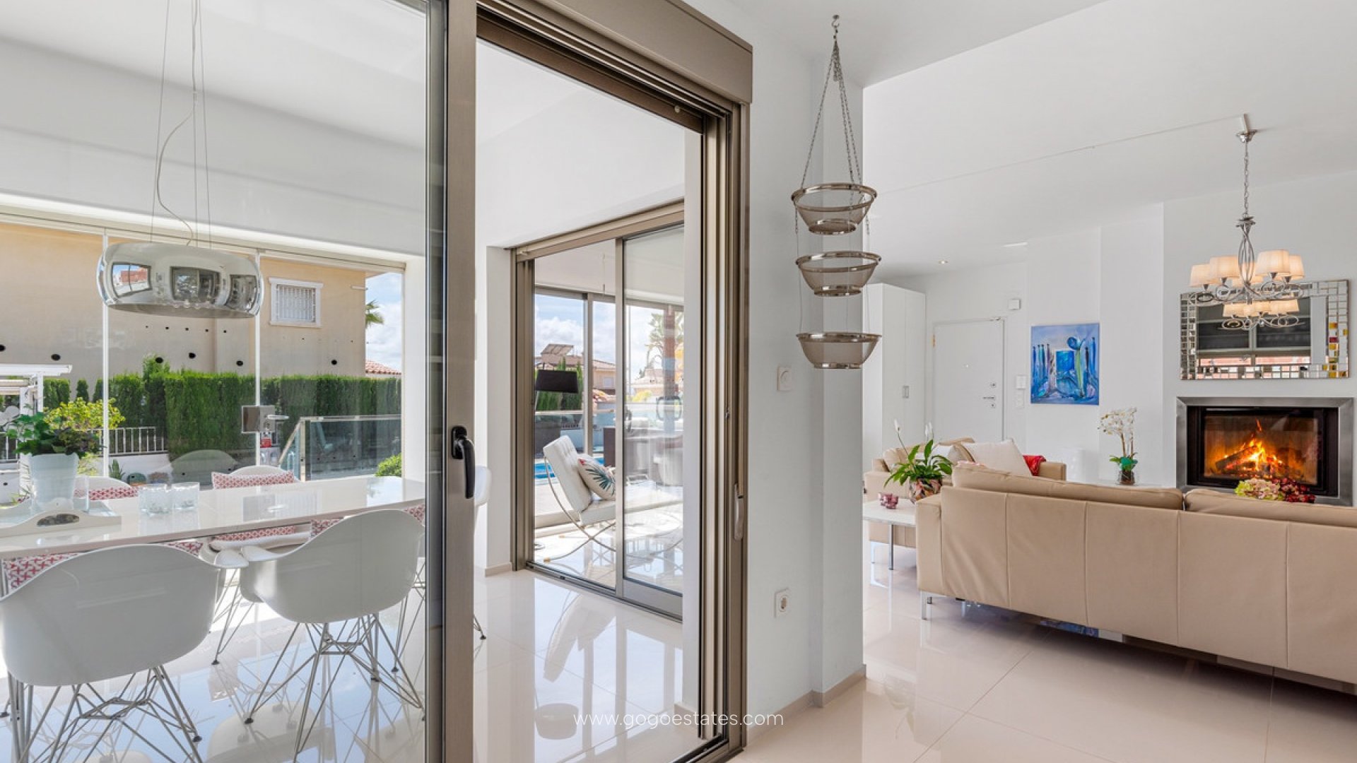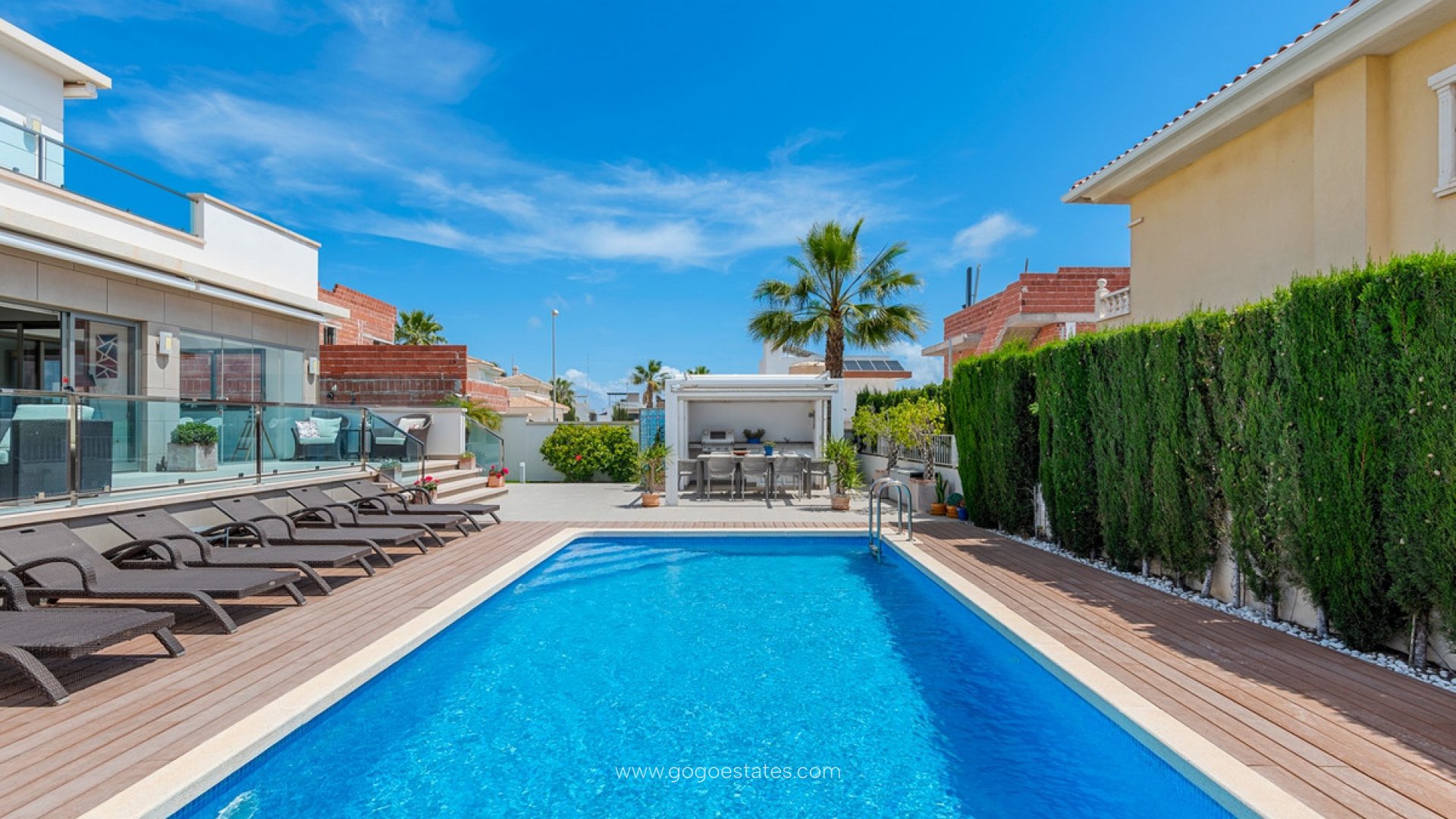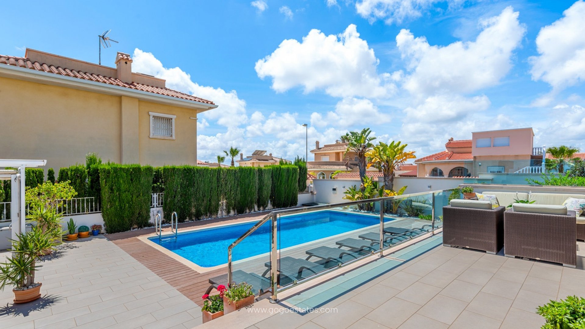 Moderne luxe villa met prachtig uitzicht in een rustige wijk van Ciudad Quesada.De villa is verdeeld over twee verdiepingen en heeft in totaal 4 slaapkamers, 3 badkamers en een gastentoilet. Op de begane grond bevinden zich twee slaapkamers, waarvan één met een en-suite badkamer. Daarnaast is er een lichte woonkamer, een open keuken, een overdekt terras dat als eetkamer wordt gebruikt en een gastentoilet/wasruimte. Op de eerste verdieping zijn er twee tweepersoonsslaapkamers, beide met en-suite badkamers. Vanaf beide slaapkamers is er direct toegang tot een groot terras. Het huis is voorzien van centrale airconditioning (warm/koud), een open haard in de woonkamer, dubbele beglazing, alarmsysteem en ingebouwde kasten in 3 van de slaapkamers. Het wordt gemeubileerd verkocht. BuitengebiedDe villa ligt op een perceel van 500 m² op het zuiden. Hier vindt u een prachtig zwembad met ruimte ernaast voor ligbedden. Aan het einde van het zwembad is er een buitenkeuken/barbecue met een overdekte eettafel. Er is ook een heerlijk terras aan het zwembad met toegang vanuit de woonkamer en eetkamer, waar een loungehoek is. Op het perceel is er parkeergelegenheid voor één auto (automatische poort) en een opslagruimte.Op de eerste verdieping is er een groot terras met mooi uitzicht over de omgeving en het zoutmeer van Torrevieja. OmgevingIn de buurt van de villa vindt u een tennisbaan en een skatepark. Golfbaan La Marquesa ligt op slechts 3 km afstand, een korte autorit. De dichtstbijzijnde supermarkt is slechts 1 km verderop, evenals diverse buurtrestaurants. Het centrum van Quesada, met meerdere restaurants, bars en winkels, ligt op ongeveer 2 km afstand. Met de auto bent u in ongeveer 12 minuten op het dichtstbijzijnde strand.