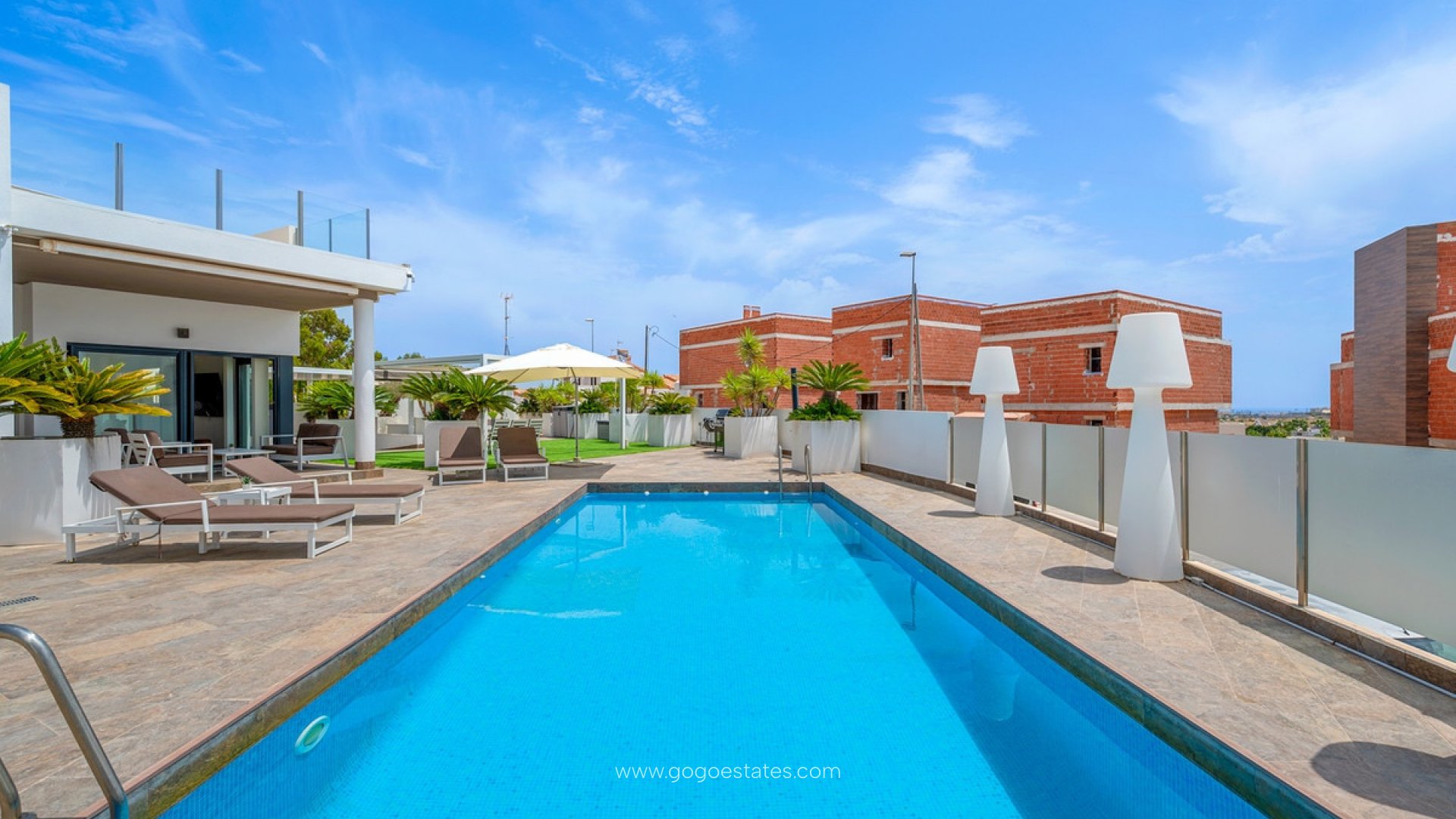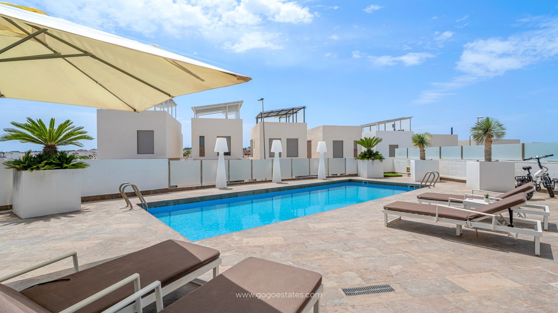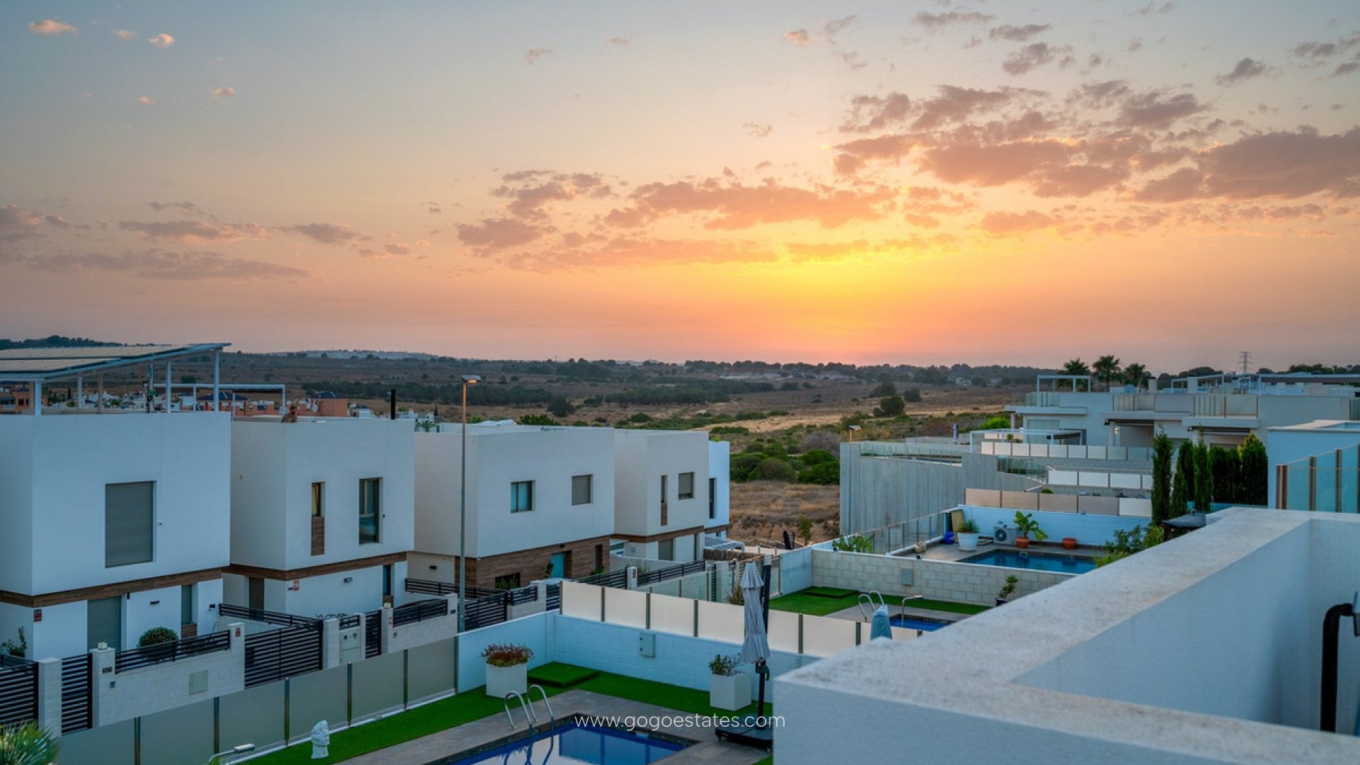Deze moderne vrijstaande villa uit 2018 bevindt zich in Villamartín, Orihuela Costa. Met een bebouwde oppervlakte van 113 m² op een ruim perceel van 464 m², biedt de woning een eigentijds ontwerp en een functionele indeling voor optimaal wooncomfort onder de mediterrane zon. Dankzij de zuidgerichte ligging geniet je de hele dag van natuurlijk licht. De villa beschikt over drie ruime slaapkamers met inbouwkasten en twee volledig uitgeruste badkamers, waarvan één en suite. De open keuken is naadloos verbonden met de eet- en woonkamer, die helder en uitnodigend is en directe toegang biedt tot het terras en het privézwembad. Daarnaast is er een aparte wasruimte aanwezig. Buiten vind je een privézwembad, onderhoudsvriendelijke tuin, een overdekt terras voor buitenmaaltijden, een pergola met kunstgras en een ruim dakterras. Er is ook parkeergelegenheid op het perceel, inclusief een overdekte carport. Extra's zijn onder meer centrale airconditioning, zonnepanelen, hoogwaardige materialen en een slimme indeling. Gelegen in een rustige woonwijk, dicht bij golfbanen, winkelcentra zoals Zenia Boulevard en de mooiste stranden van Orihuela Costa. Een uitstekende keuze als permanente woning of als investering in één van de populairste regio's van de Costa Blanca.
