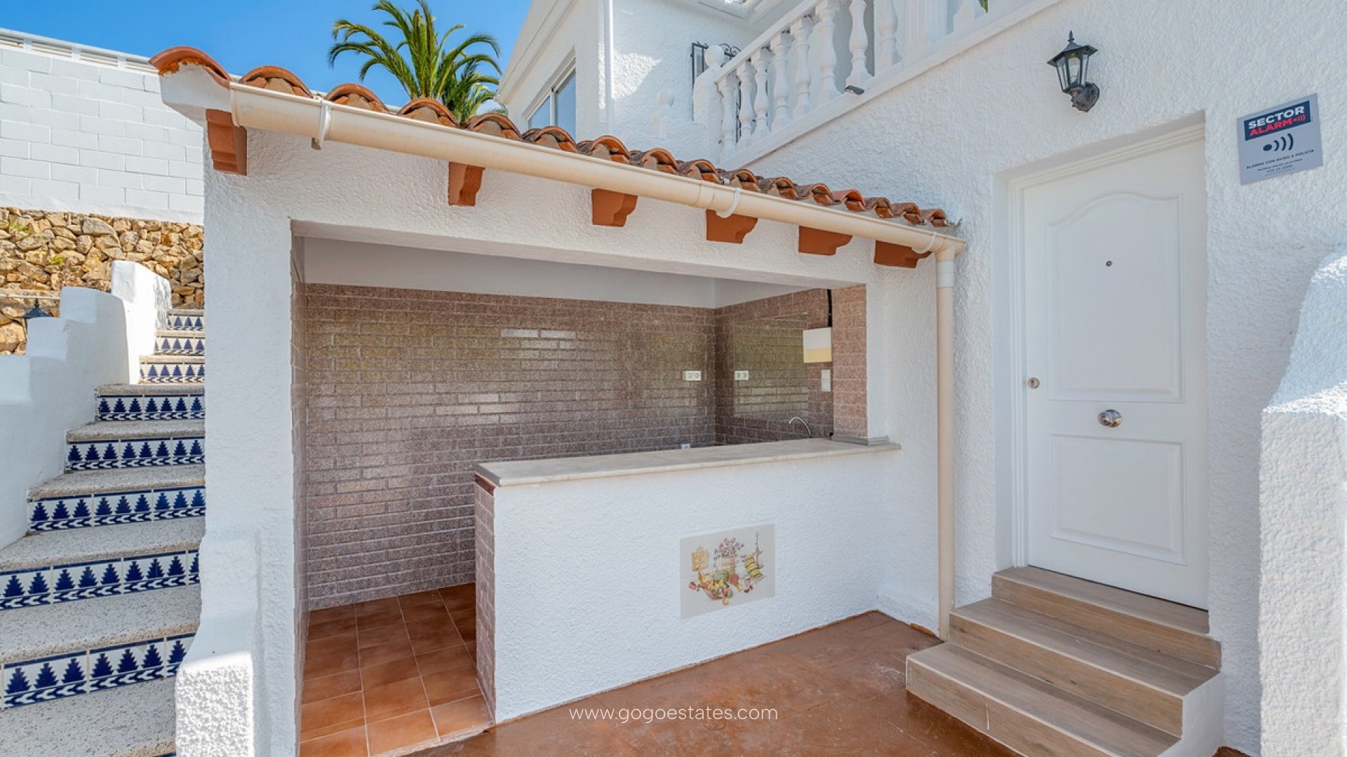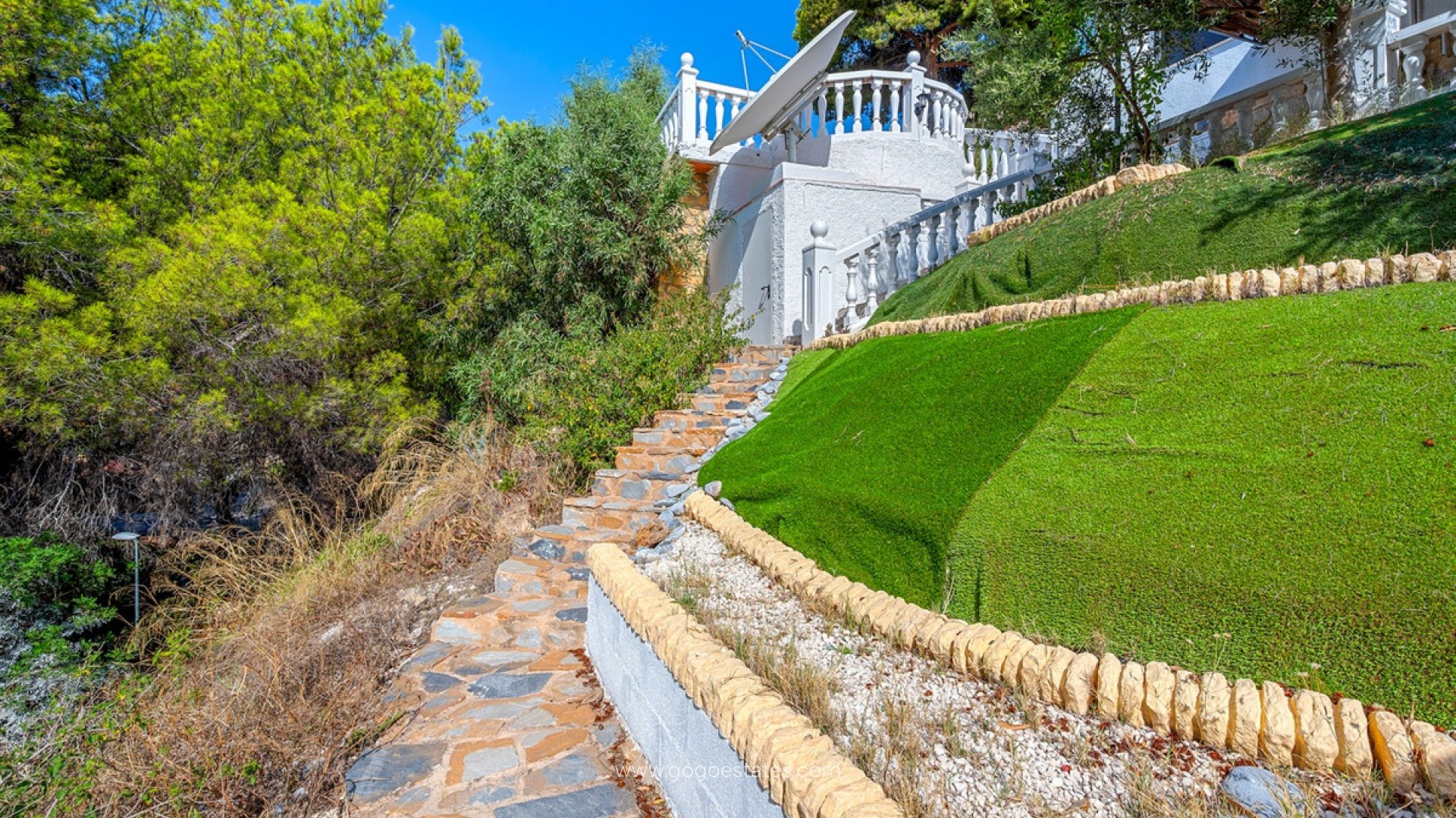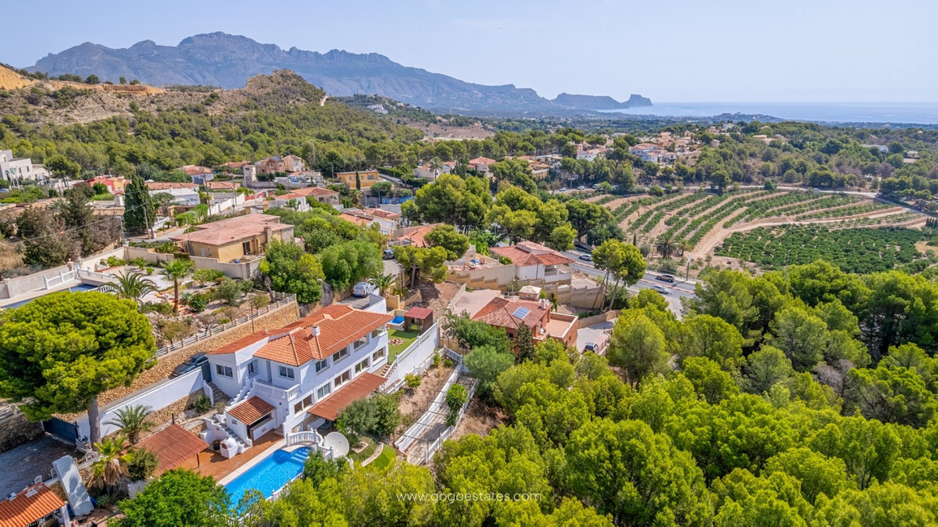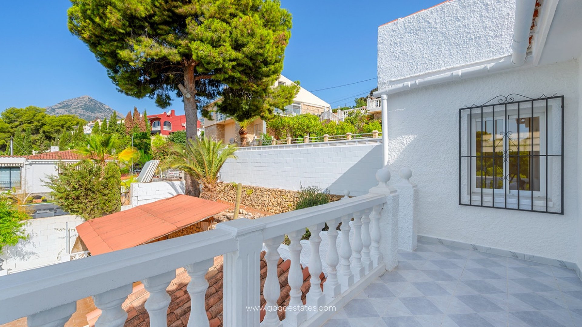 Deze fantastische, zonnige en lichte villa, volledig gerenoveerd in 2025, combineert comfort, ruimte en mediterrane stijl in een rustige maar goed verbonden omgeving, met prachtig vrij uitzicht op zee en de natuurlijke omgeving. Met 216 m² bebouwd op een perceel van 1.268 m² volgens het kadaster, biedt zij vijf ruime slaapkamers, twee volledige badkamers en een gastentoilet, evenals verschillende buitenruimtes die zijn ontworpen om het hele jaar door van het klimaat van de Costa Blanca te genieten. De hoofdverdieping op straatniveau beschikt over een grote en lichte woon-eetkamer met open haard en vrij uitzicht, een aparte volledig uitgeruste keuken, een terras met directe toegang tot de BBQ- en zwembadzone, een tweepersoonsslaapkamer en een gastentoilet. Er is ook een ruime hal die als kantoor kan worden gebruikt, een afgesloten garage voor één voertuig en een berging/wasruimte. Op de benedenverdieping bevinden zich vier tweepersoonsslaapkamers, waarvan er twee directe toegang hebben tot de tuin, twee volledige badkamers en een grote chill-out zone die perfect is om te ontspannen. Vanaf dit niveau is er directe toegang tot het privézwembad van 36 m², omgeven door een zonneterras en aangevuld met een overdekte bar met stroom- en watervoorziening, een barbecue en een traditionele pizzaoven, evenals een houten veranda en een helling die door de tuin loopt. De woning valt op door zijn zonnige oriëntatie, moderne afwerking na een volledige renovatie en een ontwerp dat is gericht op een comfortabele binnen-buiten levensstijl.