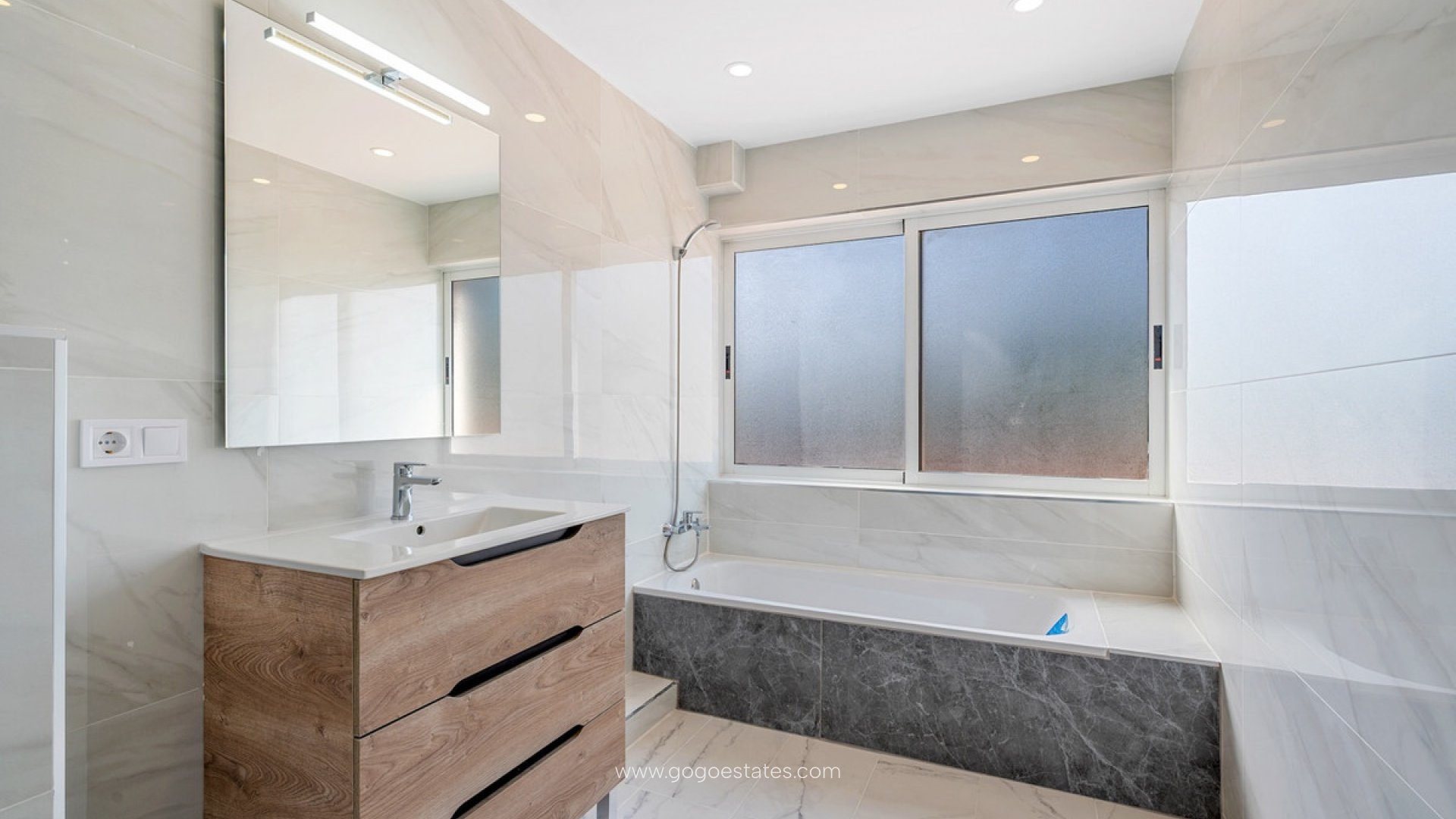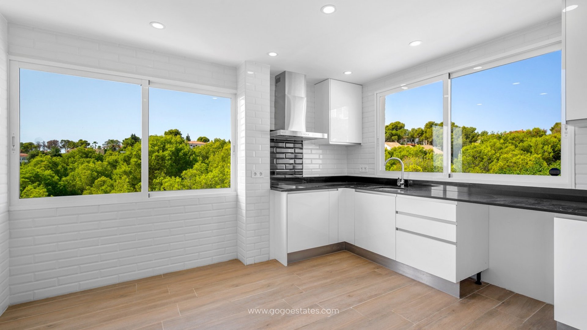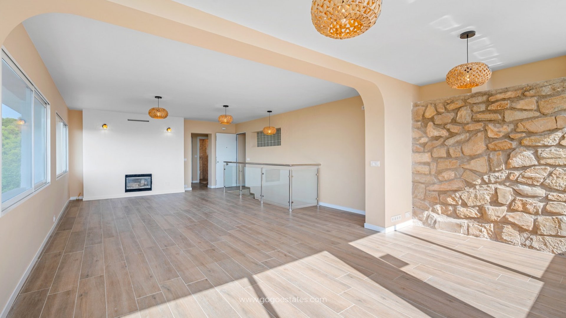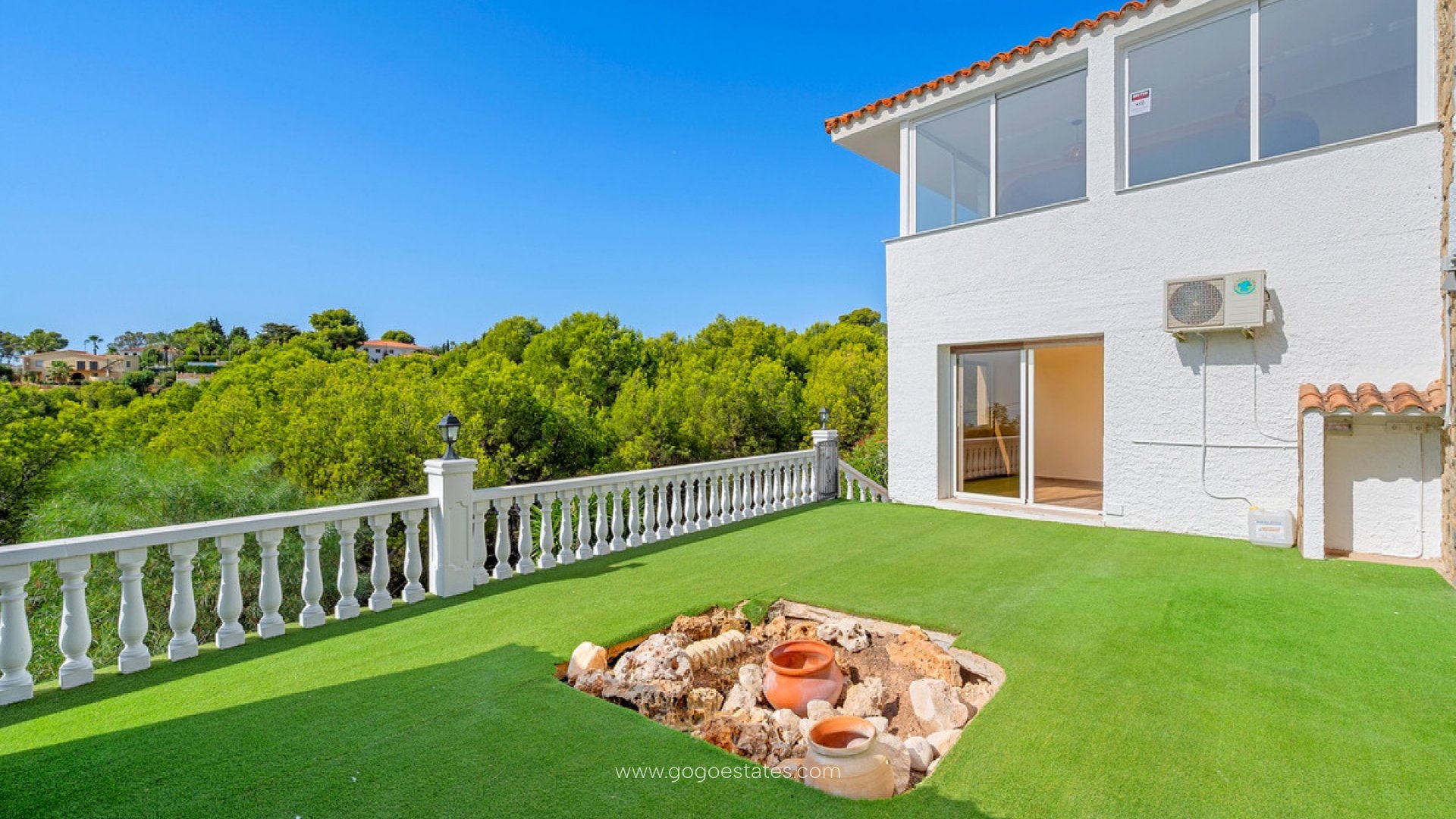 Deze fantastische, zonnige en lichte villa, volledig gerenoveerd in 2025, combineert comfort, ruimte en mediterrane stijl in een rustige maar goed verbonden omgeving, met prachtig vrij uitzicht op zee en de natuurlijke omgeving. Met 216 m² bebouwd op een perceel van 1.268 m² volgens het kadaster, biedt zij vijf ruime slaapkamers, twee volledige badkamers en een gastentoilet, evenals verschillende buitenruimtes die zijn ontworpen om het hele jaar door van het klimaat van de Costa Blanca te genieten. De hoofdverdieping op straatniveau beschikt over een grote en lichte woon-eetkamer met open haard en vrij uitzicht, een aparte volledig uitgeruste keuken, een terras met directe toegang tot de BBQ- en zwembadzone, een tweepersoonsslaapkamer en een gastentoilet. Er is ook een ruime hal die als kantoor kan worden gebruikt, een afgesloten garage voor één voertuig en een berging/wasruimte. Op de benedenverdieping bevinden zich vier tweepersoonsslaapkamers, waarvan er twee directe toegang hebben tot de tuin, twee volledige badkamers en een grote chill-out zone die perfect is om te ontspannen. Vanaf dit niveau is er directe toegang tot het privézwembad van 36 m², omgeven door een zonneterras en aangevuld met een overdekte bar met stroom- en watervoorziening, een barbecue en een traditionele pizzaoven, evenals een houten veranda en een helling die door de tuin loopt. De woning valt op door zijn zonnige oriëntatie, moderne afwerking na een volledige renovatie en een ontwerp dat is gericht op een comfortabele binnen-buiten levensstijl.