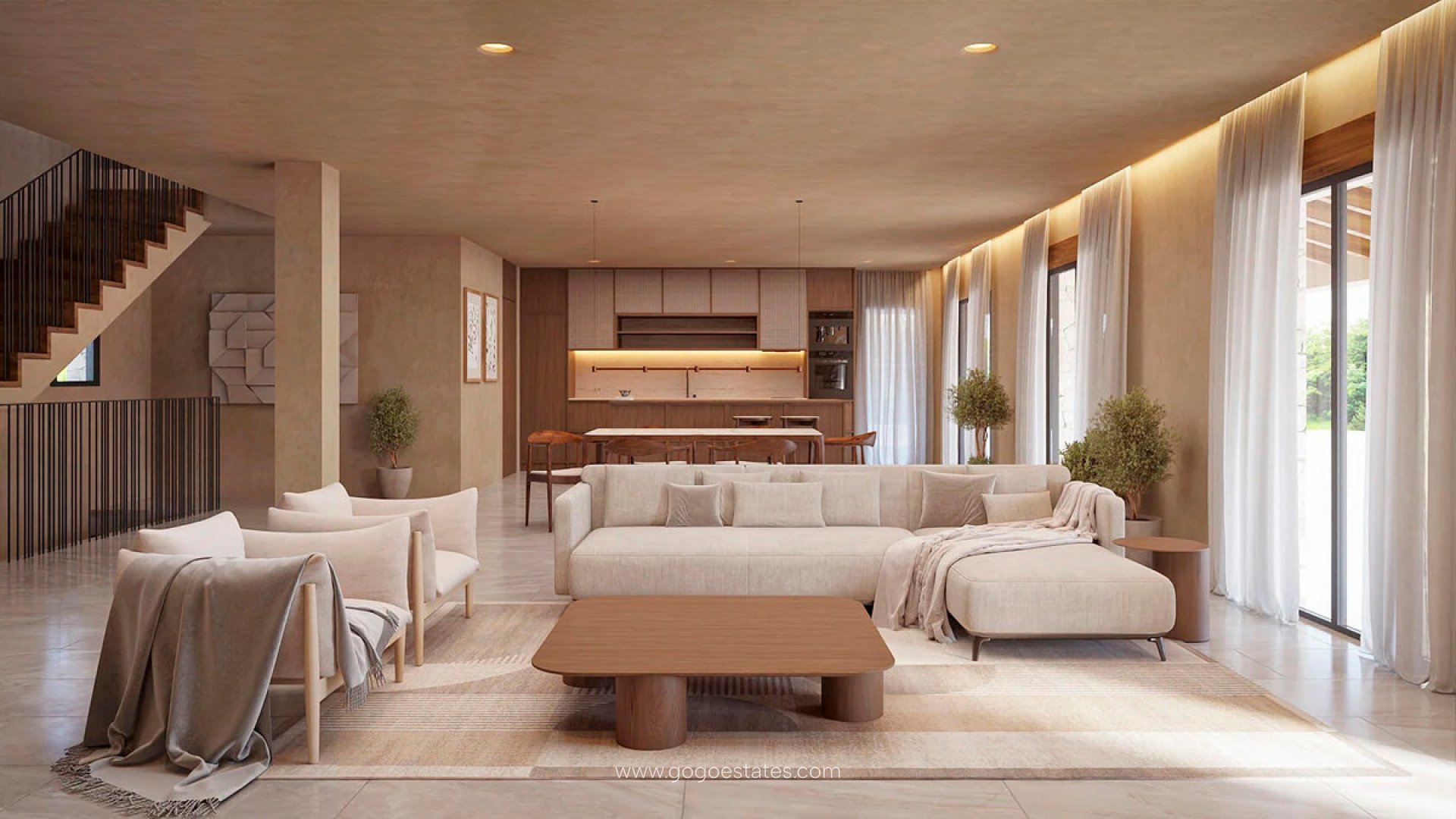 p style="text-align:justify">Deze villa in mediterrane stijl heeft 3 verdiepingen die verbonden zijn met een interne trap. Het heeft een ruime open woon-eetkamer-keuken. De keuken is volledig uitgerust en heeft een kookeiland. Het heeft 4 badkamers en een gastentoilet. De woning heeft ook een kelder en wasruimte.