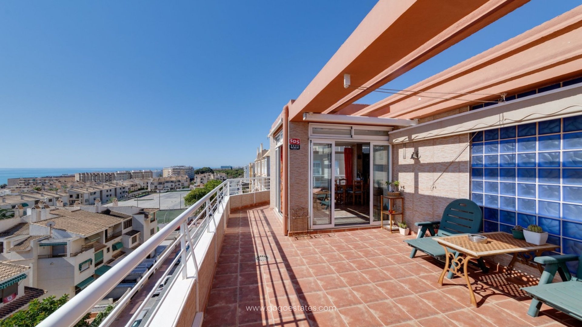 Spectaculair Duplex Penthouse met Zeezicht in Guardamar del Segura (Alicante)Dit indrukwekkende duplex penthouse met 3 slaapkamers, gelegen in het gewilde Guardamar del Segura, is het perfecte huis om het mediterrane leven het hele jaar door te genieten of als een veilige vastgoedbelegging. Gelegen op slechts enkele stappen van het fantastische gouden zandstrand en omringd door alle benodigde voorzieningen, biedt dit appartement de perfecte combinatie van comfort, stijl en locatie.Wat dit penthouse uniek maakt: Panoramisch zeezicht: Geniet van adembenemend zeezicht vanuit elk raam, aangezien het appartement volledig op het zuidoosten is gericht, wat de hele dag door natuurlijk licht garandeert. Grote terras van 51 m²: Een van de juwelen van deze woning is het ruime terras, gemeubileerd met ligbedden om van de zon te genieten en onvergetelijke momenten in de buitenlucht te creëren. Modern en licht design: Met grote ramen die veel licht binnenlaten en voor een gevoel van ruimte zorgen, onderscheidt dit huis zich door zijn elegante, eigentijdse ontwerp. Kenmerken en opvallende eigenschappen: 3 slaapkamers en 2 badkamers: Ruim en goed verdeeld voor comfort en privacy. Volledig uitgeruste keuken: Met hoogwaardige apparatuur, een wasruimte en een voedselheft die direct naar het terras leidt. Hoogwaardige klimaatbeheersing: Airconditioning in elke slaapkamer en radiatorverwarming voor elk seizoen. Toegang tot alle voorzieningen: Slechts 200 meter van het strand en 100 meter van een Mercadona-supermarkt, alles wat je nodig hebt is binnen handbereik. Privéparkeerplaats: Inclusief een ruime afgesloten parkeerplaats, die ook als opslagruimte kan worden gebruikt. (Wordt apart verkocht). Prijs: 390.000 €Extra kenmerken: 142 m² bebouwd (4e en 5e verdieping) Lift en berging Houthaard Aardgas Ingebouwde kasten Privéterras van 51 m² Mis de kans niet om te wonen nabij de zee in een van de meest gewilde gebieden aan de Costa Blanca! Dit duplex penthouse is de perfecte plek om van de zon, de zee en een luxueuze levensstijl te genieten in een ongeëvenaard omgeving.