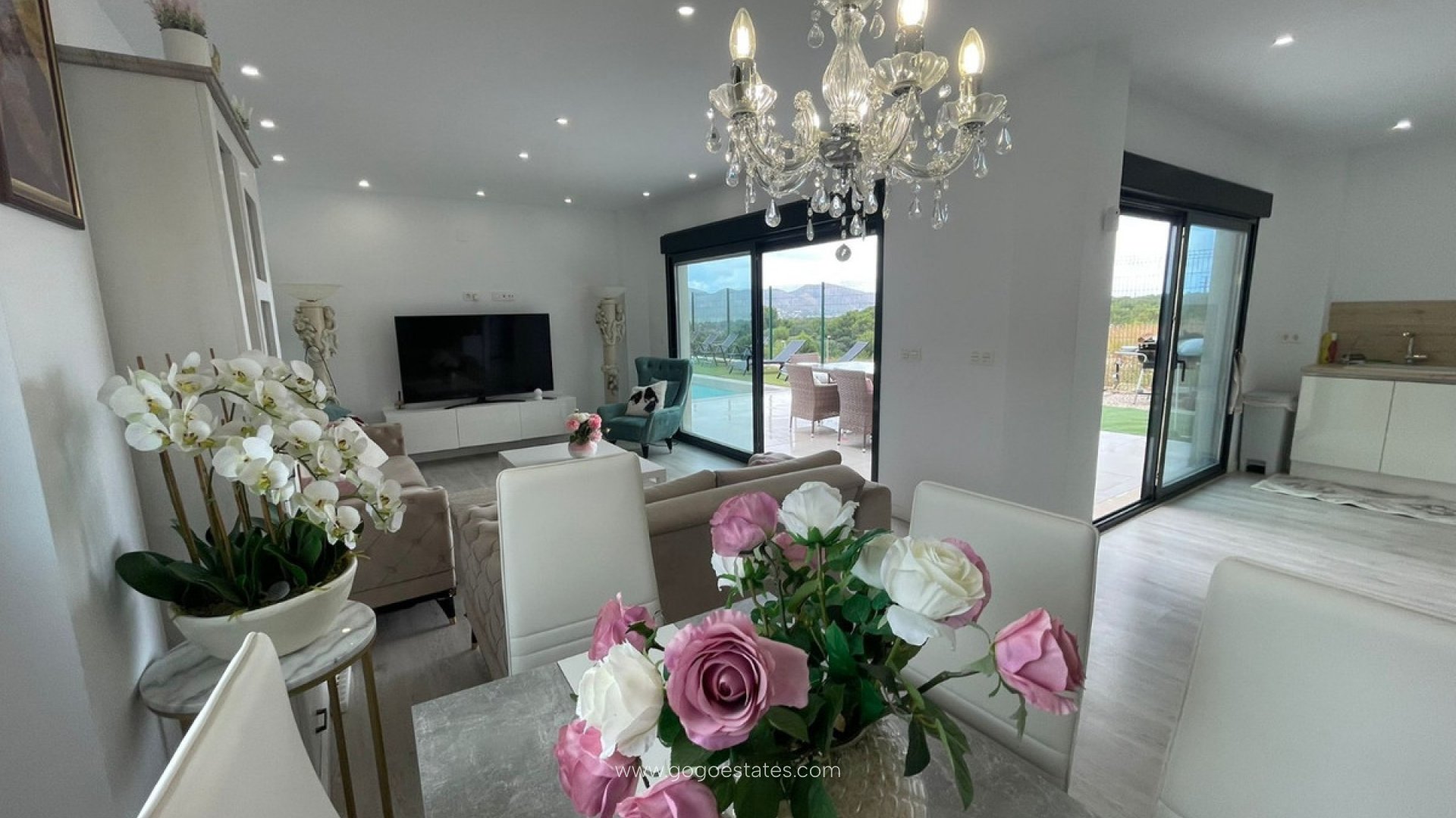 Ontdek deze prachtige moderne villa in een rustige woonwijk van Alfaz del Pi. Met 3 lichte slaapkamers, 3 stijlvolle badkamers, een gezellige woonkamer met open haard en een volledig uitgeruste keuken met uitzicht op de buitenlucht. Geniet van het ruime terras met relaxzone, het privézwembad en de tuin met open uitzicht op de bergen. Deze woning, gebouwd in 2020 en in uitstekende staat, combineert comfort, elegantie en ideaal wonen voor een gezin, op slechts enkele minuten van Altea, Benidorm en de lokale stranden.