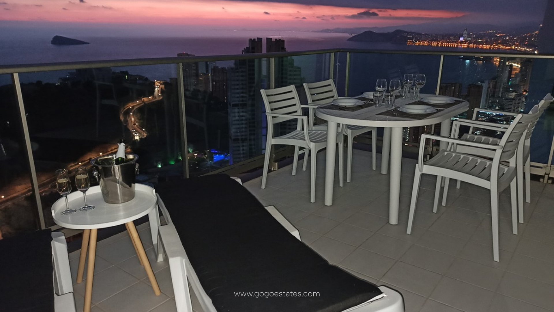 Op de 29e verdieping van Torre Lugano ligt dit appartement met een prachtig panoramisch uitzicht over heel Benidorm, de bergen en de zee. Het Torre Lugano-gebouw is het 2e hoogste gebouw in Benidorm met in totaal 42 verdiepingen en een hoogte van 158 m. Het appartement met een bebouwde oppervlakte van 89m² heeft 2 slaapkamers, 2 badkamers, een woonkamer en een groot terras, waar u kunt genieten van de zon en het uitzicht. Het appartement is georiënteerd op het zuiden. Deze is zeer goed onderhouden en heeft vanaf 2024 een nieuwe Daikin airco met WIFI. Er zijn ook 2 privé garageplaatsen in het gebouw. Het appartement heeft een toeristenvergunning en wordt bijna altijd verhuurd aan toeristen. Het heeft een eigen website. De winstgevendheid is heel erg hoog met aantoonbare opbrengsten in 2022 van €26600, in 2023 van €29500 en in 2024 van €30700!! Website, meubels, accessoires, klantenbestand, ... Alles inclusief! Torre Lugano in Benidorm heeft 2 grote buitenzwembaden, nog een zwembad voor kinderen, een fitnessruimte, een grote tuin met speeltuin, tennisbaan, paddle tennisbaan en je kunt er ook voetballen en basketballen. Torre Lugano heeft een portier en videobewaking.