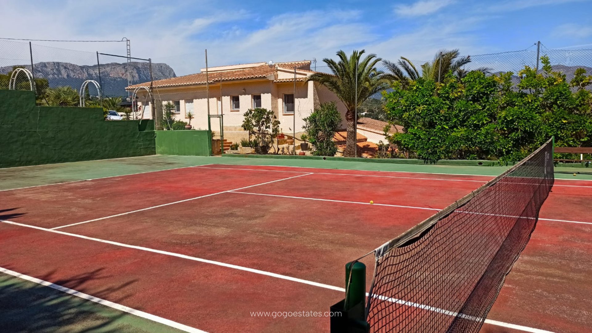 Cometa III Calpe - Villa met groot perceel en tennisbaan te koop. Bij Cometa III in Calpe presenteren we deze prachtige villa op een perceel van 5934 m², met tennisbaan, zwembad en een prachtige tuin. De villa is verdeeld in een hoofdhuis en een gastenverblijf. Zowel het hoofd- als het gastenverblijf hebben een woonkamer met keuken. Het hoofdhuis heeft 3 slaapkamers en 3 badkamers. Het gastenverblijf heeft 2 slaapkamers en 2 badkamers. Daarnaast beschikt het hoofdhuis over een mooie tuinkamer en een overdekt terras, met uitzicht op La Olta, Colina del Sol en Empedrola. De villa, tennisbaan en enorme tuinen zijn in uitstekende staat. De villa heeft ook een garage voor 1 auto en een carport voor 2 auto's. Indien nodig is er voldoende ruimte om een tiental voertuigen in deze woning te parkeren.