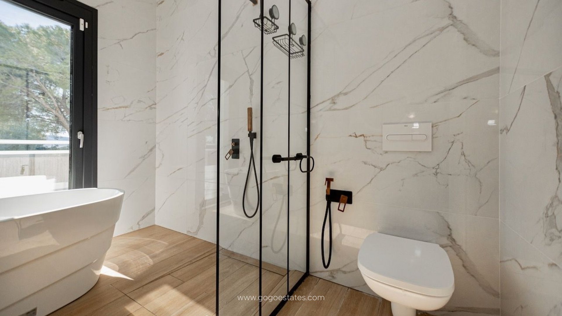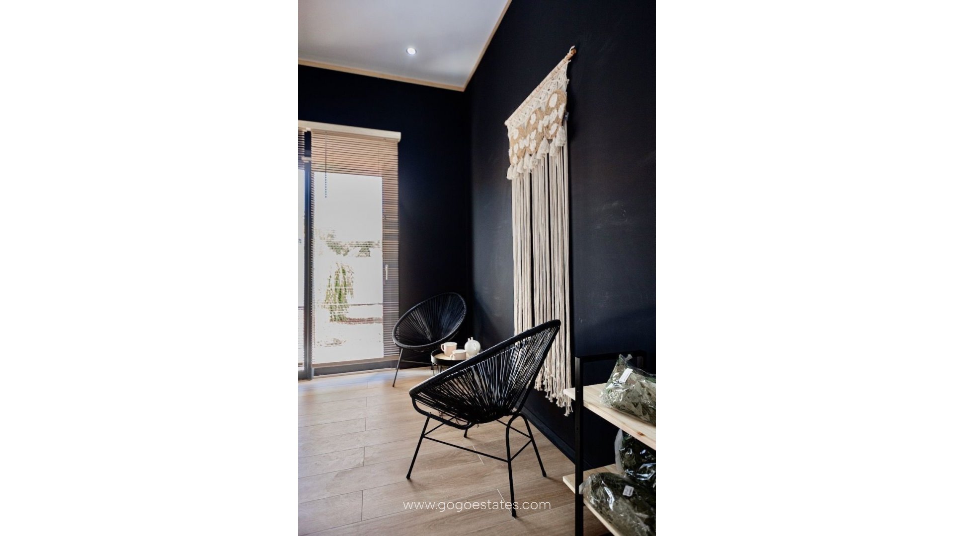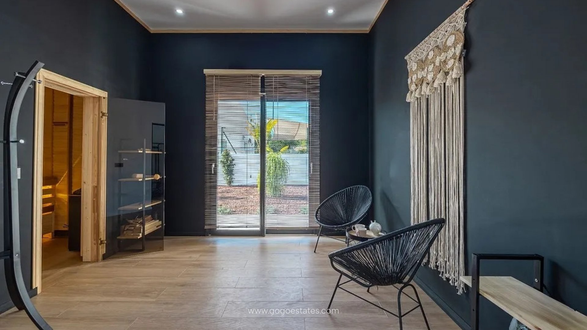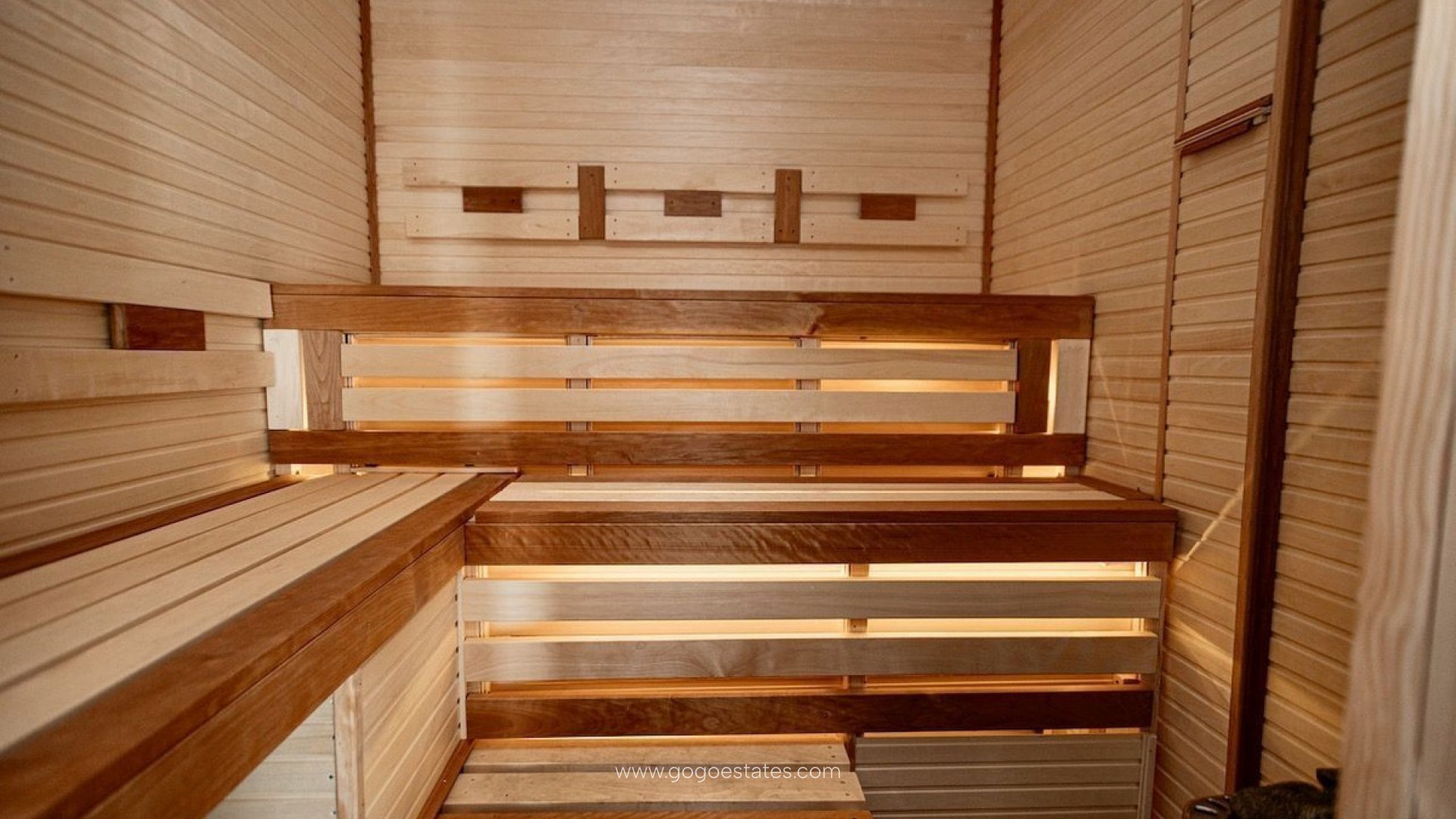 Bijna nieuwe villa te koop, jaar 2021, volledig afgewerkt, gelegen aan de voet van de Sierra Bernia, naast een natuurreservaat, in het rustige dorpje Santa Clara, met prachtig uitzicht op de bergen en de zee. Het huis is op maat ontworpen met slechts één verdieping, volledig beveiligd: geen trappen of treden en biedt de eigenaren een woonoppervlakte van bijna 200 vierkante meter. Daarnaast is er een parkeerplaats voor 2 auto's met automatische poort en een zwembad van 27 vierkante meter met zoutfilter en pre-installatie voor warm water. De unieke locatie wordt gekenmerkt door de afwezigheid van massale urbanisaties en de volledige integratie in de natuurlijke omgeving zorgt voor een sfeer van rust en kalmte. Toch ligt het op een strategische locatie die toegang biedt tot de prestigieuze golfbaan Don Cayo en het strand van Villa Gadea, tot toeristische gebieden zoals Benidorm en Calpe, en tot de stedelijke infrastructuur van Altea La Vella. Het perceel ligt in een doodlopende straat, wat privacy en rust biedt, met buren uit België, Nederland, Duitsland die er het hele jaar door wonen. De villa is gebouwd in 2021 en de tuin en het zwembad waren klaar in 2023. Binnen vind je 4 slaapkamers, waarvan een met en-suite badkamer met bad en douche en een ruime kleedkamer. De tweede slaapkamer heeft een doucheruimte en een sauna met Harvia Finse houtkachel. Er is ook een grote woonkamer met 3,3 meter hoge plafonds (net als in alle slaapkamers van het huis), een Langusta houtkachel van Franse makelij met elektronische bediening. Het huis wordt omringd door een prachtige tuin met olijfbomen, waarvan er een meer dan duizend jaar oud is (meegebracht uit Portugal), natuurlijk gazon en is uitgerust met automatische irrigatie. De villa heeft energie-efficiëntie categorie 'A', centrale airconditioning voor verwarming en koeling, PVC ramen van hoge kwaliteit en uitstekende geluidsisolatie. Neem contact met ons op voor een bezichtiging van deze prachtige woning en ervaar de unieke combinatie van hedendaagse elegantie en comfort.