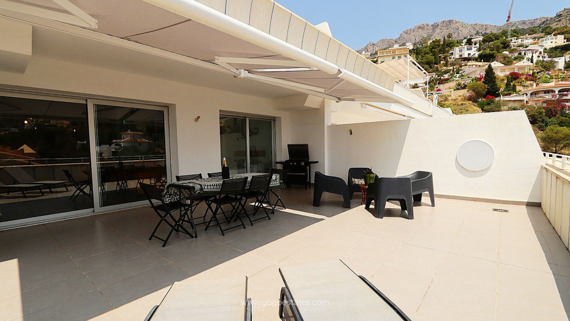 Exclusief appartement te koop in Sol Marina, een van de meest prestigieuze residenties in Altea, gelegen in het gewilde en rustige gebied van de Sierra de Altea. Omgeven door natuur, bergen, en met indrukwekkend uitzicht op de Middellandse Zee, biedt dit huis de perfecte balans tussen comfort, privacy en mediterrane levensstijl. Voorbehouden Locatie:Slechts 7 km van het centrum van AlteaMet snelle verbinding naar de AP-7 snelwegHoogwaardige woonwijk, met permanente buren het hele jaar doorKenmerken van het appartement:148 m² gebouwd functioneel en elegant verdeeld, waarvan 103 m² appartement en 45 m² terrasGezellige entreeRuime woonkamer-eetkamer met directe toegang tot een zonnig terras met uitzicht op zee en bergenModerne keuken uitgerust2 tweepersoon slaapkamers met ingebouwde kasten2 complete badkamers, een met douche en een met badPrivate terras met zonneschermenAutomatische rolluiken voor meer comfort en efficiëntie1 grote berging inbegrepen1 privé parkeerplaats binnen het gebouwGemeenschappelijke Ruimtes:Gemeenschappelijk zwembad met vrij uitzichtGoed onderhouden tuinen en ontspanningsruimtesDeze eigenschap is ideaal als zowel vaste woning als voor het genieten van een tweede woning in een van de meest exclusieve gebieden van de Costa Blanca. Een unieke kans om dicht bij de zee te wonen, met alle voorzieningen en een ongeëvenaard milieu. Neem contact met ons op voor meer informatie of om een bezichtiging te plannen.