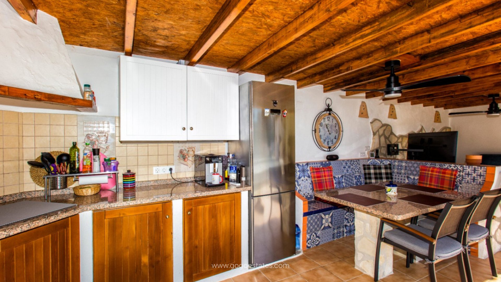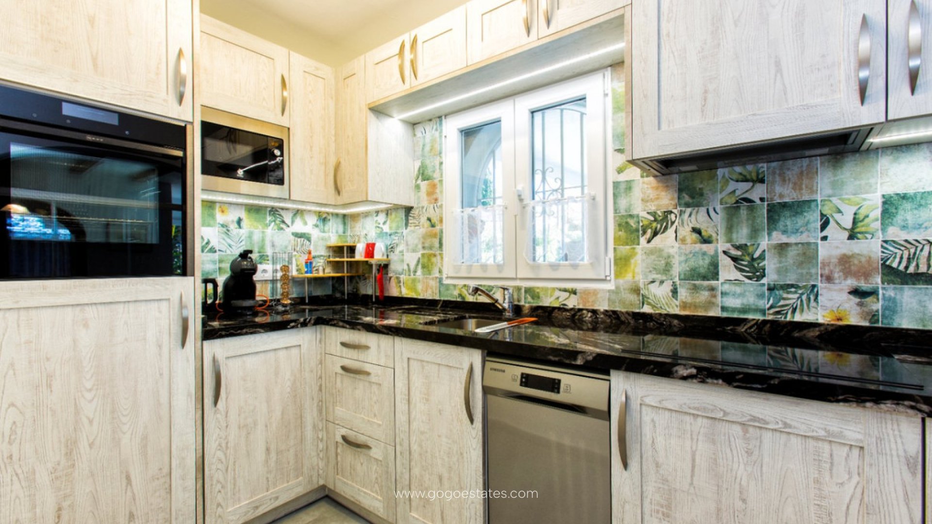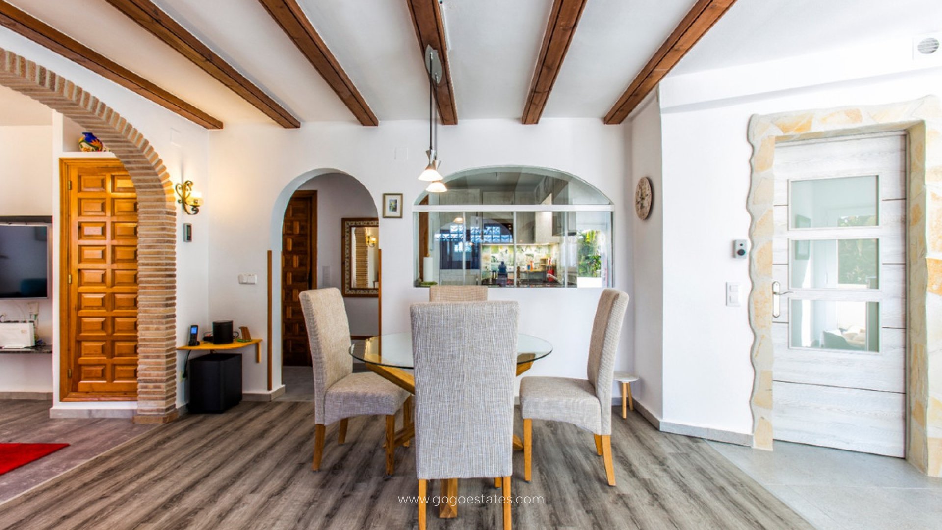 Ruime villa te koop in La Viña, Benissa – Comfort en privacy onder de zon In de rustige wijk La Viña in Benissa staat deze goed onderhouden villa op een vlak perceel met ideale zuidligging. Hier geniet u het hele jaar door van zon, privacy en comfort. De woning is verdeeld over twee verdiepingen en biedt volop ruimte voor zowel permanent verblijf als vakantieverhuur. Op de bovenverdieping bevindt zich de woon-eetkamer, een aparte volledig ingerichte keuken en een met glasgordijnen afgesloten porche. Deze porche biedt uitzicht over de groene omgeving en sluit aan op een open terras. Een perfecte plek om zowel in de winter als de zomer te vertoeven. Verder zijn er op deze verdieping een grote slaapkamer met en-suite badkamer, een tweede en-suite slaapkamer (nu in gebruik als kantoor) en een aparte badkamer. Voor een aangenaam binnenklimaat zorgen airconditioning (warm/koud), pelletkachels op beide verdiepingen, dubbel glas en elektrische rolluiken. Via een interne trap bereikt u de benedenverdieping. Hier zijn nog drie slaapkamers, waarvan er twee momenteel dienst doen als bergruimte en kantoor/fitnessruimte. Daarnaast is er een volledig uitgeruste badkamer, een apart toilet, een wasruimte en extra opslag. Buiten is er volop ruimte om te genieten van het Mediterrane leven. Een trap leidt van de porch naar het zwembadterras met een grote overdekte zomerkeuken en een gezellige loungehoek. Dankzij de glazen schuifpui is deze ruimte het hele jaar door te gebruiken. Het zwembad is in 2023 gerenoveerd, verwarmd, en voorzien van een afsluitbare kap. Tevens is er een buitendouche. Het perceel is omgeven door volwassen beplanting en biedt ruimte voor meerdere zithoekjes. Verder beschikt de villa over zonnepanelen, automatische toegangspoort, carport, domotica voor airco, pellet kachels en zwembadverwarming, automatische ventilatie op zonne-energie en een septische tank die aan de nieuwe normen voldoet. Dak en muren zijn volledig geïsoleerd en de woning is vrijwel geheel rolstoeltoegankelijk. Een ecologische villa met Energiecertificaat A. Deze woning biedt tevens de mogelijkheid om twee zelfstandige wooneenheden te creëren – ideaal voor gasten of verhuur. Bent u geïnteresseerd in deze bijzondere villa te koop in Benissa? Neem vandaag nog contact op voor een bezichtiging. De getoonde prijs is exclusief belastingen en aankoopkosten / Het aanbod is onder voorbehoud van fouten, prijswijzigingen, beschikbaarheid, weglating en/of terugtrekking uit de markt zonder voorafgaande kennisgeving / Meubilair en inhoud volgens persoonlijke overeenkomst en niet volgens de foto's in de presentatie