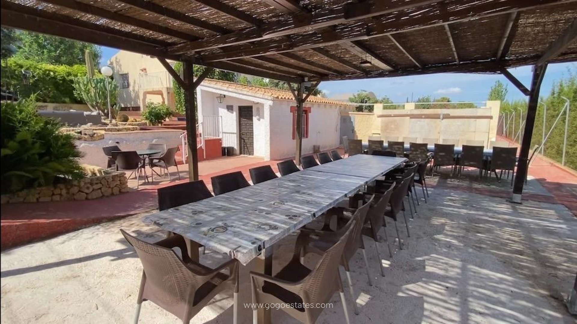 Deze woning beschikt over diverse ruimtes en gebouwen en biedt veel potentieel. De hoofdwoning is verdeeld in meerdere slaapkamers, badkamers, een ruime keuken en een woon-eetkamer met een kachel. Op deze verdieping bevindt zich ook een groot overdekt terras. De woning beschikt ook over een benedenverdieping met twee slaapkamers, een complete badkamer en een grote berging. In de hoek van het chalet bevindt zich een grote berging die als werkplaats kan worden gebruikt. Op beide verdiepingen zijn diverse airconditioningunits met zowel verwarming als koeling. Vlakbij de hoofdwoning bevindt zich een klein gebouwtje met een toilet en een speelkamer. Tot slot is er een minichalet met een slaapkamer, een complete badkamer, een woonkamer en een open keuken – allemaal gloednieuw en van hoge kwaliteit. Deze woning is ontworpen voor mensen met beperkte mobiliteit en is voorzien van airconditioning voor verwarming en koeling. Het perceel heeft een ruime parkeerplaats voor meerdere auto's en is verdeeld in verschillende zones. Er zijn twee buitenruimtes om te eten en te ontspannen, een jeu de boulesbaan, een zwembad, een skatepark, een barbecueplek en een tennisbaan. De woning biedt vele mogelijkheden en de eigenaren verhuren de woning momenteel voor korte verblijven. Hoewel het dicht bij veel nieuwbouwprojecten ligt, voelt het huis toch alsof u zich op het platteland bevindt – heel rustig en stil. Alle voorzieningen zijn op slechts een paar minuten rijden van de woning te vinden.