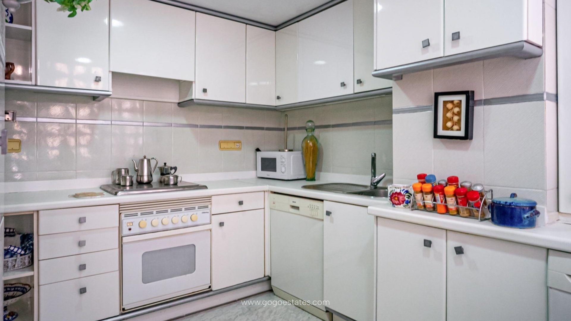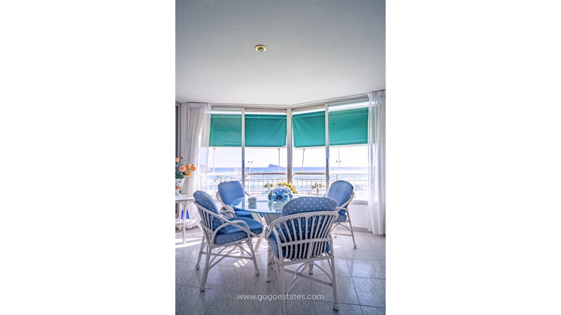 Dit hoekappartement is gelegen aan de eerste lijn van Playa Levante in Benidorm. Het appartement beschikt over een entree, een ruime gesloten keuken, 3 grote slaapkamers en een kleinere slaapkamer. Eén van de slaapkamers heeft een en-suite badkamer. Vanuit twee van de slaapkamers en de ruime woonkamer heeft u direct toegang tot een zeer groot, met glas omgeven terras met panoramisch uitzicht op zee. Het terras wordt gebruikt als extra woonkamer. Het appartement verkeert in goede staat en een ongenummerde parkeerplaats is bij de prijs inbegrepen. Het gebouw beschikt over een zwembad met toiletten en er is een conciërge. Vanuit het appartement heeft u alle voorzieningen in de buurt, en niet te vergeten het strand. Het is een perfecte keuze voor wie comfortabel wil wonen in het centrum van Benidorm.
