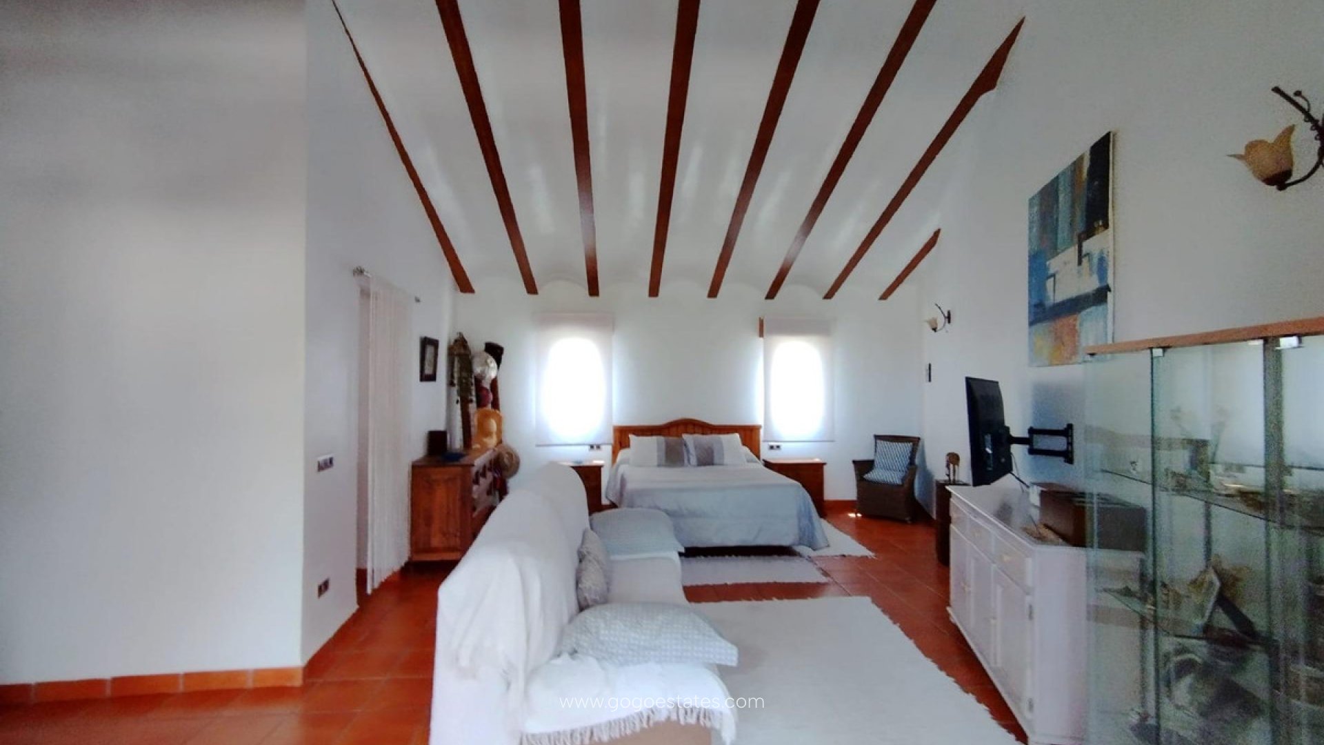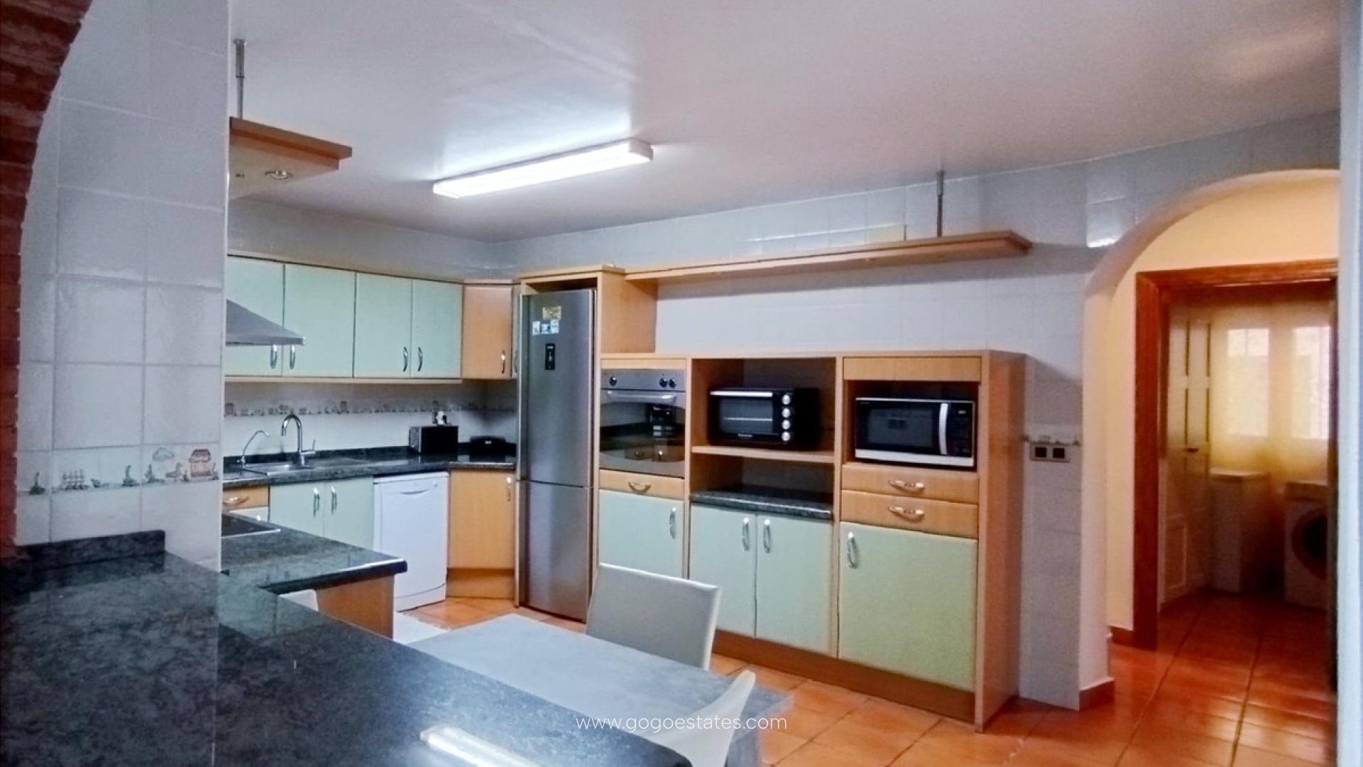 Het huis is verrassend ruim en in goede staat. Op de eerste verdieping bevinden zich een ruime woonkamer, een open keuken, een grote slaapkamer, een wasruimte, een complete badkamer en toegang tot de garage. Vanuit de keuken stapt u uit op een zonnig en privéterras dat, vanwege zijn unieke karakter, in verschillende ruimtes kan worden opgedeeld. Momenteel is er een gedeelte met wandjes om kleding op te hangen, evenals twee overdekte ruimtes. Boven zijn er twee grote slaapkamers die samen met de hoofdslaapkamer een complete badkamer delen. De hoofdslaapkamer is als een apart appartement, beslaat ongeveer 60 vierkante meter, compleet met een inloopkast en een complete badkamer. Vanuit het raam heeft u uitzicht op de zee en de Peñon de Ifach. Er is airconditioning met verwarming en koeling in het huis. Dit unieke huis is in goede staat en perfect voor een gezin dat op zoek is naar comfortabel wonen met alle voorzieningen in de buurt, in een rustige buurt van Alfaz del Pi.