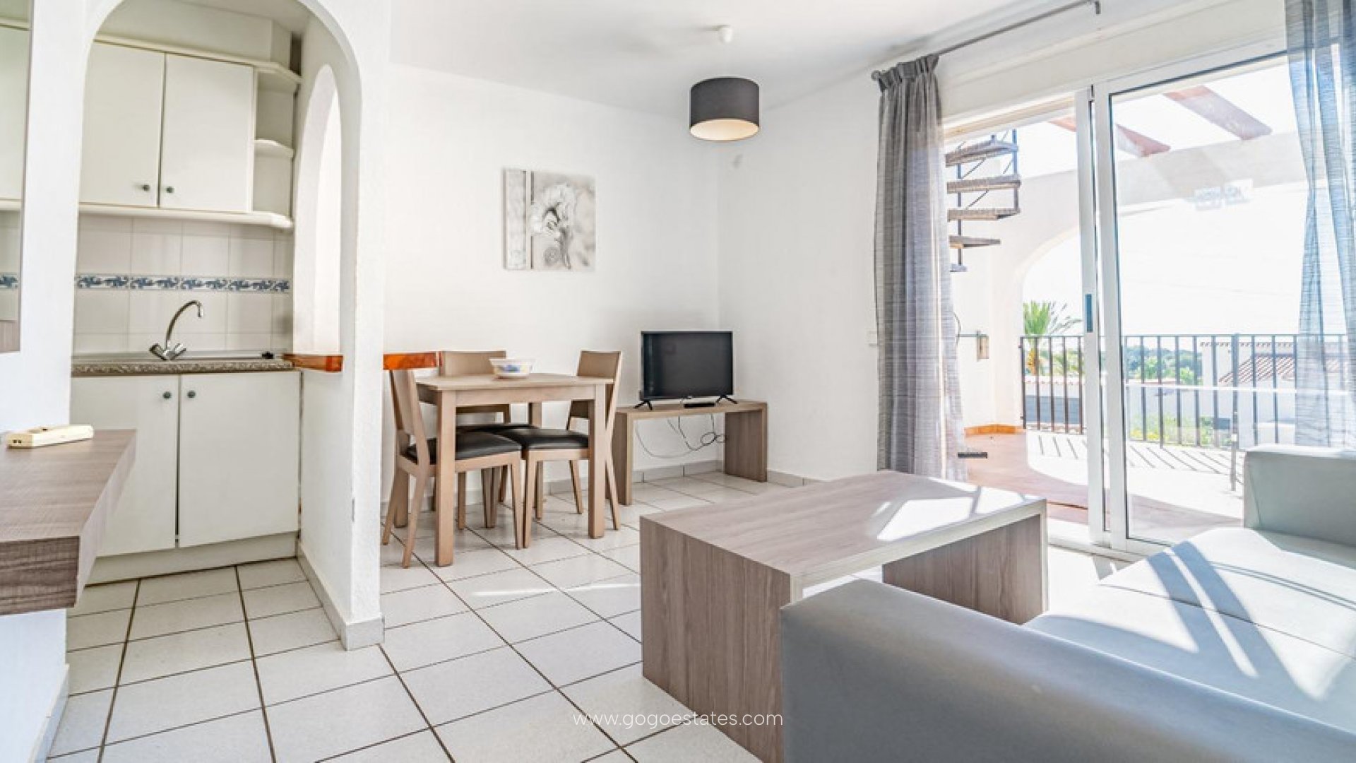 Dit appartement maakt deel uit van een wooncomplex met 200 woningen, gelegen op ongeveer 10 minuten van het centrum van Calpe en de zee. Het appartement beschikt over een ruime slaapkamer, een complete badkamer, een halfopen keuken en een woon-/eetkamer. Vanuit de woonkamer heeft u toegang tot een groot terras met een prachtig uitzicht op de zee en de Peñón (rots), en vanaf dit terras kunt u naar een solarium van 23 m². Het appartement wordt gemeubileerd verkocht, beschikt over airconditioning met verwarming en koeling en is inclusief parkeerplaats. De woning verkeert in goede staat, maar verkeert in originele staat en kan een opknapbeurt nodig hebben. Het complex beschikt over een gemeenschappelijke ruimte met verschillende zwembaden – waarvan er één het hele jaar door geopend is – een café en een receptie die in het hoogseizoen geopend is. Naast het complex ligt een groot groen gebied, perfect voor wandelingen. Dit is het perfecte appartement voor iemand die op zoek is naar een rustig vakantiehuis, maar toch dicht bij alle voorzieningen. Het is ook ideaal voor wie wil investeren en verhuren, of het wil verhuren wanneer het niet in gebruik is.