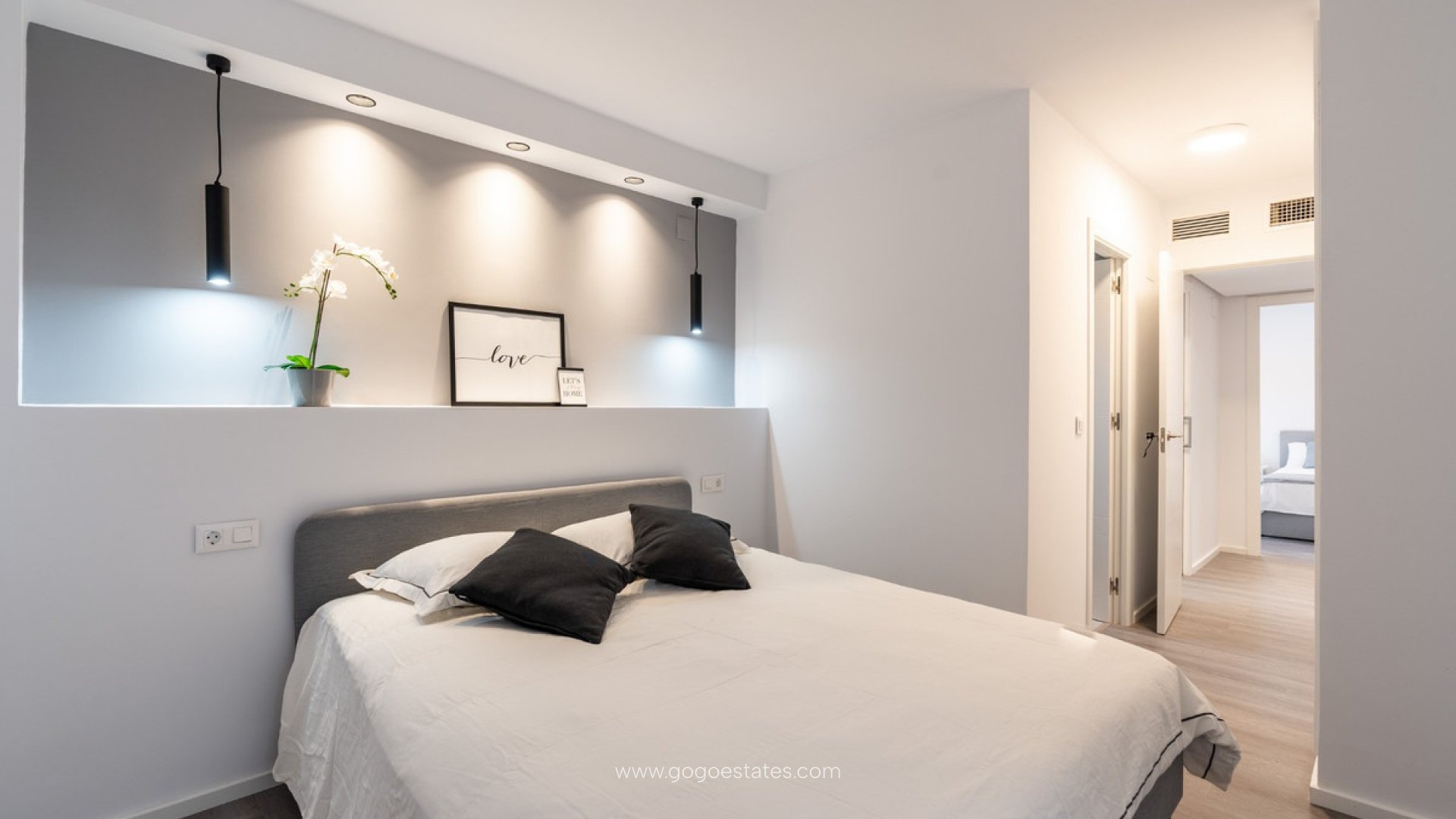Deze appartementen liggen aan het prestigieuze La Fossa strand en hebben een woonoppervlakte van 130 m². De penthouses bestaan uit 2 levels. Op de top level bevindt zich eenonafhankelijke en volledig uitgeruste keuken, een ruime gemeubileerde woon-eetkamer, gastentoilet en de master bedroom met ruime en-suite badkamer. Volledig omringd door ruime terrassen aan beide zijden. De benedenverdieping heeft een eigen keukentje, en nog 2 slaapkamers met elk een eigen badkamer. Vanuit de slaapkamers kom je op het gezamenlijk terras. Vanaf het terras kun je genieten van een adembenemend uitzicht op de Middellandse Zee en de majestueuze Peñon de Ifach. Grijp deze unieke kans! Calpe is een kustplaats met ongeveer 25.000 inwoners, gelegen tussen Altea (10 km) en Moraira (10 km). Het heeft 2 prachtige zandstranden: El Arenal- Bol en La Fossa, gescheiden door de imposante Peñon de Ifach. De afstand tot de snelweg is ongeveer 12 km, het vliegveld van Alicante ligt op ongeveer 80 km afstand. De afstand tot de snelweg is ongeveer 12 km, het vliegveld van Alicante ligt op ongeveer 80 km afstand.